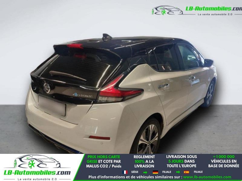 Référence : 1213230 Vos Avantages chez LB-AUTOMOBILES.com / Prix affiché TTC Livré hors carte grise / Livraison sous 10 jours dans toute la France hors 31 / Pas d?avance de frais paiement du véhicule 100% à la livraison par virement. Nissan Leaf Neuf remisée, Nissan Leaf Occasion Toulouse Beaupuy 31850, Nissan Leaf Véhicule sorti de réseau collaborateur, Nissan Leaf import, Nissan Leaf importateur, Nissan Leaf Livraison possible dans toute la France sous 5 jours, Nissan Leaf, Nissan Leaf Location Option Achat, Nissan Leaf LLD, Nissan Leaf Longue Durée, Nissan Leaf TVA récupérable. Possibilité d'extension de garantie 12, 24,36 mois, Pour tout autres voitures import neufs ou occasions collaborateur fortement remisée, Mandataire Audi, Mandataire BMW, Mandataire Volkswagen, Mandataire Mercedes, Mandataire Peugeot Espagne, Mandataire Renault Espagne, Porsche import, Mandataire Citroën Espagne, Mandataire Seat Espagne, n'hésitez pas à nous contacter. « Sous réserve de vente préalable et erreur de saisie » Principaux équipements : - ABS - Accoudoir - Antidémarrage - Assistance au freinage d'urgence - Assistance de démarrage en côte - Assistant d'angle mort - Assistant feux de route - Avertisseur de franchissement de ligne - Bluetooth - Capteur de lumière - Capteur de pluie - Carnet d'entretien - Charge bidirectionnelle - Commande vocale - Contrôle de la pression des pneus - Direction assistée - Éclairage d'ambiance - Éclairage route non éblouissant - Écran tactile - ESP - Fermeture centralisée - Feux de jour LED - GPS - Isofix - Jantes alliage - Kit de réparation d'urgence des pneus - Kit mains libres - Ordinateur de bord - Package hiver - Phare antibrouillard - Phares LED - Pneus été - Port USB - Radio DAB - Régulateur de vitesse adaptatif - Rétroviseur extérieur électrique - Rétroviseurs extérieurs rabattables électriquement - Révision complète - Sièges chauffants - Support lombaire - Système antipatinage - Système d'alarme - Système de détection de la fatigue - Système de limitation de la vitesse - Système de reconnaissance des panneaux de signalisation - Système de sonorisation - Traction avant - Véhicule non-fumeur - Verrouillage centralisé sans clé - Vitres électriques - Vitres teintées - Volant chauffant - Volant en cuir - Volant multifonction