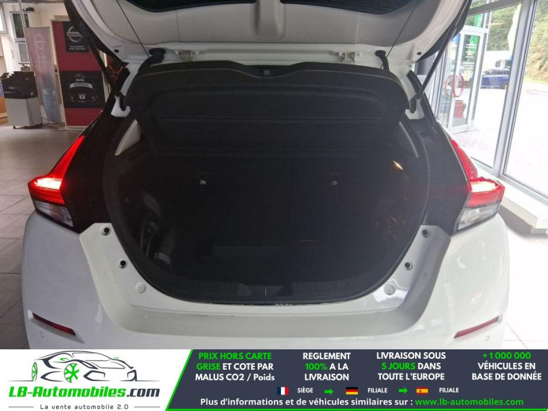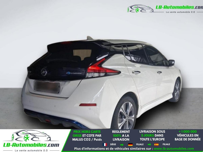 Référence : 1196718 Vos Avantages chez LB-AUTOMOBILES.com / Prix affiché TTC Livré hors carte grise / Livraison sous 10 jours dans toute la France hors 31 / Pas d?avance de frais paiement du véhicule 100% à la livraison par virement. Nissan Leaf Neuf remisée, Nissan Leaf Occasion Toulouse Beaupuy 31850, Nissan Leaf Véhicule sorti de réseau collaborateur, Nissan Leaf import, Nissan Leaf importateur, Nissan Leaf Livraison possible dans toute la France sous 5 jours, Nissan Leaf, Nissan Leaf Location Option Achat, Nissan Leaf LLD, Nissan Leaf Longue Durée, Nissan Leaf TVA récupérable. Possibilité d'extension de garantie 12, 24,36 mois, Pour tout autres voitures import neufs ou occasions collaborateur fortement remisée, Mandataire Audi, Mandataire BMW, Mandataire Volkswagen, Mandataire Mercedes, Mandataire Peugeot Espagne, Mandataire Renault Espagne, Porsche import, Mandataire Citroën Espagne, Mandataire Seat Espagne, n'hésitez pas à nous contacter. « Sous réserve de vente préalable et erreur de saisie » Principaux équipements : - ABS - Android Auto - Antidémarrage - Apple CarPlay - Assistance au freinage d'urgence - Assistance de démarrage en côte - Assistant d'angle mort - Assistant feux de route - Avertisseur de franchissement de ligne - Bluetooth - Capteur de lumière - Capteur de pluie - Carnet d'entretien - Commande vocale - Contrôle de la pression des pneus - Direction assistée - Écran tactile - ESP - Feux de jour LED - GPS - Grille de protection pour coffre - Isofix - Jantes alliage - Kit mains libres - Ordinateur de bord - Phare antibrouillard - Phares LED - Point Isofix siège passager - Port USB - Radio DAB - Régulateur de vitesse adaptatif - Rétroviseur extérieur électrique - Rétroviseur intérieur anti-éblouissement automatique - Rétroviseurs extérieurs rabattables électriquement - Sièges arrières chauffants électriques - Sièges chauffants - Système de détection de la fatigue - Système de limitation de la vitesse - Système de reconnaissance des panneaux de signalisation - Système de sonorisation - Système Stop & Start - Traction avant - Tuner/radio - Véhicule non-fumeur - Verrouillage centralisé sans clé - Vitres électriques - Volant chauffant - Volant en cuir - Volant multifonction