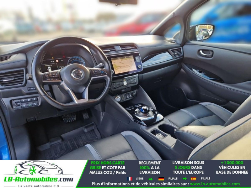 Référence : 1196719 Vos Avantages chez LB-AUTOMOBILES.com / Prix affiché TTC Livré hors carte grise / Livraison sous 10 jours dans toute la France hors 31 / Pas d?avance de frais paiement du véhicule 100% à la livraison par virement. Nissan Leaf Neuf remisée, Nissan Leaf Occasion Toulouse Beaupuy 31850, Nissan Leaf Véhicule sorti de réseau collaborateur, Nissan Leaf import, Nissan Leaf importateur, Nissan Leaf Livraison possible dans toute la France sous 5 jours, Nissan Leaf, Nissan Leaf Location Option Achat, Nissan Leaf LLD, Nissan Leaf Longue Durée, Nissan Leaf TVA récupérable. Possibilité d'extension de garantie 12, 24,36 mois, Pour tout autres voitures import neufs ou occasions collaborateur fortement remisée, Mandataire Audi, Mandataire BMW, Mandataire Volkswagen, Mandataire Mercedes, Mandataire Peugeot Espagne, Mandataire Renault Espagne, Porsche import, Mandataire Citroën Espagne, Mandataire Seat Espagne, n'hésitez pas à nous contacter. « Sous réserve de vente préalable et erreur de saisie » Principaux équipements : - ABS - Android Auto - Antidémarrage - Apple CarPlay - Assistance au freinage d'urgence - Assistance de démarrage en côte - Assistant d'angle mort - Assistant feux de route - Avertisseur de franchissement de ligne - Bluetooth - Capteur de lumière - Capteur de pluie - Carnet d'entretien - Contrôle de la pression des pneus - Direction assistée - Éclairage d'ambiance - Éclairage route non éblouissant - Écran tactile - ESP - Fermeture centralisée - Feux de jour LED - Garantie - GPS - Isofix - Jantes alliage - Kit mains libres - Ordinateur de bord - Package hiver - Phare antibrouillard - Phares LED - Pneus été - Pompe à chaleur - Port USB - Radio DAB - Régulateur de vitesse adaptatif - Rétroviseur extérieur électrique - Rétroviseur intérieur anti-éblouissement automatique - Sièges arrières chauffants électriques - Sièges chauffants - Streaming musical intégré - Système antipatinage - Système d'avertissement de la distance - Système de détection de la fatigue - Système de limitation de la vitesse - Système de reconnaissance des panneaux de signalisation - Système de sonorisation - Traction avant - Tuner/radio - Véhicule non-fumeur - Verrouillage centralisé sans clé - Vitres électriques - Vitres teintées - Volant chauffant - Volant en cuir - Volant multifonction
