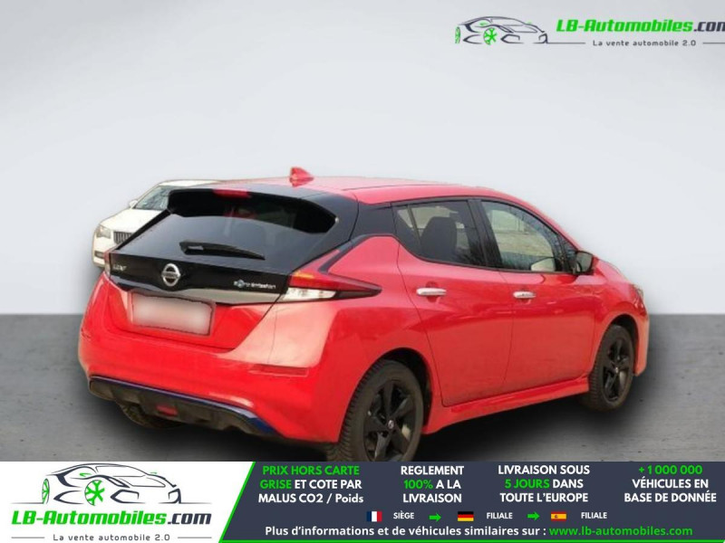 Référence : 1196723 Vos Avantages chez LB-AUTOMOBILES.com / Prix affiché TTC Livré hors carte grise / Livraison sous 10 jours dans toute la France hors 31 / Pas d?avance de frais paiement du véhicule 100% à la livraison par virement. Nissan Leaf Neuf remisée, Nissan Leaf Occasion Toulouse Beaupuy 31850, Nissan Leaf Véhicule sorti de réseau collaborateur, Nissan Leaf import, Nissan Leaf importateur, Nissan Leaf Livraison possible dans toute la France sous 5 jours, Nissan Leaf, Nissan Leaf Location Option Achat, Nissan Leaf LLD, Nissan Leaf Longue Durée, Nissan Leaf TVA récupérable. Possibilité d'extension de garantie 12, 24,36 mois, Pour tout autres voitures import neufs ou occasions collaborateur fortement remisée, Mandataire Audi, Mandataire BMW, Mandataire Volkswagen, Mandataire Mercedes, Mandataire Peugeot Espagne, Mandataire Renault Espagne, Porsche import, Mandataire Citroën Espagne, Mandataire Seat Espagne, n'hésitez pas à nous contacter. « Sous réserve de vente préalable et erreur de saisie » Principaux équipements : - ABS - Android Auto - Antidémarrage - Apple CarPlay - Assistance au freinage d'urgence - Assistance de démarrage en côte - Assistant d'angle mort - Assistant feux de route - Avertisseur de franchissement de ligne - Bluetooth - Capteur de lumière - Capteur de pluie - Contrôle de la pression des pneus - Direction assistée - Éclairage d'ambiance - Éclairage route non éblouissant - Écran tactile - ESP - Fermeture centralisée - Feux de jour LED - Garantie - GPS - Isofix - Jantes alliage - Kit mains libres - Ordinateur de bord - Package hiver - Phare antibrouillard - Phares LED - Pneus été - Pompe à chaleur - Port USB - Radio DAB - Régulateur de vitesse adaptatif - Rétroviseur extérieur électrique - Rétroviseur intérieur anti-éblouissement automatique - Sièges arrières chauffants électriques - Sièges chauffants - Streaming musical intégré - Système antipatinage - Système d'avertissement de la distance - Système de détection de la fatigue - Système de limitation de la vitesse - Système de reconnaissance des panneaux de signalisation - Système de sonorisation - Traction avant - Tuner/radio - Véhicule non-fumeur - Verrouillage centralisé sans clé - Vitres électriques - Vitres teintées - Volant chauffant - Volant en cuir - Volant multifonction