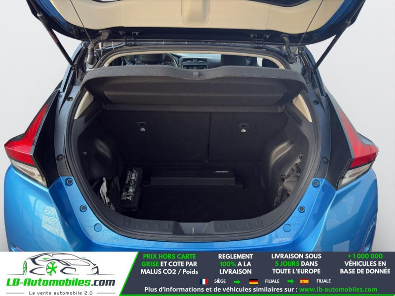 Référence : 1215135 Vos Avantages chez LB-AUTOMOBILES.com / Prix affiché TTC Livré hors carte grise / Livraison sous 10 jours dans toute la France hors 31 / Pas d?avance de frais paiement du véhicule 100% à la livraison par virement. Nissan Leaf Neuf remisée, Nissan Leaf Occasion Toulouse Beaupuy 31850, Nissan Leaf Véhicule sorti de réseau collaborateur, Nissan Leaf import, Nissan Leaf importateur, Nissan Leaf Livraison possible dans toute la France sous 5 jours, Nissan Leaf, Nissan Leaf Location Option Achat, Nissan Leaf LLD, Nissan Leaf Longue Durée, Nissan Leaf TVA récupérable. Possibilité d'extension de garantie 12, 24,36 mois, Pour tout autres voitures import neufs ou occasions collaborateur fortement remisée, Mandataire Audi, Mandataire BMW, Mandataire Volkswagen, Mandataire Mercedes, Mandataire Peugeot Espagne, Mandataire Renault Espagne, Porsche import, Mandataire Citroën Espagne, Mandataire Seat Espagne, n'hésitez pas à nous contacter. « Sous réserve de vente préalable et erreur de saisie » Principaux équipements : - ABS - Android Auto - Antidémarrage - Apple CarPlay - Assistance au freinage d'urgence - Assistance de démarrage en côte - Assistant d'angle mort - Assistant feux de route - Avertisseur de franchissement de ligne - Bluetooth - Capteur de lumière - Capteur de pluie - Commande vocale - Contrôle de la pression des pneus - Direction assistée - Éclairage adaptatif - Éclairage route non éblouissant - Écran tactile - ESP - Fermeture centralisée - Feux de jour LED - Garantie - GPS - Isofix - Jantes alliage - Kit mains libres - Ordinateur de bord - Package hiver - Pack fumeur - Phare antibrouillard - Phares LED - Pneus été - Port USB - Radio DAB - Régulateur de vitesse adaptatif - Rétroviseur extérieur électrique - Rétroviseur intérieur anti-éblouissement automatique - Sièges arrières chauffants électriques - Sièges chauffants - Streaming musical intégré - Système antipatinage - Système d'avertissement de la distance - Système de détection de la fatigue - Système de limitation de la vitesse - Système de reconnaissance des panneaux de signalisation - Système de sonorisation - Système Stop & Start - Traction avant - Tuner/radio - Verrouillage centralisé sans clé - Vitres électriques - Volant chauffant - Volant en cuir - Volant multifonction