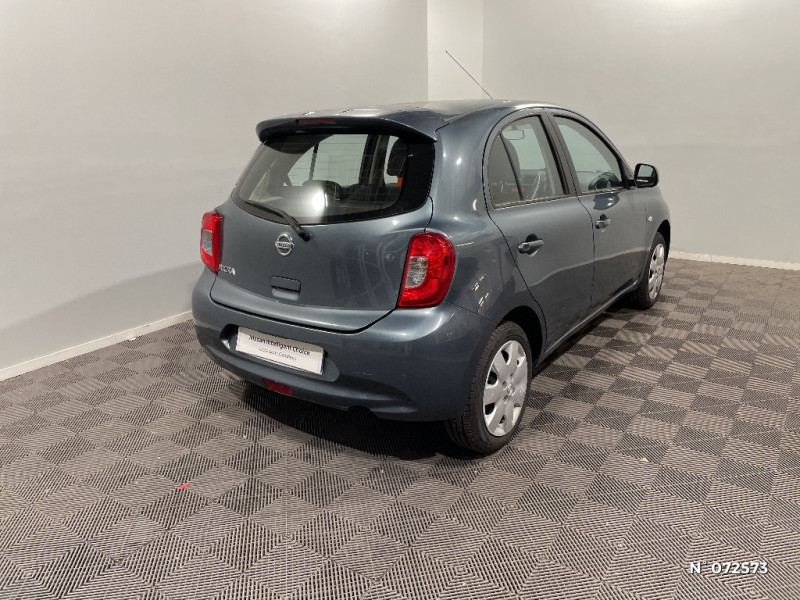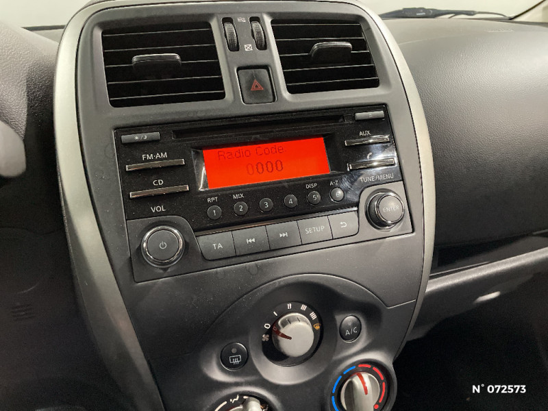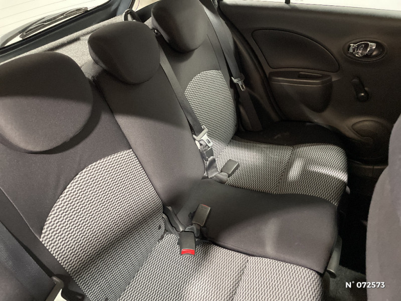 Rétroviseurs extérieurs couleur carrosserie / Banquette AR escamotable (plancher plat) / Barre de finition de hayon / Boîte de vitesses manuelle 5 rapports / Boucliers couleur carrosserie / Cache-bagages amovible / ABS et EBD (répartiteur de freinage) et NBAS (amplificateur de freinage) / Accès au statut Bronze de la communauté ''Le Boudoir'' Nissan MICRA Actualités, évènements privés, offres privilèges Nissan / Accoudoirs de porte et cerclage de levier de vitesses finition Gris satiné / Airbags frontaux AV (déconnectable côté passager) / "ATTENTION" - Equipements non communiqués / Bacs de rangement dans les contre-portes AV avec porte-bouteilles / Ceintures de sécurité AR 3 points à enrouleur (x3) / Sécurité enfants sur les serrures des portes AR / Sellerie tissu avec insert tissu sur les contre-portes / Spots de lecture AV intégrés au plafonnier / Système anti-démarrage N.A.T.S (Nissan Anti Theft System) / Système d'accrochage pour sièges enfants ISOFIX à l'AR (x2) / Système de protection de la batterie / Cerclage de levier de vitesses Gris Satiné / Commandes au volant (audio, Bluetooth, régulateur et limiteur de vitesses) / Connectique USB / Direction assistée asservie à la vitesse / Eclairage de l'habitacle / Eclairage du coffre / Entourage de calandre chromé / Extinction temporisé des projecteurs "Follow me home" / Garantie 3 ans limitée à 100 000 km - pièce et éléments d'origine sur toute l'Europe / Jantes acier 15" avec enjoliveurs / Montant de caisse central noir / Pare-soleil côtés conducteur et passager avec miroir de courtoisie / Poches aumonières au dos des sièges AV / Poignées de maintient (x3) / Poignées de portes chromées / Poignées de portes couleur carrosserie / Poignées de portes intérieures finition chrome / Pommeau de levier de vitesse cuir / Porte-gobelets AV (x2) et AR (x1) / Prise auxiliaire pour lecteur MP3