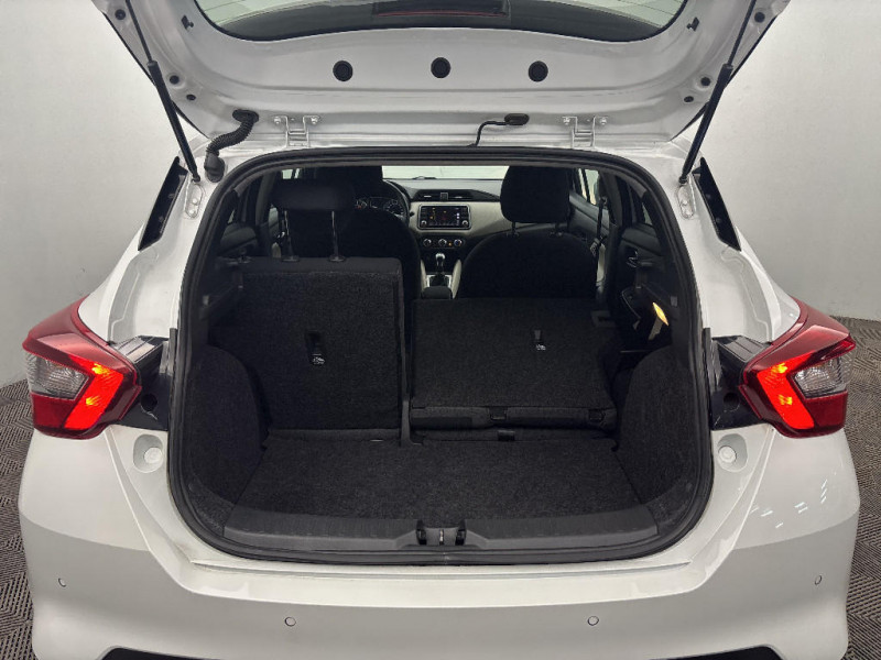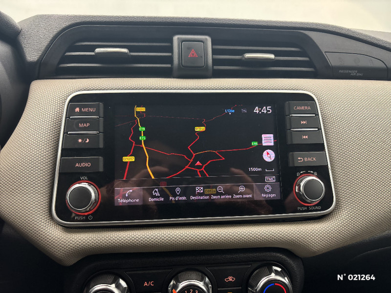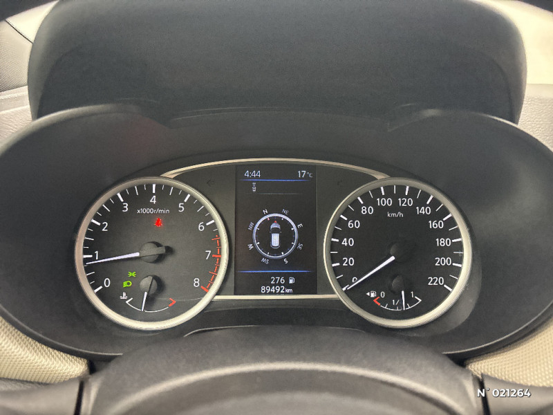 Finition du pommeau de levier de vitesses en chrome satiné / Freinage d'urgence intelligent (AEB) / Indicateur de changement de vitesses / Kit de réparation pneumatique / NBAS (amplificateur de freinage d'urgence) / NissanConnect: Système de navigation multimédia avec écran tactile couleur 7" / Ouverture et fermeture centralisées des portes à distance / Pare-soleil côtés conducteur et passager avec miroir de courtoisie / Partie supérieure du tableau de bord moussée / Sécurité enfants sur les serrures des portes AR / Sellerie tissu bi-ton avec inserts gris et surpiqûres / Sièges AV antifatigue / Spoiler AR / Système "Chassis Control" : Intelligent Trace Control (contrôle actif de trajectoire) et Intelligent Ride Control (Contrôle actif de l'assiette) / Tableau de bord en TEP Beige / Volant gainé cuir avec surpiqûres / Poche aumonière au dos du siège passager AV / Poignées de maintien passager AV / Poignées de portes AR intégrées dans le montant à l'AR / Poignées de portes extérieures couleur carrosserie / Poignées de portes intérieures finition chrome / Points d'ancrage ISOFIX côté passager et AR / Porte-bouteilles dans les contre-portes AV / Porte-gobelets AV (x2) et AR (x1) / ABS (Système antiblocage des freins) avec EBD (Répartiteur électronique de freinage) / Accoudoir des contre-portes AV avec inserts gris / Repose-genou rembourré avec surpiqûres / Rétroviseurs extérieurs couleur carrosserie avec indicateurs de changement de direction à LED / Accoudoir des contre-portes AV en TEP Beige / Airbags frontaux AV (déconnectable côté passager) / Appuis-tête AV ajustables / Bacs de rangement dans les contre-portes AR / Bacs de rangement dans les contre-portes AV / Cache-bagages amovible / Ceintures de sécurité AR 3 points à enrouleur (x3) / Combiné d'instrumentation avec écran LCD-TFT 5" couleur / Commandes au volant: contrôle de l'ordinateur de bord, audio, téléphone, régulateur et limiteur de vitesse / Direction assistée asservie à la vitesse / Eclairage à LED du vide-poche central AV / Eclairage du coffre / Eclairage intérieur et illumination des commandes de vitres électriques / Essuie-glace AR automatique lors du passage de la marche AR / Feux de détresse à déclenchement automatique / Feux de route halogènes avec signature lumineuse / Feux diurnes LED avec système Follow Me Home