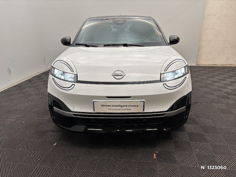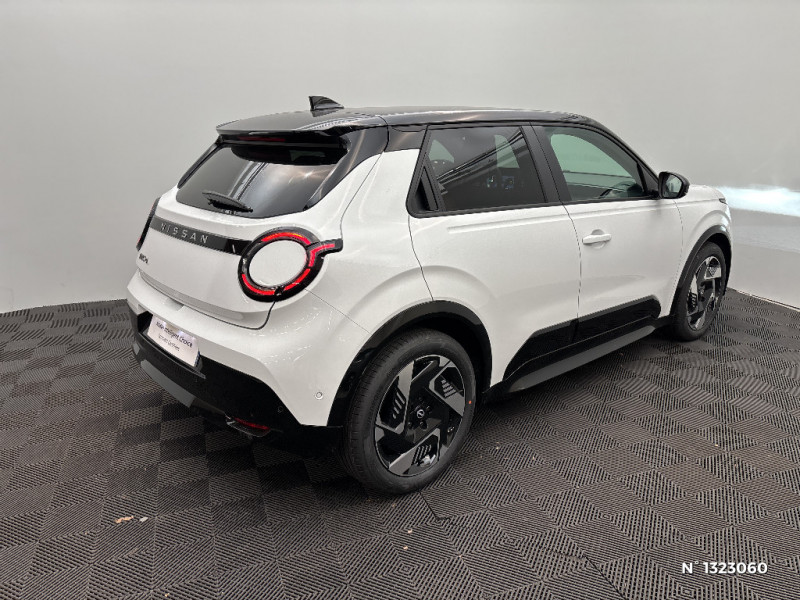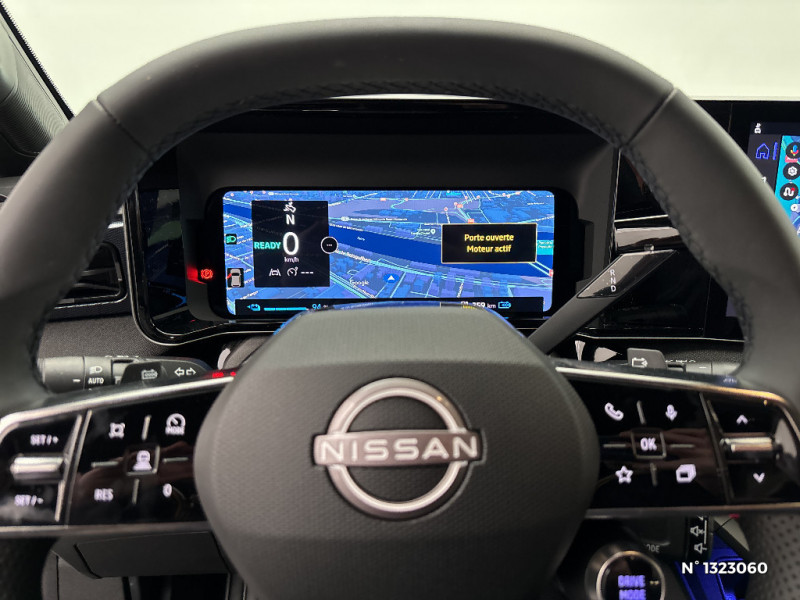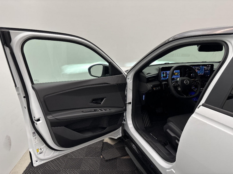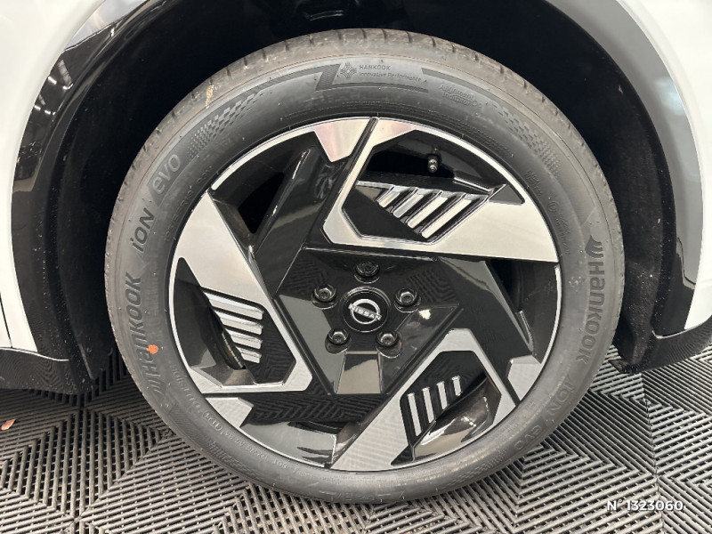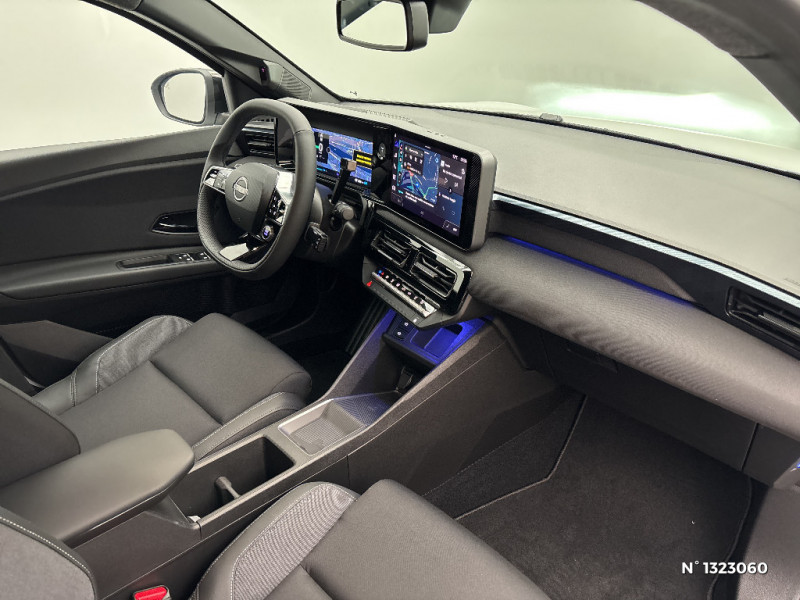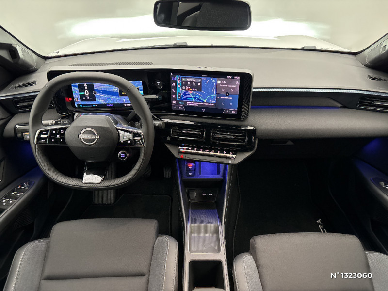 Connecteur Combo CCS 100 kW / Combiné d'instrumentation avec écran couleur 10" / Contrôle de la traction (TCS) / Détection intelligente des limitations de vitesse et prévention survitesse (ISA) / Eclairage LED de l'habitacle pour le conducteur / Frein à main électrique avec Auto Hold / Freinage d'urgence anticollision AR / Freinage régénératif + E-Pedal avec palettes de changement d'intensité / Jantes acier 18" avec enjoliveurs / Jeu de 4 HP Arkamys et 2 tweeters / Miroir avec porte-billets dans le pare-soleil pour le conducteur et le passager et éclairage LED pour le passager / Peinture opaque monoton / Pompe à chaleur / Séquence d'accueil personnalisable / Services NissanConnect avec Google intégré / Sièges AV avec réglages manuels 6 voies / Spoiler AR / Système d'alerte anticollision AR intelligent et transversal / Système de navigation NissanConnect avec Google intégrés / Volant en cuir synthétique / 2 connecteurs USB-C AV / Alerte et prévention de sortie de voie / Antenne aileron de requin / Avertisseur de sortie de stationnement en marche AR / Boîte de vitesse à fonction continue / Câble de charge MODE 3 (11 kW) / Chargeur à induction pour Smartphone / Chargeur embarqué 11 kW / Combiné d'infodivertissement digital 10" / Connecteur V2L (détail des fonctionnalités ci-dessous)