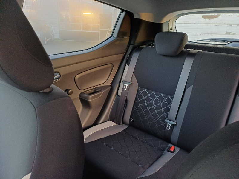 Accoudoir des contre-portes AV en tissu noir / Airbags frontaux AV (déconnectable côté passager) / Appuis-tête AV ajustables / Bacs de rangement dans les contre-portes AV et AR / Cache-bagages amovible / Direction assistée asservie à la vitesse / Eclairage du coffre / Eclairage intérieur et illumination des commandes de vitres électriques / Essuie-glace AR automatique lors du passage de la marche AR / Feux de détresse à déclenchement automatique / Feux de route halogènes avec signature lumineuse / Feux diurnes LED avec système Follow Me Home / Freinage d'urgence autonome AEB / Indicateur de changement de vitesses / Intelligent Ride Control / Intelligent Trace Control / Jantes acier 15" avec enjoliveurs / Kit de réparation anticrevaison / Ordinateur de bord avec indicateur de température extérieure / Ouverture et fermeture centralisées des portes à distance / Pare-soleil côtés conducteur et passager avec miroir de courtoisie / Partie supérieure du tableau de bord moussée / Poignées de maintien passager AV / Poignées de portes AR intégrées dans le montant à l'AR / Poignées de portes noires à l' AV / Points d'ancrage ISOFIX côté passager et AR / Porte-bouteilles dans les contre-portes AV / Porte-gobelets AV (x2) et AR (x1) / Repose-genou rembourré avec surpiqûres / Rétroviseurs extérieurs noirs avec indicateurs de changement de direction / Sécurité enfants sur les serrures des portes AR / Sièges AV antifatigue / Spoiler AR / Vitres électriques à l'AV et manuelles à l'AR