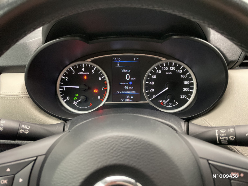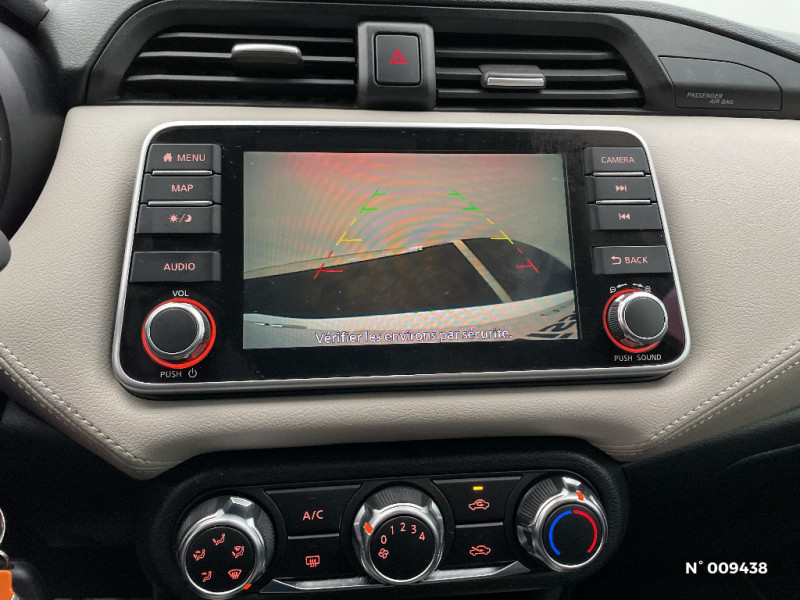 Sièges AV antifatigue / Spoiler AR / ABS (Système antiblocage des freins) avec EBD (Répartiteur électronique de freinage) / Accoudoir des contre-portes AV avec inserts gris / Accoudoir des contre-portes AV en TEP Beige / Airbags frontaux AV (déconnectable côté passager) / Appuis-tête AV ajustables / Bacs de rangement dans les contre-portes AR / Bacs de rangement dans les contre-portes AV / Cache-bagages amovible / Ceintures de sécurité AR 3 points à enrouleur (x3) / Combiné d'instrumentation avec écran LCD-TFT 5" couleur / Commandes au volant: contrôle de l'ordinateur de bord, audio, téléphone, régulateur et limiteur de vitesse / Direction assistée asservie à la vitesse / Eclairage à LED du vide-poche central AV / Eclairage du coffre / Eclairage intérieur et illumination des commandes de vitres électriques / Essuie-glace AR automatique lors du passage de la marche AR / Feux de détresse à déclenchement automatique / Feux de route halogènes avec signature lumineuse / Système "Chassis Control" : Intelligent Trace Control (contrôle actif de trajectoire) et Intelligent Ride Control (Contrôle actif de l'assiette) / Tableau de bord en TEP Beige / Volant gainé cuir avec surpiqûres / Feux diurnes LED avec système Follow Me Home / Finition du pommeau de levier de vitesses en chrome satiné / Freinage d'urgence intelligent (AEB) / Indicateur de changement de vitesses / Kit de réparation pneumatique / NBAS (amplificateur de freinage d'urgence) / NissanConnect: Système de navigation multimédia avec écran tactile couleur 7" / Ouverture et fermeture centralisées des portes à distance / Pare-soleil côtés conducteur et passager avec miroir de courtoisie / Partie supérieure du tableau de bord moussée / Poche aumonière au dos du siège passager AV / Poignées de maintien passager AV / Poignées de portes AR intégrées dans le montant à l'AR / Poignées de portes extérieures couleur carrosserie / Poignées de portes intérieures finition chrome / Points d'ancrage ISOFIX côté passager et AR / Porte-bouteilles dans les contre-portes AV / Porte-gobelets AV (x2) et AR (x1) / Repose-genou rembourré avec surpiqûres / Rétroviseurs extérieurs couleur carrosserie avec indicateurs de changement de direction à LED / Sécurité enfants sur les serrures des portes AR / Sellerie tissu bi-ton avec inserts gris et surpiqûres