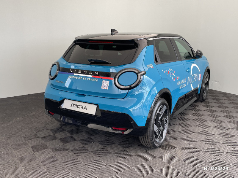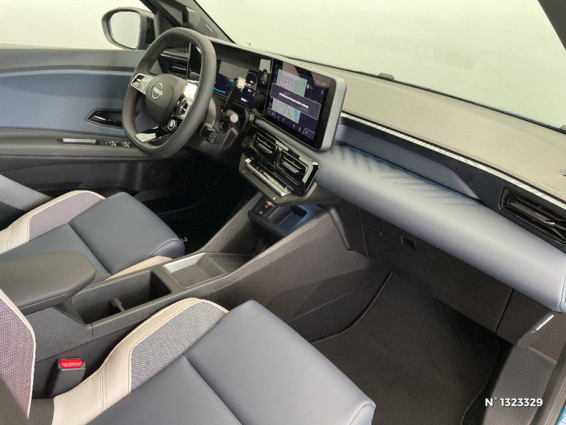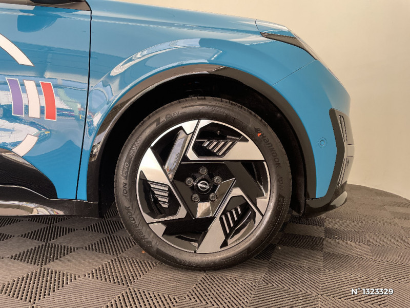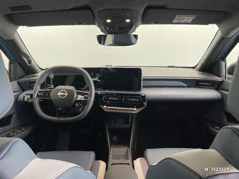 Services NissanConnect avec Google intégré / Sièges AV avec réglages manuels 6 voies et conducteur électriquement 2 voies pour lombaires / Spoiler AR / Système audio Premium Harman Kardon avec 9 HP / Système d'alerte anticollision AR intelligent et transversal / Système de navigation NissanConnect avec Google intégrés / Volant en cuir synthétique / 2 connecteurs USB-C AV / Alerte et prévention de sortie de voie / Antenne aileron de requin / Avertisseur de sortie de stationnement en marche AR / Boîte de vitesse à fonction continue / Câble de charge MODE 3 (11 kW) / Chargeur à induction pour Smartphone / Chargeur embarqué 11 kW / Combiné d'infodivertissement digital 10" / Combiné d'instrumentation avec écran couleur 10" / Connecteur Combo CCS 100 kW / Connecteur V2L (détail des fonctionnalités ci-dessous) / Contrôle de la traction (TCS) / Détection intelligente des limitations de vitesse et prévention survitesse (ISA) / Eclairage LED de l'habitacle pour le conducteur et le passager / Frein à main électrique avec Auto Hold / Freinage d'urgence anticollision AR / Freinage régénératif + E-Pedal avec palettes de changement d'intensité / Miroir avec porte-billets dans le pare-soleil pour le conducteur et le passager et éclairage LED pour le passager / Pack Hiver - Volant chauffant - Sièges AV chauffants / Peinture bi-ton / Pochette pour porte-revues AR du siège conducteur / Pompe à chaleur / Rétroviseur intérieur électrochromatique sans contour / Séquence d'accueil personnalisable
