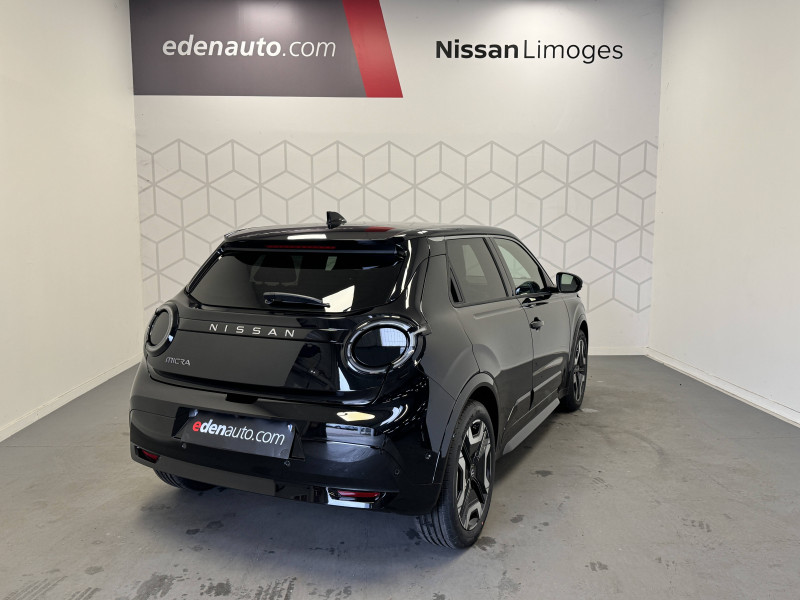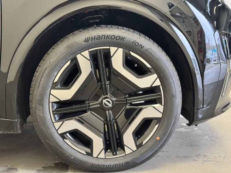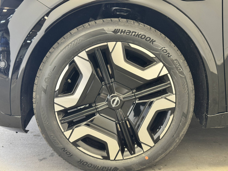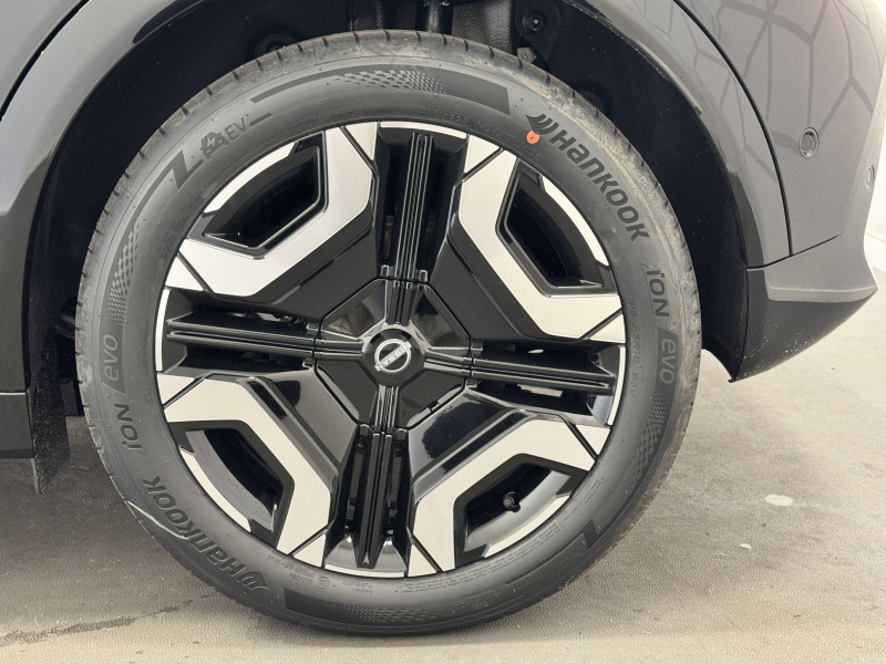 2 connecteurs USB-C AV / Alerte et prévention de sortie de voie / Antenne aileron de requin / Avertisseur de sortie de stationnement en marche AR / Boîte de vitesse à fonction continue / Câble de charge MODE 3 (11 kW) / Chargeur à induction pour Smartphone / Chargeur embarqué 11 kW / Combiné d'infodivertissement digital 10" / Combiné d'instrumentation avec écran couleur 10" / Connecteur Combo CCS 100 kW / Connecteur V2L (détail des fonctionnalités ci-dessous) / Contrôle de la traction (TCS) / Détection intelligente des limitations de vitesse et prévention survitesse (ISA) / Eclairage LED de l'habitacle pour le conducteur et le passager / Freinage d'urgence anticollision AR / Freinage régénératif + E-Pedal avec palettes de changement d'intensité / Frein à main électrique avec Auto Hold / Miroir avec porte-billets dans le pare-soleil pour le conducteur et le passager et éclairage LED pour le passager / Pack Hiver - Volant chauffant - Sièges AV chauffants / Peinture bi-ton / Pochette pour porte-revues AR du siège conducteur / Pompe à chaleur / Rétroviseur intérieur électrochromatique sans contour / Séquence d'accueil personnalisable / Services NissanConnect avec Google intégré / Sièges AV avec réglages manuels 6 voies et conducteur électriquement 2 voies pour lombaires / Spoiler AR / Système audio Premium Harman Kardon avec 9 HP / Système d'alerte anticollision AR intelligent et transversal / Système de navigation NissanConnect avec Google intégrés / Volant en cuir synthétique