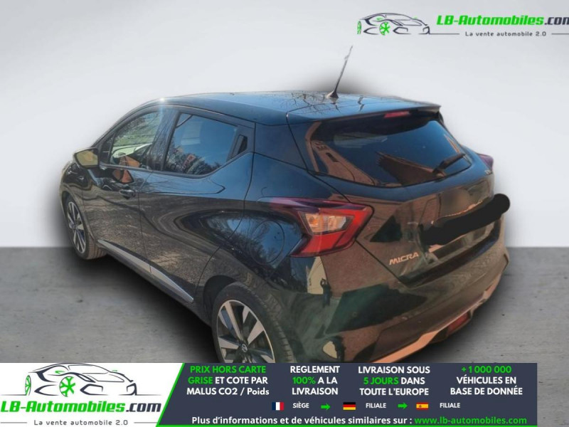 Référence : 1149580 Vos Avantages chez LB-AUTOMOBILES.com / Prix affiché TTC Livré hors carte grise / Livraison sous 10 jours dans toute la France hors 31 / Pas d?avance de frais paiement du véhicule 100% à la livraison par virement. Nissan Micra Neuf remisée, Nissan Micra Occasion Toulouse Beaupuy 31850, Nissan Micra Véhicule sorti de réseau collaborateur, Nissan Micra import, Nissan Micra importateur, Nissan Micra Livraison possible dans toute la France sous 5 jours, Nissan Micra, Nissan Micra Location Option Achat, Nissan Micra LLD, Nissan Micra Longue Durée, Nissan Micra TVA récupérable. Possibilité d'extension de garantie 12, 24,36 mois, Pour tout autres voitures import neufs ou occasions collaborateur fortement remisée, Mandataire Audi, Mandataire BMW, Mandataire Volkswagen, Mandataire Mercedes, Mandataire Peugeot Espagne, Mandataire Renault Espagne, Porsche import, Mandataire Citroën Espagne, Mandataire Seat Espagne, n'hésitez pas à nous contacter. « Sous réserve de vente préalable et erreur de saisie » Principaux équipements : - ABS - Avertisseur de franchissement de ligne - Bluetooth - Capteur de lumière - Capteur de pluie - Carnet d'entretien - Contrôle de la pression des pneus - Direction assistée - Écran tactile - ESP - Fermeture centralisée - Feux de jour LED - Garantie - GPS - Isofix - Jantes alliage - Kit mains libres - Ordinateur de bord - Phare antibrouillard - Phares LED - Point Isofix siège passager - Port USB - Radio DAB - Régulateur de vitesse - Rétroviseur extérieur électrique - Rétroviseurs extérieurs rabattables électriquement - Sièges chauffants - Système antipatinage - Système d'avertissement de la distance - Système de limitation de la vitesse - Système de reconnaissance des panneaux de signalisation - Système de sonorisation - Système Stop & Start - Traction avant - Tuner/radio - Véhicule non-fumeur - Verrouillage centralisé sans clé - Vitres électriques - Vitres teintées - Volant en cuir - Volant multifonction