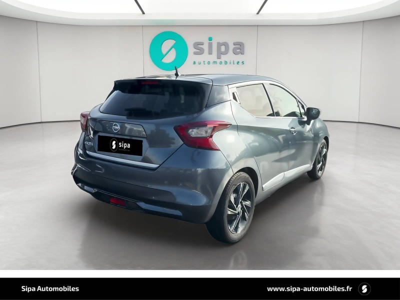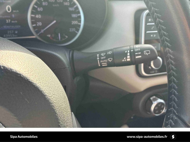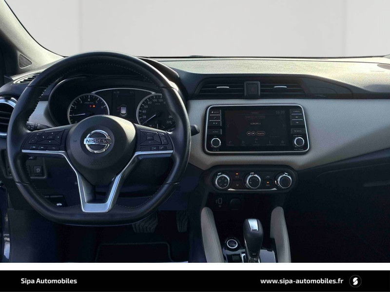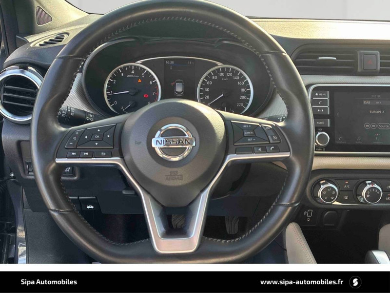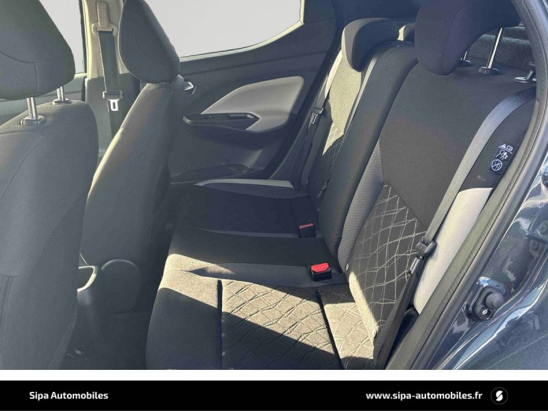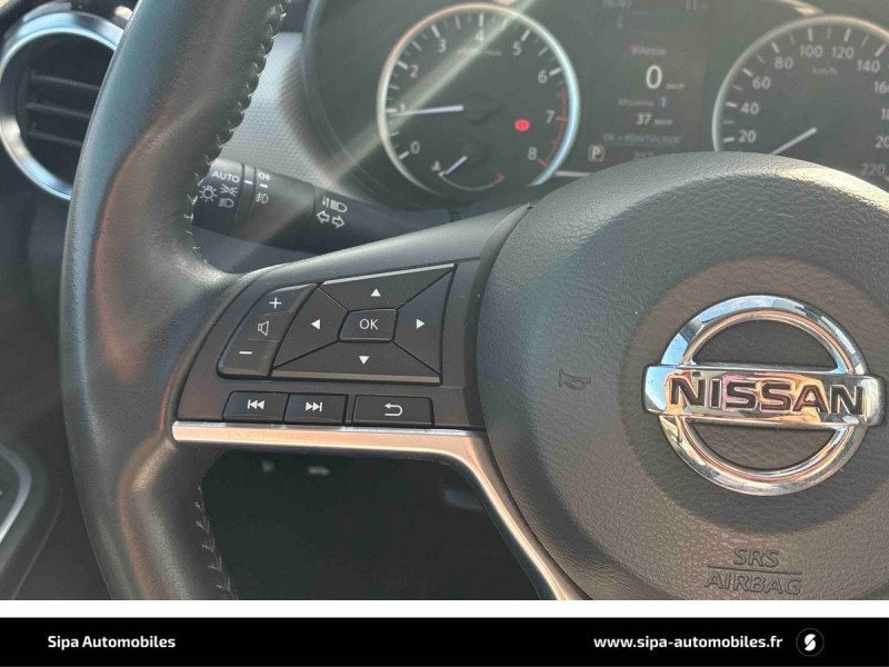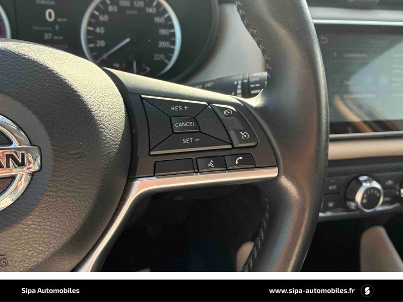 ABS (Système antiblocage des freins) avec EBD (Répartiteur électronique de freinage) / Accoudoir des contre-portes AV avec inserts gris / Airbags frontaux AV (déconnectable côté passager) / Appuis-tête AV ajustables / Bacs de rangement dans les contre-portes AR / Bacs de rangement dans les contre-portes AV / Cache-bagages amovible / Combiné d'instrumentation avec écran LCD-TFT 5" couleur / Commandes au volant: contrôle de l'ordinateur de bord, audio, téléphone, régulateur et limiteur de vitesse / Direction assistée asservie à la vitesse / Eclairage à LED du vide-poche central AV / Eclairage du coffre / Eclairage intérieur et illumination des commandes de vitres électriques / Essuie-glace AR automatique lors du passage de la marche AR / Feux de détresse à déclenchement automatique / Feux de route halogènes avec signature lumineuse / Feux diurnes LED avec système Follow Me Home / Finition du pommeau de levier de vitesses en chrome satiné / Freinage d'urgence intelligent (AEB) / Indicateur de changement de vitesses / Kit de réparation pneumatique / NBAS (amplificateur de freinage d'urgence) / NissanConnect: Système de navigation multimédia avec écran tactile couleur 7" / Ouverture et fermeture centralisées des portes à distance / Pare-soleil côtés conducteur et passager avec miroir de courtoisie / Partie supérieure du tableau de bord moussée / Poche aumonière au dos du siège passager AV / Poignées de maintien passager AV / Poignées de portes AR intégrées dans le montant à l'AR / Poignées de portes extérieures couleur carrosserie / Poignées de portes intérieures finition chrome / Points d'ancrage ISOFIX côté passager et AR / Porte-bouteilles dans les contre-portes AV / Porte-gobelets AV (x2) et AR (x1) / Repose-genou rembourré avec surpiqûres / Rétroviseurs extérieurs couleur carrosserie avec indicateurs de changement de direction à LED / Sécurité enfants sur les serrures des portes AR / Sellerie tissu bi-ton avec inserts gris et surpiqûres / Sièges AV antifatigue / Spoiler AR / Système "Chassis Control" : Intelligent Trace Control (contrôle actif de trajectoire) et Intelligent Ride Control (Contrôle actif de l'assiette)
