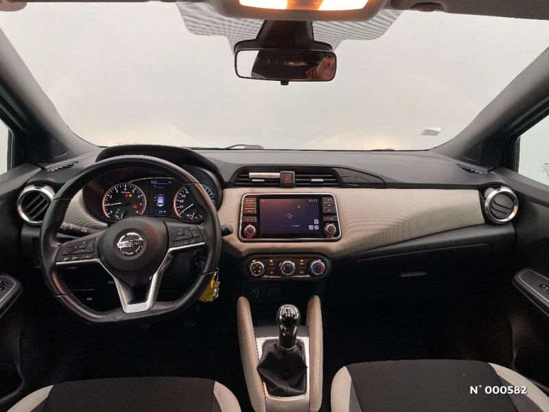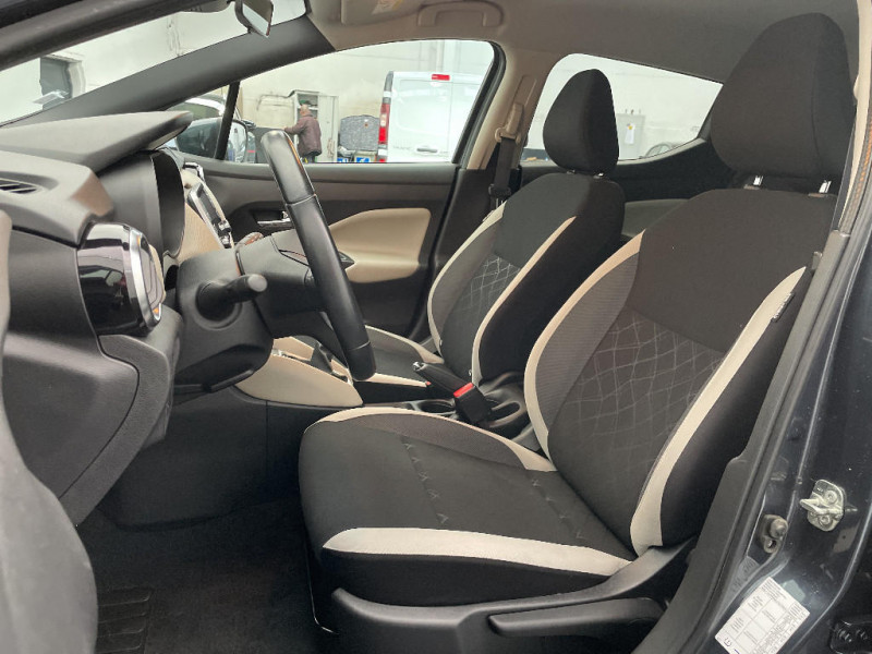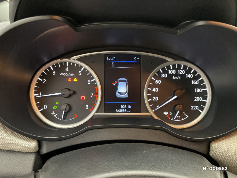 Tableau de bord en TEP Beige / Volant gainé cuir avec surpiqûres / Appuis-tête AV ajustables / Bacs de rangement dans les contre-portes AR / Bacs de rangement dans les contre-portes AV / Cache-bagages amovible / Combiné d'instrumentation avec écran LCD-TFT 5" couleur / Commandes au volant: contrôle de l'ordinateur de bord, audio, téléphone, régulateur et limiteur de vitesse / Direction assistée asservie à la vitesse / Eclairage à LED du vide-poche central AV / Eclairage du coffre / Eclairage intérieur et illumination des commandes de vitres électriques / Essuie-glace AR automatique lors du passage de la marche AR / Feux de détresse à déclenchement automatique / Feux de route halogènes avec signature lumineuse / Feux diurnes LED avec système Follow Me Home / Finition du pommeau de levier de vitesses en chrome satiné / Freinage d'urgence intelligent (AEB) / Indicateur de changement de vitesses / Kit de réparation pneumatique / NBAS (amplificateur de freinage d'urgence) / NissanConnect: Système de navigation multimédia avec écran tactile couleur 7" / Ouverture et fermeture centralisées des portes à distance / Pare-soleil côtés conducteur et passager avec miroir de courtoisie / Partie supérieure du tableau de bord moussée / Poche aumonière au dos du siège passager AV / Poignées de maintien passager AV / Poignées de portes AR intégrées dans le montant à l'AR / Poignées de portes extérieures couleur carrosserie / Poignées de portes intérieures finition chrome / Points d'ancrage ISOFIX côté passager et AR / Porte-bouteilles dans les contre-portes AV / Porte-gobelets AV (x2) et AR (x1) / Repose-genou rembourré avec surpiqûres / Rétroviseurs extérieurs couleur carrosserie avec indicateurs de changement de direction à LED / ABS (Système antiblocage des freins) avec EBD (Répartiteur électronique de freinage) / Accoudoir des contre-portes AV avec inserts gris / Accoudoir des contre-portes AV en TEP Beige / Airbags frontaux AV (déconnectable côté passager) / Sécurité enfants sur les serrures des portes AR / Sellerie tissu bi-ton avec inserts gris et surpiqûres / Sièges AV antifatigue / Spoiler AR / Système "Chassis Control" : Intelligent Trace Control (contrôle actif de trajectoire) et Intelligent Ride Control (Contrôle actif de l'assiette)
