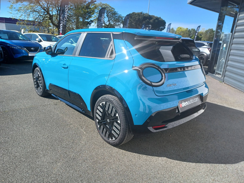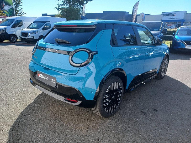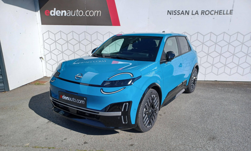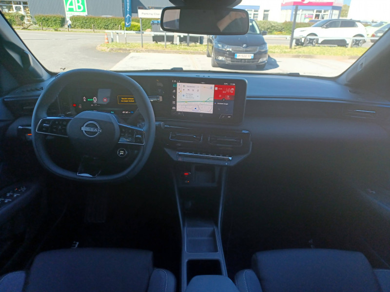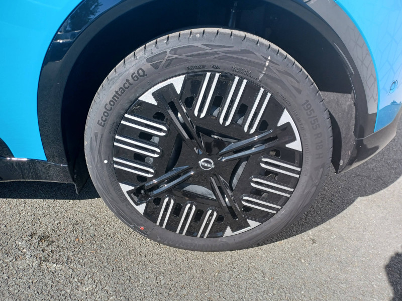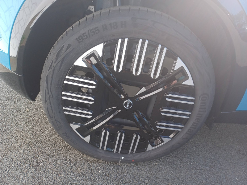 2 connecteurs USB-C AV / Alerte et prévention de sortie de voie / Antenne aileron de requin / Avertisseur de sortie de stationnement en marche AR / Boîte de vitesse à fonction continue / Câble de charge MODE 3 (11 kW) / Chargeur à induction pour Smartphone / Chargeur embarqué 11 kW / Combiné d'infodivertissement digital 10" / Combiné d'instrumentation avec écran couleur 10" / Connecteur Combo CCS 80 kW / Connecteur V2L (détail des fonctionnalités ci-dessous) / Contrôle de la traction (TCS) / Détection intelligente des limitations de vitesse et prévention survitesse (ISA) / Eclairage LED de l'habitacle pour le conducteur / Freinage d'urgence anticollision AR / Freinage régénératif + E-Pedal avec palettes de changement d'intensité / Frein à main électrique avec Auto Hold / Jantes acier 18" avec enjoliveurs / Jeu de 4 HP Arkamys et 2 tweeters / Miroir avec porte-billets dans le pare-soleil pour le conducteur et le passager et éclairage LED pour le passager / Peinture opaque monoton / Pompe à chaleur / Séquence d'accueil personnalisable / Services NissanConnect avec Google intégré / Sièges AV avec réglages manuels 6 voies / Spoiler AR / Système d'alerte anticollision AR intelligent et transversal / Système de navigation NissanConnect avec Google intégrés / Volant en cuir synthétique