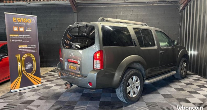 Nissan Pathfinder 2.5 DCI 175 ELEGANCE 4WD crossover, suv, gris, 12 cv, 5 portes, première mise en circulation le 28/07/2006, garantie 6 mois. - NOS SERVICES ET PRESTATIONS COMPLÉMENTAIRES - - Visite virtuelle : avant de vous déplacer, visualisez votre futur véhicule sous toutes ses coutures . Contactez-nous pour en voir plus ! - Extension de garantie jusqu'à 60 mois. - Solutions de Financement de 12 à 84 mois. - Livraison dans toute la France métropolitaine (sur devis). - Reprise possible de votre ancien véhicule. - Les informations délivrées par cette annonce sont non contractuelles et données à titre indicatif. Packs disponibles (véhicules éligibles au Label) - Pack Clés en Main - 691 € TTC(¹)(²) Démarches (hors carte grise) | 1/4 de carburant | Nettoyage First | Garantie 6 mois | Label inclus? - Pack Sérénité - 891 € TTC(¹)(²) Démarches (hors carte grise) | 1/2 de carburant | Nettoyage Confort | Garantie 12 mois | Label inclus? - Pack Prestige - 1.091 € TTC(¹)(²) Démarches (hors carte grise) | Plein complet | Nettoyage Prestige | Garantie 12 mois | Label inclus? + Surprise du chef - (¹) Les véhicules non éligibles au Label bénéficient de tarifs préférentiels. Veuillez contacter votre conseiller pour obtenir les conditions tarifaires applicables. (²) Tarif pour les véhicules deux roues motrices dont la valeur de vente est inférieure à 60 000 € TTC. - Véhicule visible sur rendez vous 7 places OPTIONS ET ÉQUIPEMENTS : Conduite : - Boîte de vitesse manuelle - démarrage sans clé - détecteur de pluie Extérieur : - attelage - jantes : aluminium - système d'aide au stationnement - toit ouvrant - toit ouvrant électrique Intérieur : - Sièges AV électriques - Sièges à mémoire - Porte gobelet avant - accoudoir central - banquette 1/3 - 2/3 - climatisation : manuelle - climatisation manuelle - fermeture centralisée - sièges chauffants - vitres électriques - volant réglable hauteur - volant réglable profondeur Pack : - Configuration 7 places - 4 roues motrices - nombre de rapports : 6 vitesses - volant multifonctions - volant réglable Sellerie : - Sellerie cuir Sécurité : - Airbags - ABS - Aide au demarrage en pente - ESP - roue de secours Autres équipements et informations : - Factures d'entretien - Classe Crit'air : 3 - Puissance kilowatt : 128 kw - puissance réelle : 174 ch - émission CO2 : 238 g/km - état : bon Référence annonce : d148418