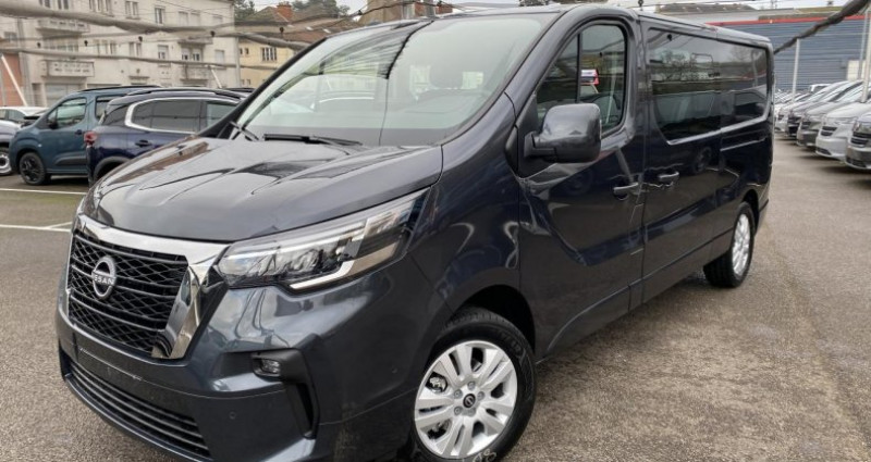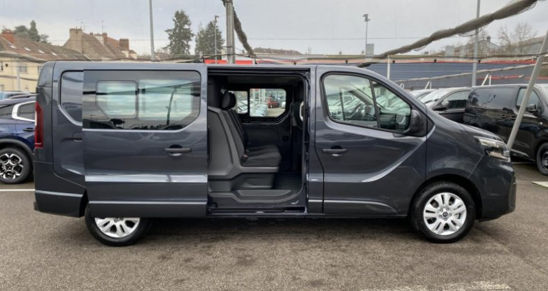======= OPTIONS ======= Double porte latérale coulissante avec vitres ouvrantes Peinture métallisée Gris Comète ======= EQUIPEMENTS DE SERIE ======= Accès main libre I-key Aide au démarrage en côte Aide au parking avant, arrière et latéral Aide au stationnement avant + flancs Allumage automatique des projecteurs Assistance au freinage d'urgence Banquette 3 places arrières avec accoudoirs Capteur de pluie Chargeur à induction Climatisation automatique Contrôle de pression des pneus ( TPMS ) Contrôle de trajectoire (ESP) Eclairage LED de la zone de chargement Extended Grip Fermeture et ouverture centralisées des portes à distance Freinage d'urgence intelligent alerte distance de sécurité Jantes alliage 17'' Lève-vitres avant électriques, à impulsion côté conducteur Limiteur de vitesse NissanConnect Ordinateur de bord avec écran couleur TFT 7 multifonction Pack extérieur couleur carrosserie Phares à LED Porte latérale droite coulissante vitre fixe Portes arrière tôlées ouvrant à 180° Prévention de franchissement de ligne intelligent Projecteurs antibrouillard avant à LED Régulateur de vitesse intelligent avec commandes au volant Rétroviseur extérieur rabattables automatiquement Rétroviseurs extérieurs à réglages électrique et dégivrants Radar de recul Siège conducteur à réglage lombaire avec accoudoir Siège conducteur à réglage tridimensionnel Siège passager avant simple avec réglage lombaire et accoudoir Sièges avant chauffants Surveillance des angles morts intelligent Système Antilouvoiement de la remorque Système de commutation automatique feux de route feux de croisement Système de détection de fatigue intelligent Volant réglable en hauteur et en profondeur Volant simili-cuir Nb. Vitesses : 6 Conso Mixte : l/100