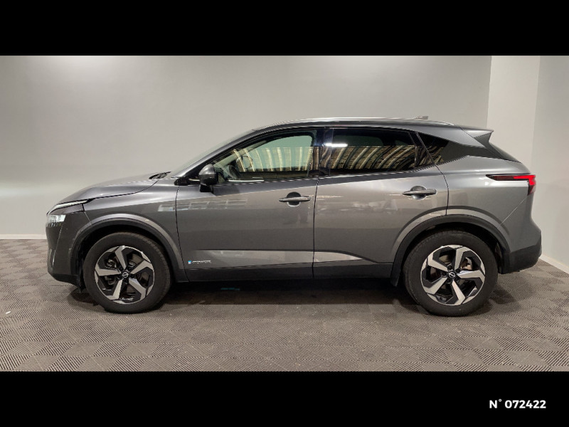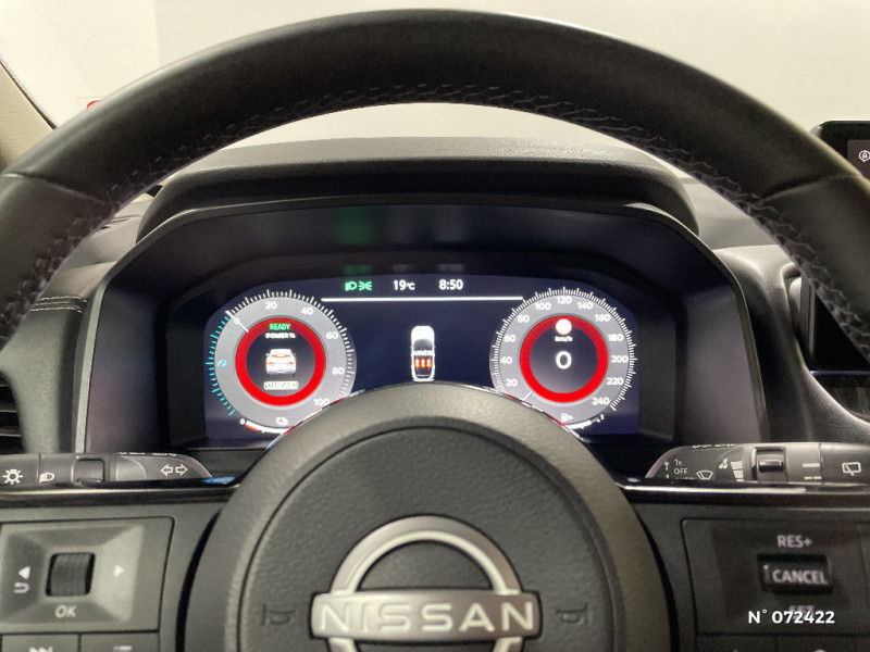 Port USB AV (USB-A) / Porte-gobelets AV (x2) / Prise 12V dans le coffre / ABS et EBD / Accoudoir central AR avec porte-gobelets (2) / Alarme périmétrique / Antenne aileron de requin / Système "Chassis Control" (contrôle actif de trajectoire et de l'assiette) / Système d'alerte anticollision AR intelligent avec détection des objets en mouvement / Système d'alerte prédictif anticollision frontale / Système d'ouverture et de démarrage sans clé "Intelligent key" / Technologie e-Pedal Step / Trappe de carburant sans bouchon / Vitres électriques avec mode impulsionnel AV et AR et commande à distance / Volant et pommeau de levier de vitesses gainé cuir / Repose-genoux en TEP (Tissu Enduit) / Rétroviseur intérieur électrochromatique / Sélection du mode de conduite (ECO, STANDARD et SPORT) / Sellerie Tissu Noir et Gris / Siège conducteur avec réglage lombaire électrique 2 voies / Siège conducteur avec réglage lombaire 2 voies / Badges e-POWER / Buses de ventilation AR / Cache-bagages amovible / Chargeur à induction pour Smartphone 15W / Combiné d'instrumentation digital avec écran 12,3'' TFT / Commandes au volant: contrôle de l'ordinateur de bord, audio, téléphone, régulateur et limiteur de vitesse / Compartiment pour lunettes de soleil / Crochets d'arrimage (6) dans le coffre / Deuxième port USB AV (USB-A et USB-C) / Double port USB AR (USB-A et USB-C) / Eclairage d'ambiance (console centrale) / Eclairage d'ambiance linéaire / Eclairage du coffre (x2) / Feu stop central LED / Feux de détresse à déclenchement automatique / Feux de route adaptatifs / Feux diurnes LED avec système Follow Me Home / Frein à main électrique avec aide au stationnement/démarrage et fonction Autohold / Freinage d'urgence anticollision AR / Freinage d'urgence intelligent avec détection piétons, cyclistes et intersections / Habillage console centrale et contre-portes en TEP / Insert de pare-chocs AR Gris satiné / Kit de réparation pneumatique / Liseuses AV et AR / NBAS (amplificateur de freinage d'urgence) / Nissan Connect Services / Ouverture des portières AR à 85° / Pack Navigation / Pare-soleil côté conducteur et passager avec miroir de courtoisie éclairé / Peinture opaque monoton / Plancher de coffre modulable / Poignées de maintien AV et AR / Poignées de maintien pour passager AV et AR / Points d'ancrage pour sièges enfants ISOFIX à l'AR (x2)