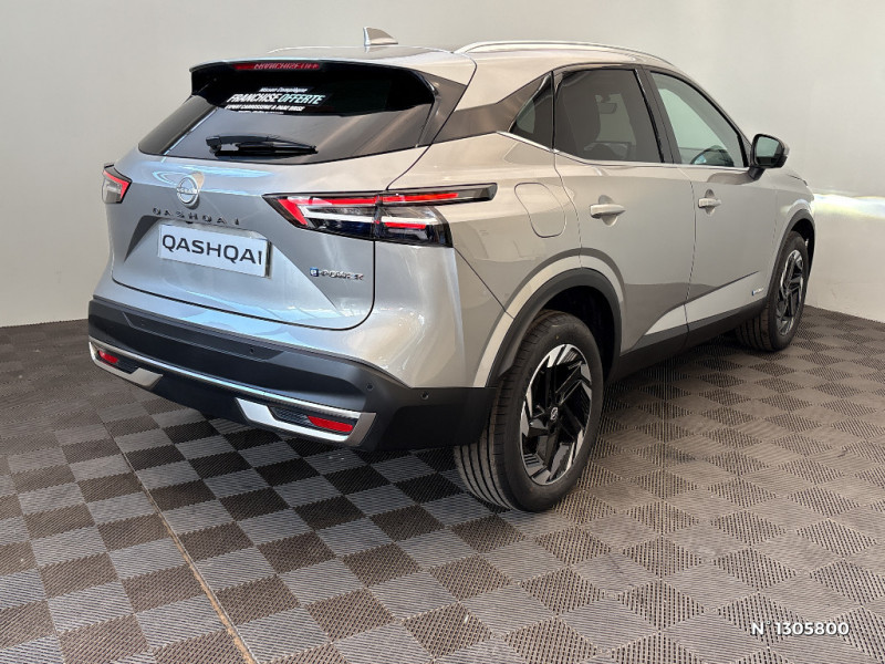Double port USB AR (USB-A et USB-C) / Double port USB AV et AR (USB-C) / Eclairage d'ambiance personnalisable (7 points lumineux) / Sélection du mode de conduite (ECO, STANDARD et SPORT) / Sellerie mixte TEP/Tissu (Noir) / Siège conducteur avec réglage lombaire électrique 2 voies / Système audio radio avec écran tactile 12,3" et 6 HP / Système "Chassis Control" (contrôle actif de trajectoire et de l'assiette) / Système d'alerte anticollision AR intelligent / Système d'alerte prédictif anticollision frontale / Système de navigation NissanConnect avec services Google intégrés Google Maps, Google Assistant, Google Play Store, Live Traffic et cartes 3D, Navigation porte-à -porte, Recherche par Points d'Intérêt, Google Street View, Vue Satellite et Météo, Mise à jour des cartes et logiciels, Prix des carburants / Système d'ouverture et de démarrage sans clé "Intelligent key" avec fonction de verrouillage/ déverrouillage à l'approche du véhicule / Technologie e-Pedal Step / Trappe de carburant sans bouchon / 6 crochets de fixation dans le coffre (4 au plancher, 2 sur les côtés) / Accoudoir central AR avec porte-gobelets (2) / Alarme périmétrique / Alerte et prévention de sortie de voie / Ouverture des portières AR à 85° / Pare-chocs AV et AR Noir mat / Pare-soleil côté conducteur et passager avec miroir de courtoisie éclairé / Plancher de coffre modulable / Poignées de maintien pour passager AV et AR / Points d'ancrage pour sièges enfants ISOFIX à l'AR (x2) / Porte-gobelets (x2) / Prise 12V à l'AV (x1) et dans le coffre (x1) / ProPILOT avec Navi-link : technologie de conduite assistée Aide au maintien dans la voie, Freinage anticipé dans les courbes via la navigation, Assistant de conduite en embouteillage, Ajustement aux limitations de vitesse (automatique ou sur commande) / Rails de toit longitudinaux chromés / Régulateur de vitesse intelligent avec ajustement aux limitations de vitesse sur commande / Repose-genoux en TEP / Rétroviseur intérieur électrochromatique sans contour / ABS (système antiblocage des freins) / Eclairage du coffre (x2) / Feu stop central LED / Feux de détresse à déclenchement automatique / Feux de route adaptatifs / Frein à main électrique avec aide au stationnement/démarrage et fonction Autohold / Freinage d'urgence anticollision AR / Freinage d'urgence intelligent avec détection piétons, cyclistes et intersections / Inserts de pare-chocs AV et AR Gris satiné / Kit de réparation pneumatique / Liseuses LED à l'AV et à l'AR / NBAS (amplificateur de freinage d'urgence) / Nissan AVM 3D - Vision Intelligente à 360° : système d'aide au stationnement qui facilite les manoeuvres de stationnement en vous offrant une vision à 360° : Caméra AR avec repères de gabarit, Caméra AV, Caméras latérales situées dans les rétroviseurs extérieurs, Radars 360°, Fonction ''capot transparent'', Mémorisation stationnement régulier et intersections / NissanConnect Services - Services télématiques avec accès à distance depuis un smartphone Service de commandes à distance, Géolocalisation du véhicule, Historique de conduite et de navigation, Rapports sur l'état de santé du véhicule et alertes de dysfonctionnement, Rappel des pas d'entretien, Aide et assistance Nissan, Point d'accès Wi-Fi, Alertes intelligentes, Compatibilité Amazon Alexa / Antenne aileron de requin / Badges e-POWER / Boîte de vitesses automatique 1 rapports / Bouton d'accès rapide aux réglages des aides à la conduite / Buses de ventilation AR / Cache-bagages amovible / Chargeur à induction pour Smartphone 15W / Ciel de toit Gris clair / Clignotants AV et AR LED / Combiné d'instrumentation digital 12,3'' / Commandes au volant: contrôle de l'ordinateur de bord, audio, téléphone, régulateur et limiteur de vitesse / Compartiment pour lunettes de soleil (non disponible avec toit panoramique en verre) / Contre-portes et console centrale en TEP / Contrôle de traction électronique