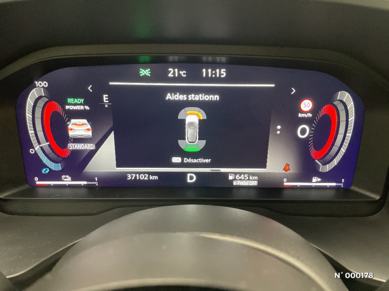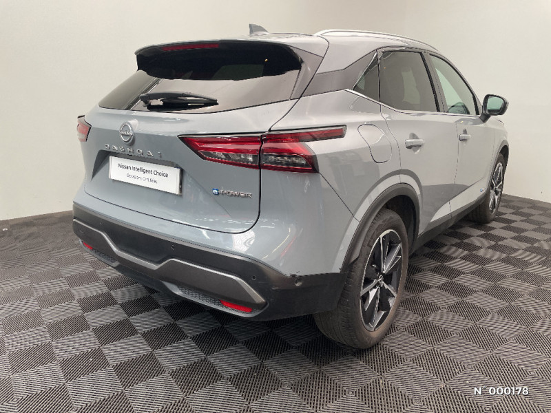 Peinture opaque monoton / Plancher de coffre modulable / Poignées de maintien AV et AR / Poignées de maintien pour passager AV et AR / Points d'ancrage pour sièges enfants ISOFIX à l'AR (x2) / Port USB AV (USB-A) / Porte-gobelets AV (x2) / Prise 12V dans le coffre / ProPILOT Park : technologie de stationnement automatique / Repose-genoux en TEP (Tissu Enduit) / Rétroviseur intérieur électrochromatique / Siège passager avec réglage lombaire manuel 2 voies / Système "Chassis Control" (contrôle actif de trajectoire et de l'assiette) / Système d'alerte anticollision AR intelligent avec détection des objets en mouvement / Système d'alerte prédictif anticollision frontale / Système d'ouverture et de démarrage sans clé "Intelligent key" / Technologie e-Pedal Step / Trappe de carburant sans bouchon / Vitres électriques avec mode impulsionnel AV et AR et commande à distance / Volant et pommeau de levier de vitesses gainé cuir / Feux de détresse à déclenchement automatique / Feux de route intelligents avec 12 fasceaux indépendants / Feux diurnes LED avec système Follow Me Home / Frein à main électrique avec aide au stationnement/démarrage et fonction Autohold / Freinage d'urgence anticollision AR / Freinage d'urgence intelligent avec détection piétons, cyclistes et intersections / Habillage console centrale et contre-portes en TEP / Hayon électrique avec ouverture mains libres / Insert de pare-chocs AR Gris satiné / Kit de réparation pneumatique / Liseuses AV et AR / NBAS (amplificateur de freinage d'urgence) / Nissan Connect Services / Ouverture des portières AR à 85° / Pack Navigation / Pack ProPilot / Pare-soleil côté conducteur et passager avec miroir de courtoisie éclairé / Sélection du mode de conduite (ECO, STANDARD et SPORT) / Sellerie mixte TEP/Tissu Noir Bleuté ou Gris Clair / Siège conducteur avec réglage lombaire électrique 8 voies / Chargeur à induction pour Smartphone 15W / Ciel de toit Noir / Clignotants AV et AR LED / Combiné d'instrumentation digital avec écran 12,3'' TFT / Commandes au volant: contrôle de l'ordinateur de bord, audio, téléphone, régulateur et limiteur de vitesse / Compartiment pour lunettes de soleil / Crochets d'arrimage (6) dans le coffre / Deuxième port USB AV (USB-A et USB-C) / Double port USB AR (USB-A et USB-C) / Eclairage d'ambiance (contre-portes et console centrale) / Eclairage du coffre (x2) / Feu stop central LED / Badges e-POWER / Buses de ventilation AR / Cache-bagages amovible / ABS et EBD / Accoudoir central AR avec porte-gobelets (2) / Alarme périmétrique / Antenne aileron de requin