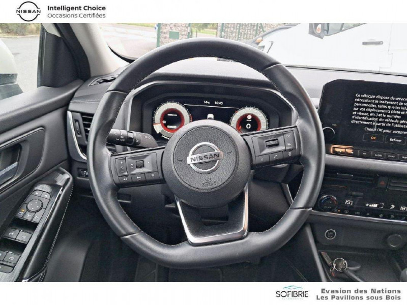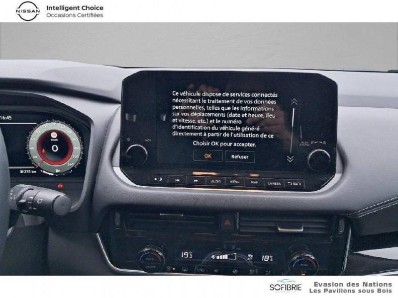 Avertisseur de ceintures de sécurité / Volant et pommeau de levier de vitesses gainé cuir / Pare-soleil côté conducteur et passager avec miroir de courtoisie éclairé / Pack Navigation / Nissan Connect Services / Nissan AVM - Vision Intelligente à 360° / Vitres électriques avec mode impulsionnel AV et AR et commande à distance / Antenne aileron de requin / Points d'ancrage pour sièges enfants ISOFIX à l'AR / Poignées de maintien AV et AR / Trappe de carburant sans bouchon / Alarme périmétrique / Plancher de coffre modulable / Système STOP/START / Porte-gobelets / ABS et EBD / Système d'alerte prédictif anticollision frontale / Système d'ouverture et de démarrage sans clé Intelligent key / Système de navigation NissanConnect avec écran tactile 9 / Frein à main électrique avec aide au stationnement/démarrage et fonction Autohold / Freinage d'urgence intelligent avec détection piétons / cyclistes et intersections / Freinage d'urgence anticollision AR / Feux diurnes LED avec système Follow Me Home / Kit de réparation pneumatique / Système d'alerte anticollision AR intelligent avec détection des objets en mouvement / Système Chassis Control / Insert de pare-chocs AR couleur Argent / Système audio radio 6 HP / Habillage console centrale et contre-portes en TEP / NBAS / Liseuses AV et AR / Sellerie Tissu Noir et Gris / rabattables et dégivrants / Siège passager réglable en hauteur / Siège conducteur avec réglage lombaire 2 voies / Double port USB AR / Deuxième port USB AV / Feu stop central LED / Rétroviseur intérieur électrochromatique / Repose-genoux en TEP / Eclairage du coffre / Eclairage d'ambiance linéaire / Feux de route adaptatifs / Feux de détresse à déclenchement automatique / Crochets d'arrimage dans le coffre / Compartiment pour lunettes de soleil / Cache-bagages amovible / Boîte à gants éclairée / Prise 12V dans le coffre / Commandes au volant: contrôle de l'ordinateur de bord / téléphone / Combiné d'instrumentation digital avec écran 12 / 3'' TFT / Crochets de cintres à l'AR