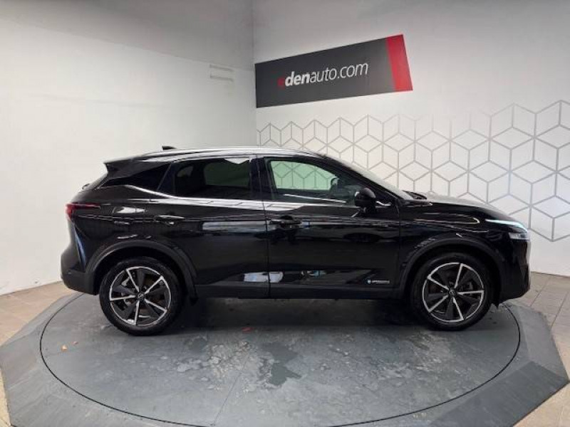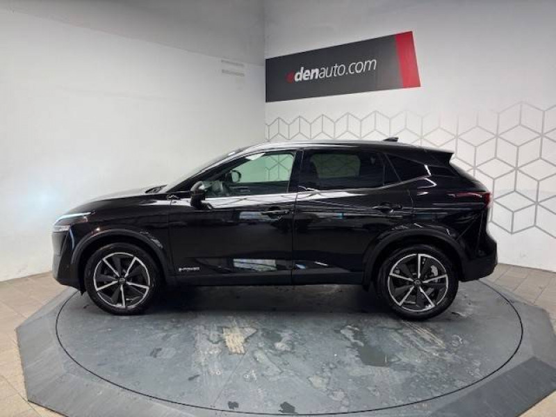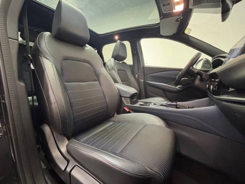 ABS et EBD / Accoudoir central AR avec porte-gobelets (2) / Alarme périmétrique / Antenne aileron de requin / Badges e-POWER / Buses de ventilation AR / Cache-bagages amovible / Chargeur à induction pour Smartphone 15W / Ciel de toit Noir / Clignotants AV et AR LED / Combiné d'instrumentation digital avec écran 12,3'' TFT / Commandes au volant: contrôle de l'ordinateur de bord, audio, téléphone, régulateur et limiteur de vitesse / Compartiment pour lunettes de soleil / Crochets d'arrimage (6) dans le coffre / Deuxième port USB AV (USB-A et USB-C) / Double port USB AR (USB-A et USB-C) / Eclairage d'ambiance (contre-portes et console centrale) / Eclairage du coffre (x2) / Feu stop central LED / Feux de détresse à déclenchement automatique / Feux de route intelligents avec 12 fasceaux indépendants / Freinage d'urgence anticollision AR / Freinage d'urgence intelligent avec détection piétons, cyclistes et intersections / Frein à main électrique avec aide au stationnement/démarrage et fonction Autohold / Habillage console centrale et contre-portes en TEP / Hayon électrique avec ouverture mains libres / Insert de pare-chocs AR Gris satiné / Kit de réparation pneumatique / Liseuses AV et AR / NBAS (amplificateur de freinage d'urgence) / Nissan Connect Services / Ouverture des portières AR à 85° / Pack Navigation / Pack ProPilot / Pare-soleil côté conducteur et passager avec miroir de courtoisie éclairé / Peinture opaque monoton / Plancher de coffre modulable / Poignées de maintien pour passager AV et AR / Points d'ancrage pour sièges enfants ISOFIX à l'AR (x2) / Porte-gobelets AV (x2) / Port USB AV (USB-A) / Prise 12V dans le coffre / ProPILOT Park : technologie de stationnement automatique / Repose-genoux en TEP (Tissu Enduit) / Rétroviseur intérieur électrochromatique / Sélection du mode de conduite (ECO, STANDARD et SPORT) / Sellerie mixte TEP/Tissu Noir Bleuté ou Gris Clair / Siège conducteur avec réglage lombaire électrique 8 voies / Siège passager avec réglage lombaire manuel 2 voies / Système "Chassis Control" (contrôle actif de trajectoire et de l'assiette) / Système d'alerte anticollision AR intelligent avec détection des objets en mouvement / Système d'alerte prédictif anticollision frontale / Système d'ouverture et de démarrage sans clé "Intelligent key" / Technologie e-Pedal Step / Trappe de carburant sans bouchon