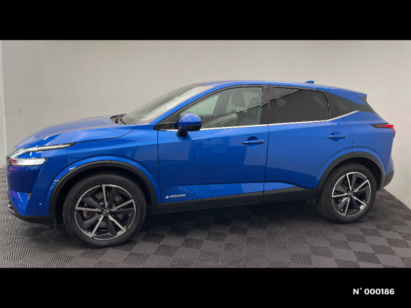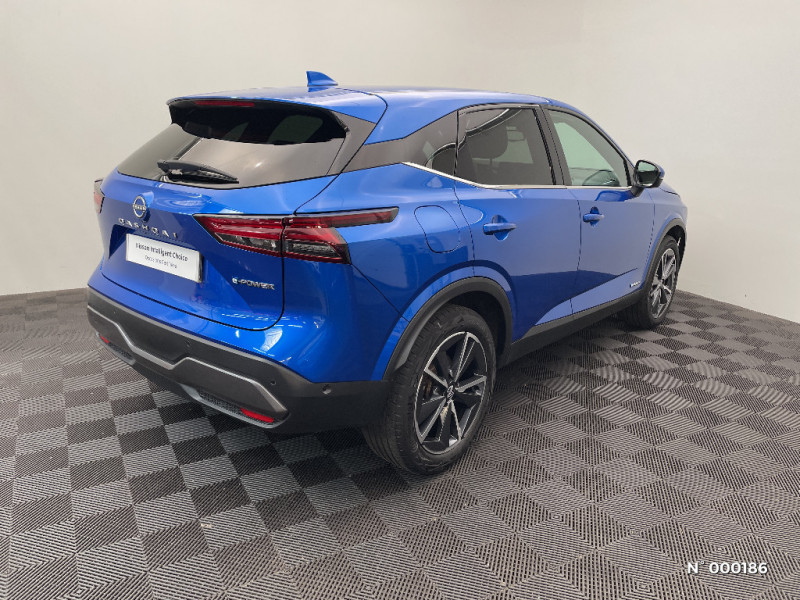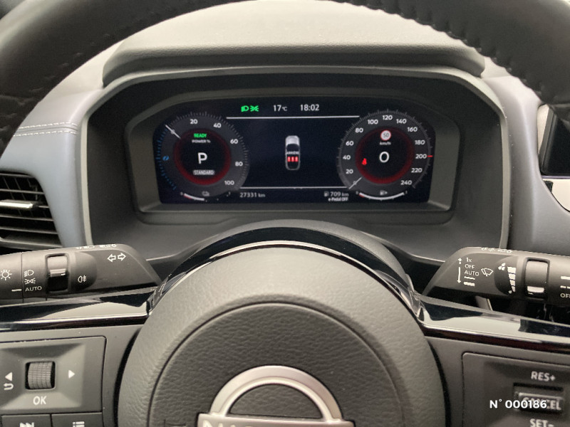 Prise 12V dans le coffre / ProPILOT Park : technologie de stationnement automatique / Alarme périmétrique / Antenne aileron de requin / Badges e-POWER / Buses de ventilation AR / Cache-bagages amovible / Chargeur à induction pour Smartphone 15W / ABS et EBD / Accoudoir central AR avec porte-gobelets (2) / Repose-genoux en TEP (Tissu Enduit) / Rétroviseur intérieur électrochromatique / Sélection du mode de conduite (ECO, STANDARD et SPORT) / Sellerie mixte TEP/Tissu Noir Bleuté ou Gris Clair / Siège conducteur avec réglage lombaire électrique 8 voies / Siège passager avec réglage lombaire manuel 2 voies / Système "Chassis Control" (contrôle actif de trajectoire et de l'assiette) / Système d'alerte anticollision AR intelligent avec détection des objets en mouvement / Système d'alerte prédictif anticollision frontale / Ciel de toit Noir / Clignotants AV et AR LED / Combiné d'instrumentation digital avec écran 12,3'' TFT / Commandes au volant: contrôle de l'ordinateur de bord, audio, téléphone, régulateur et limiteur de vitesse / Compartiment pour lunettes de soleil / Crochets d'arrimage (6) dans le coffre / Deuxième port USB AV (USB-A et USB-C) / Double port USB AR (USB-A et USB-C) / Eclairage d'ambiance (contre-portes et console centrale) / Eclairage du coffre (x2) / Feu stop central LED / Feux de détresse à déclenchement automatique / Feux de route intelligents avec 12 fasceaux indépendants / Feux diurnes LED avec système Follow Me Home / Frein à main électrique avec aide au stationnement/démarrage et fonction Autohold / Freinage d'urgence anticollision AR / Freinage d'urgence intelligent avec détection piétons, cyclistes et intersections / Habillage console centrale et contre-portes en TEP / Hayon électrique avec ouverture mains libres / Insert de pare-chocs AR Gris satiné / Kit de réparation pneumatique / Liseuses AV et AR / NBAS (amplificateur de freinage d'urgence) / Nissan Connect Services / Ouverture des portières AR à 85° / Pack Navigation / Pack ProPilot / Pare-soleil côté conducteur et passager avec miroir de courtoisie éclairé / Peinture opaque monoton / Plancher de coffre modulable / Poignées de maintien AV et AR / Poignées de maintien pour passager AV et AR / Points d'ancrage pour sièges enfants ISOFIX à l'AR (x2) / Port USB AV (USB-A) / Porte-gobelets AV (x2) / Système d'ouverture et de démarrage sans clé "Intelligent key" / Technologie e-Pedal Step / Trappe de carburant sans bouchon / Vitres électriques avec mode impulsionnel AV et AR et commande à distance / Volant et pommeau de levier de vitesses gainé cuir