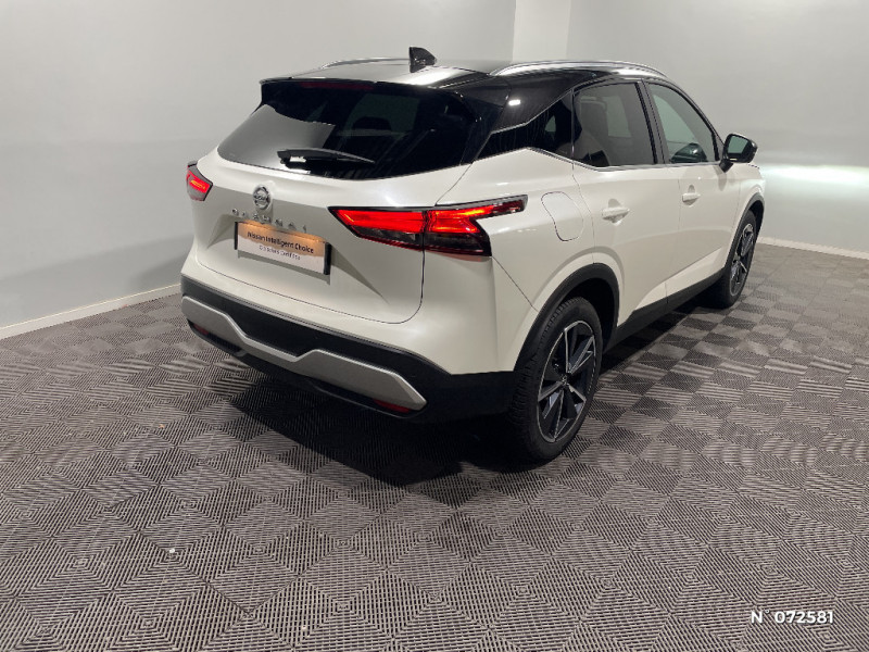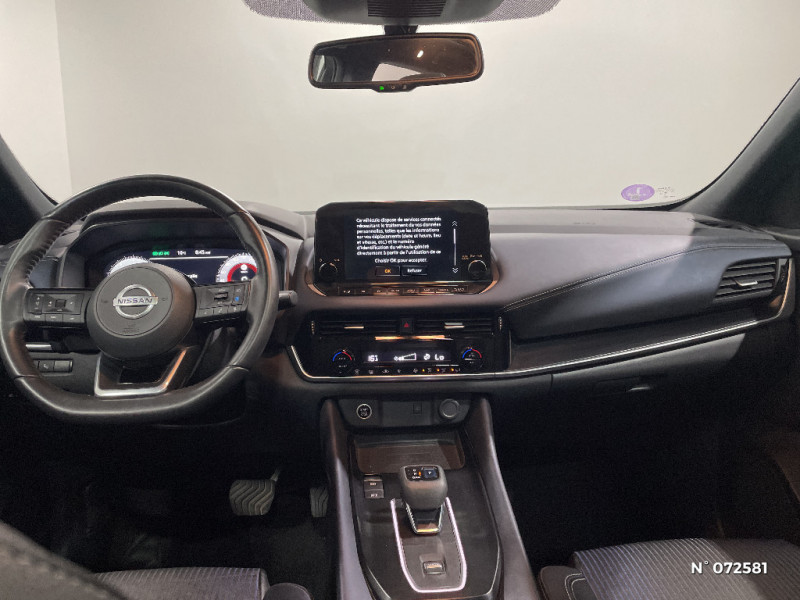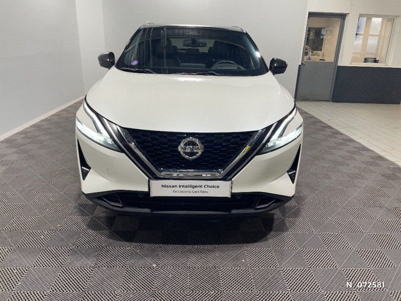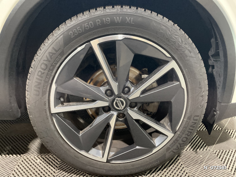 Chargeur à induction pour Smartphone 15W / Ciel de toit Noir / Combiné d'instrumentation digital avec écran 12,3'' TFT / Commandes au volant: contrôle de l'ordinateur de bord, audio, téléphone, régulateur et limiteur de vitesse / Compartiment pour lunettes de soleil / Crochets d'arrimage (6) dans le coffre / Crochets de cintres à l'AR / Deuxième port USB AV (USB-A et USB-C) / Double port USB AR (USB-A et USB-C) / Eclairage d'ambiance (contre-portes et console centrale) / Eclairage du coffre (x2) / Feu stop central LED / Feux de détresse à déclenchement automatique / Feux de route intelligents avec 12 fasceaux indépendants / Feux diurnes LED avec système Follow Me Home / Volant et pommeau de levier de vitesses gainé cuir / Repose-genoux en TEP (Tissu Enduit) / Rétroviseur intérieur électrochromatique / Sélection du mode de conduite (ECO, STANDARD et SPORT) / Sellerie mixte TEP/Tissu Noir Bleuté ou Gris Clair / Siège conducteur avec réglage lombaire électrique 8 voies / Frein à main électrique avec aide au stationnement/démarrage et fonction Autohold / Freinage d'urgence anticollision AR / Freinage d'urgence intelligent avec détection piétons, cyclistes et intersections / Habillage console centrale et contre-portes en TEP / Hayon électrique avec ouverture mains libres / Insert de pare-chocs AR couleur Argent / Kit de réparation pneumatique / Liseuses AV et AR / NBAS (amplificateur de freinage d'urgence) / Nissan AVM - Vision Intelligente à 360° / Nissan Connect Services / Pack Navigation / Pack ProPilot / Pare-soleil côté conducteur et passager avec miroir de courtoisie éclairé / Peinture opaque monoton / ABS et EBD / Siège passager avec réglage lombaire électrique 2 voies / Système "Chassis Control" (contrôle actif de trajectoire et de l'assiette) / Système d'alerte anticollision AR intelligent avec détection des objets en mouvement / Système d'alerte prédictif anticollision frontale / Système de navigation NissanConnect avec écran tactile 9" / Système d'ouverture et de démarrage sans clé "Intelligent key" / Trappe de carburant sans bouchon / Vitres électriques avec mode impulsionnel AV et AR et commande à distance / Plancher de coffre modulable / Poignées de maintien AV et AR / Points d'ancrage pour sièges enfants ISOFIX à l'AR (x2) / Port USB AV (USB-A) / Porte-gobelets (x2) / Prise 12V dans le coffre / Alarme périmétrique / Antenne aileron de requin / Cache-bagages amovible