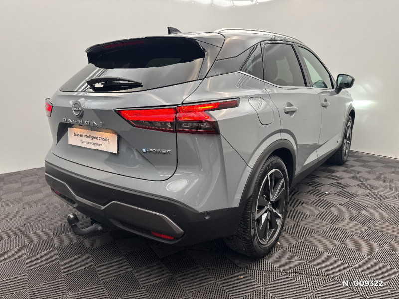 Repose-genoux en TEP (Tissu Enduit) / Rétroviseur intérieur électrochromatique / Sélection du mode de conduite (ECO, STANDARD et SPORT) / Sellerie mixte TEP/Tissu Noir Bleuté ou Gris Clair / Siège conducteur avec réglage lombaire électrique 8 voies / Siège passager avec réglage lombaire manuel 2 voies / Système "Chassis Control" (contrôle actif de trajectoire et de l'assiette) / Système d'alerte anticollision AR intelligent avec détection des objets en mouvement / Système d'alerte prédictif anticollision frontale / Ouverture des portières AR à 85° / Pack Navigation / Pack ProPilot / Pare-soleil côté conducteur et passager avec miroir de courtoisie éclairé / Accoudoir central AR avec porte-gobelets (2) / Alarme périmétrique / Antenne aileron de requin / Badges e-POWER / Buses de ventilation AR / Cache-bagages amovible / Chargeur à induction pour Smartphone 15W / Ciel de toit Noir / Peinture opaque monoton / Plancher de coffre modulable / Poignées de maintien AV et AR / Système d'ouverture et de démarrage sans clé "Intelligent key" / Technologie e-Pedal Step / Trappe de carburant sans bouchon / Vitres électriques avec mode impulsionnel AV et AR et commande à distance / Volant et pommeau de levier de vitesses gainé cuir / Clignotants AV et AR LED / Combiné d'instrumentation digital avec écran 12,3'' TFT / Commandes au volant: contrôle de l'ordinateur de bord, audio, téléphone, régulateur et limiteur de vitesse / Compartiment pour lunettes de soleil / Crochets d'arrimage (6) dans le coffre / Deuxième port USB AV (USB-A et USB-C) / Double port USB AR (USB-A et USB-C) / Eclairage d'ambiance (contre-portes et console centrale) / ABS et EBD / Eclairage du coffre (x2) / Feu stop central LED / Feux de détresse à déclenchement automatique / Feux de route intelligents avec 12 fasceaux indépendants / Feux diurnes LED avec système Follow Me Home / Frein à main électrique avec aide au stationnement/démarrage et fonction Autohold / Freinage d'urgence anticollision AR / Freinage d'urgence intelligent avec détection piétons, cyclistes et intersections / Habillage console centrale et contre-portes en TEP / Hayon électrique avec ouverture mains libres / Insert de pare-chocs AR Gris satiné / Kit de réparation pneumatique / Liseuses AV et AR / NBAS (amplificateur de freinage d'urgence) / Nissan Connect Services / Poignées de maintien pour passager AV et AR / Points d'ancrage pour sièges enfants ISOFIX à l'AR (x2) / Port USB AV (USB-A) / Porte-gobelets AV (x2) / Prise 12V dans le coffre / ProPILOT Park : technologie de stationnement automatique