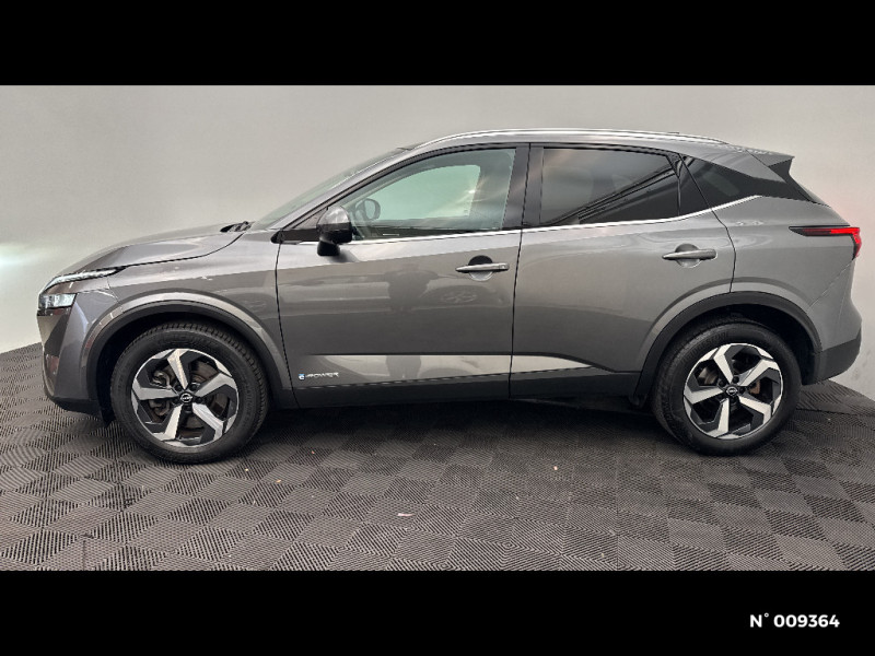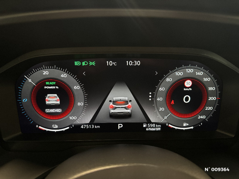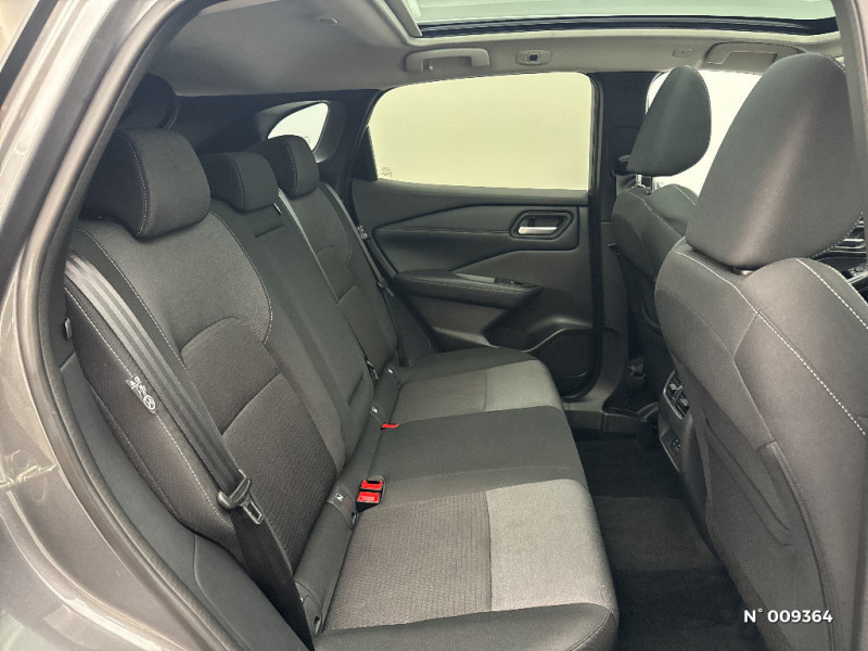 ABS et EBD / Insert de pare-chocs AR Gris satiné / Kit de réparation pneumatique / Liseuses AV et AR / NBAS (amplificateur de freinage d'urgence) / Nissan Connect Services / Ouverture des portières AR à 85° / Pack Navigation / Pare-soleil côté conducteur et passager avec miroir de courtoisie éclairé / Peinture opaque monoton / Plancher de coffre modulable / Poignées de maintien AV et AR / Alarme périmétrique / Antenne aileron de requin / Badges e-POWER / Buses de ventilation AR / Cache-bagages amovible / Chargeur à induction pour Smartphone 15W / Combiné d'instrumentation digital avec écran 12,3'' TFT / Commandes au volant: contrôle de l'ordinateur de bord, audio, téléphone, régulateur et limiteur de vitesse / Compartiment pour lunettes de soleil / Crochets d'arrimage (6) dans le coffre / Vitres électriques avec mode impulsionnel AV et AR et commande à distance / Volant et pommeau de levier de vitesses gainé cuir / Repose-genoux en TEP (Tissu Enduit) / Rétroviseur intérieur électrochromatique / Sélection du mode de conduite (ECO, STANDARD et SPORT) / Sellerie Tissu Noir et Gris / Siège conducteur avec réglage lombaire électrique 2 voies / Siège conducteur avec réglage lombaire 2 voies / Poignées de maintien pour passager AV et AR / Points d'ancrage pour sièges enfants ISOFIX à l'AR (x2) / Port USB AV (USB-A) / Porte-gobelets AV (x2) / Prise 12V dans le coffre / Accoudoir central AR avec porte-gobelets (2) / Système "Chassis Control" (contrôle actif de trajectoire et de l'assiette) / Système d'alerte anticollision AR intelligent avec détection des objets en mouvement / Système d'alerte prédictif anticollision frontale / Système d'ouverture et de démarrage sans clé "Intelligent key" / Technologie e-Pedal Step / Trappe de carburant sans bouchon / Deuxième port USB AV (USB-A et USB-C) / Double port USB AR (USB-A et USB-C) / Eclairage d'ambiance (console centrale) / Eclairage d'ambiance linéaire / Eclairage du coffre (x2) / Feu stop central LED / Feux de détresse à déclenchement automatique / Feux de route adaptatifs / Feux diurnes LED avec système Follow Me Home / Frein à main électrique avec aide au stationnement/démarrage et fonction Autohold / Freinage d'urgence anticollision AR / Freinage d'urgence intelligent avec détection piétons, cyclistes et intersections / Habillage console centrale et contre-portes en TEP