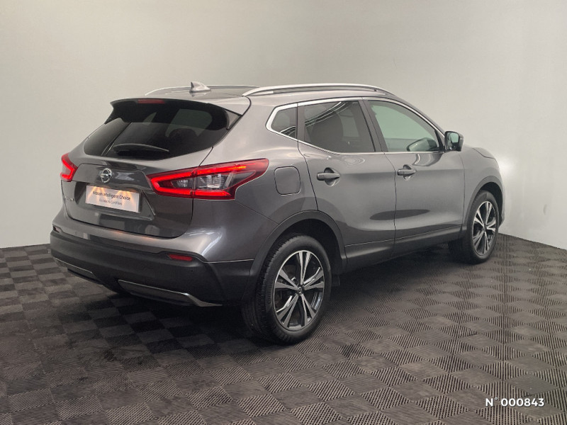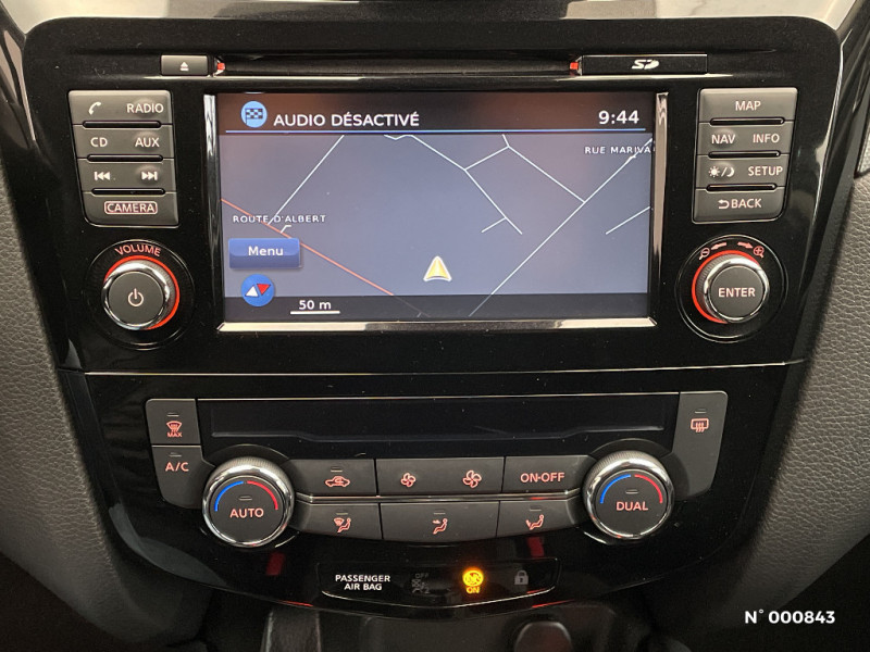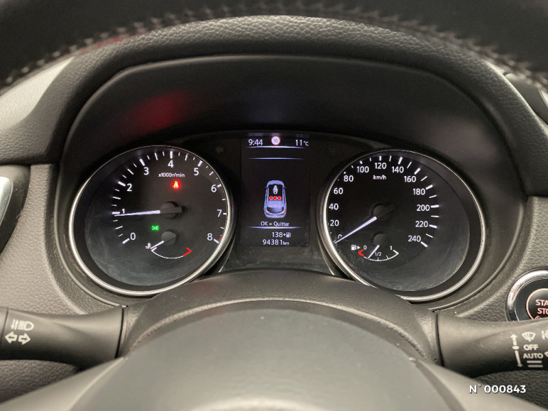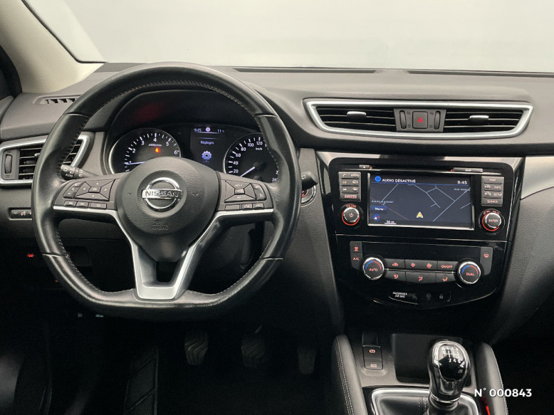 Système audio Radio, CD/MP3, connexion USB / Système "Châssis Control" / Système d'aide au stationnement : Caméra AR avec repères de gabarit, Caméra AV, Caméras latérales si situées dans les rétroviseurs extérieurs / Vitres latérales AR et vitre de hayon surteintées / Volant et levier de vitesse gainés cuir / 6 HP / Ciel de toit gris clair / Commandes au volant (audio, Bluetooth, régulateur et limiteur de vitesse, contrôle de l'ordinateur de bord) / Contour des vitres latérales chromé / Direction assistée électrique ajustable (mode Sport ou Normal) / Eclairage d'ambiance intérieur / Fermeture et ouverture centralisées des portes et vitres à distance / Feux AR avec signature LED et effet 3D / Feux diurnes à LED avec signature lumineuse / Fonction Autohold (aide au stationnement/démarrage) / Frein à main électrique / Inserts couleur argent pare-chocs AR / Inserts couleur argent pare-chocs AV / Inserts de porte et planche de bord en argent mat 3D / Kit de réparation pneumatique / Nissan Connect : Système de navigation multimédia avec écran tactile couleur 7" / Ordinateur de bord avec écran TFT couleur HD 5" / Pack Securité / Pare-soleil côtés conducteur et passager avec miroir de courtoisie / Pare-soleil côtés conducteur et passager avec miroir de courtoisie éclairé / Plancher de coffre modulable - 16 combinaisons / Poignée interieure d'ouverture porte chromée / Poignées de porte couleur carrosserie / Points d'ancrage de siège enfants ISOFIX à l'AR / Porte-gobelets AR / Porte-gobelets AV / Prise auxiliaire jack 3.5" dans accoudoir central AV / Radio digitale-Réception (DAB) / ABS Système antiblocage des freins / Allumage intelligent des phares / Antenne aileron de requin / Rétroviseurs extérieurs avec indicateurs de changement de direction à LED / Rétroviseurs extérieurs couleur carrosserie / Sièges AV avec réglage lombaire / Sièges AV sport "monoform style"