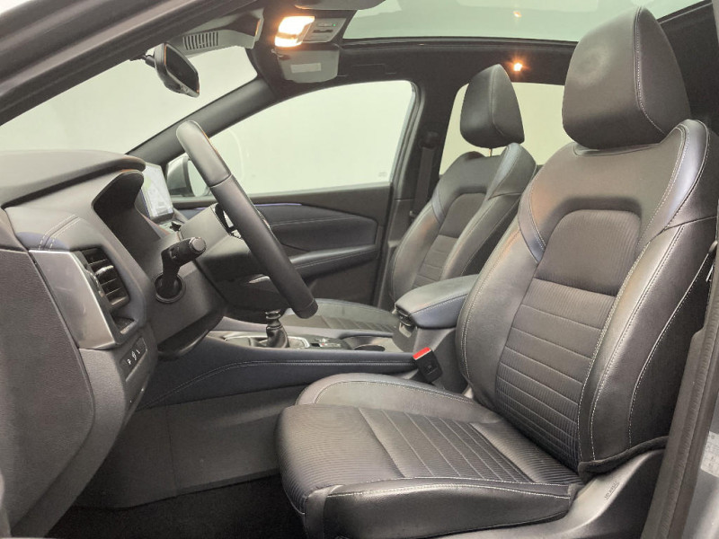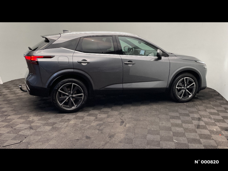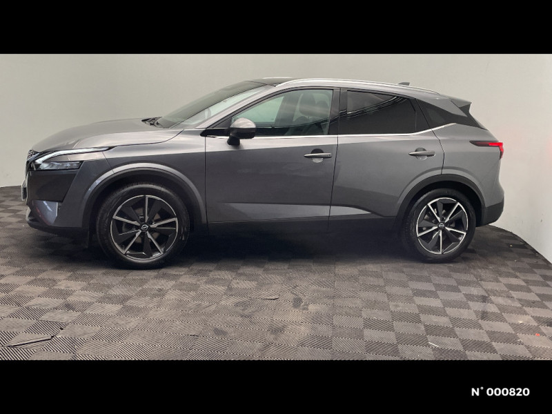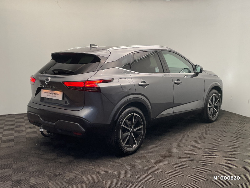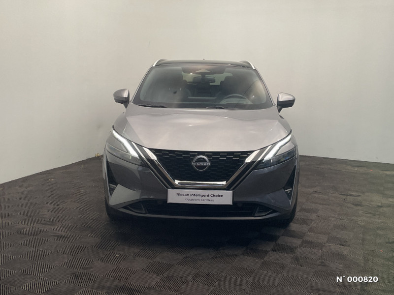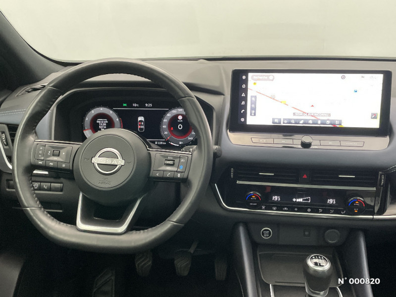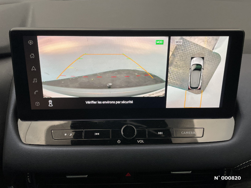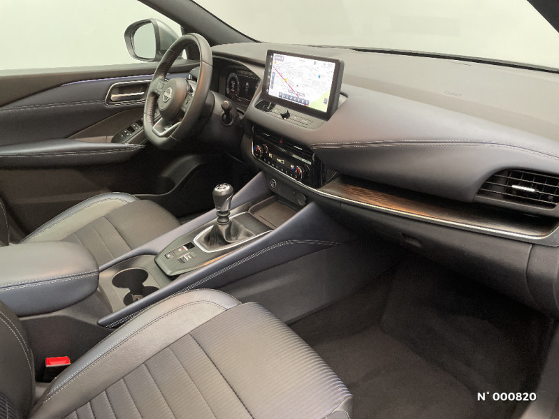 Alarme périmétrique / Antenne aileron de requin / Pack Driver Assist / Système "Chassis Control" (contrôle actif de trajectoire et de l'assiette) / Système d'alerte anticollision AR intelligent avec détection des objets en mouvement / Système d'alerte prédictif anticollision frontale / Système d'ouverture et de démarrage sans clé "Intelligent key" / Trappe de carburant sans bouchon / Vitres électriques avec mode impulsionnel AV et AR et commande à distance / Volant et pommeau de levier de vitesses gainé cuir / Buses de ventilation AR / Cache-bagages amovible / Chargeur à induction pour Smartphone 15W / Ciel de toit Noir / Clignotants AV et AR LED / Combiné d'instrumentation digital avec écran 12,3'' TFT / Insert de pare-chocs AR Gris satiné / Kit de réparation pneumatique / Liseuses AV et AR / NBAS (amplificateur de freinage d'urgence) / Nissan Connect Services / Ouverture des portières AR à 85° / Pack Navigation / Pare-soleil côté conducteur et passager avec miroir de courtoisie éclairé / Peinture opaque monoton / Plancher de coffre modulable / Poignées de maintien AV et AR / Poignées de maintien pour passager AV et AR / Points d'ancrage pour sièges enfants ISOFIX à l'AR (x2) / Pommeau de levier de vitesse gainé de cuir / Port USB AV (USB-A) / Porte-gobelets AV (x2) / Prise 12V dans le coffre / Repose-genoux en TEP (Tissu Enduit) / Rétroviseur intérieur électrochromatique / Sélection du mode de conduite (ECO, STANDARD et SPORT) / Sellerie mixte TEP/Tissu Noir Bleuté ou Gris Clair / Siège conducteur avec réglage lombaire électrique 8 voies / Siège passager avec réglage lombaire manuel 2 voies / Insert de pare-chocs AR couleur Argent / Commandes au volant: contrôle de l'ordinateur de bord, audio, téléphone, régulateur et limiteur de vitesse / Compartiment pour lunettes de soleil / Crochets d'arrimage (6) dans le coffre / Deuxième port USB AV (USB-A et USB-C) / Double port USB AR (USB-A et USB-C) / Eclairage d'ambiance (contre-portes et console centrale) / Eclairage du coffre (x2) / Feu stop central LED / Feux de détresse à déclenchement automatique / Feux de route intelligents avec 12 fasceaux indépendants / Feux diurnes LED avec système Follow Me Home / Frein à main électrique avec aide au stationnement/démarrage et fonction Autohold / Freinage d'urgence anticollision AR / Freinage d'urgence intelligent avec détection piétons, cyclistes et intersections / Habillage console centrale et contre-portes en TEP / Hayon électrique avec ouverture mains libres / ABS et EBD / Accoudoir central AR avec porte-gobelets (2)