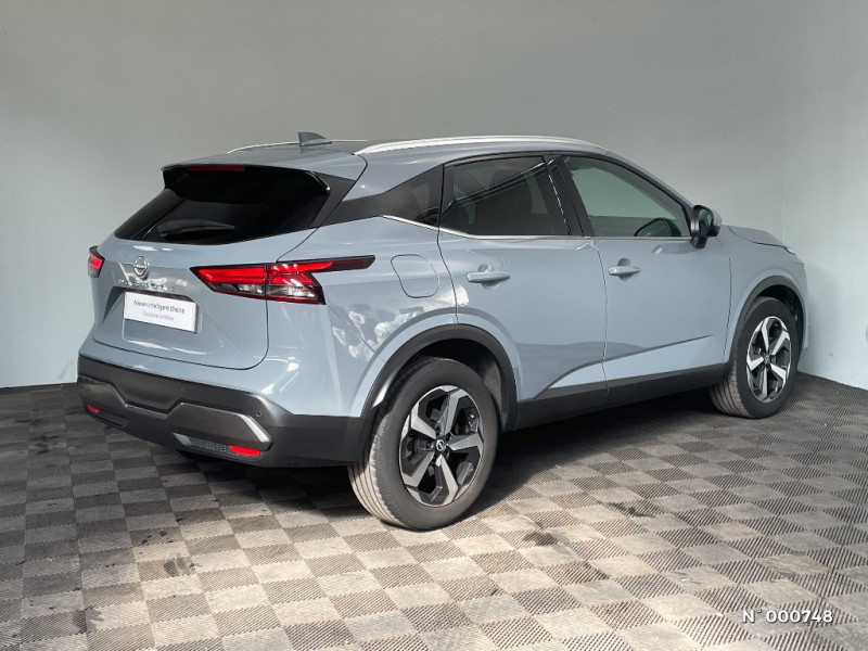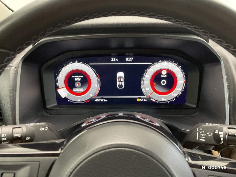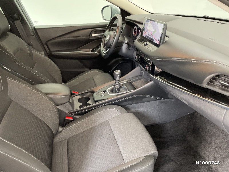 Système d'alerte prédictif anticollision frontale / Système d'ouverture et de démarrage sans clé "Intelligent key" / Trappe de carburant sans bouchon / Vitres électriques avec mode impulsionnel AV et AR et commande à distance / Volant et pommeau de levier de vitesses gainé cuir / Feux diurnes LED avec système Follow Me Home / Frein à main électrique avec aide au stationnement/démarrage et fonction Autohold / Freinage d'urgence anticollision AR / Freinage d'urgence intelligent avec détection piétons, cyclistes et intersections / Habillage console centrale et contre-portes en TEP / Insert de pare-chocs AR couleur Argent / Insert de pare-chocs AR Gris satiné / Kit de réparation pneumatique / Liseuses AV et AR / NBAS (amplificateur de freinage d'urgence) / Nissan Connect Services / Ouverture des portières AR à 85° / Pack Navigation / Pare-soleil côté conducteur et passager avec miroir de courtoisie éclairé / Peinture opaque monoton / Plancher de coffre modulable / Poignées de maintien AV et AR / Poignées de maintien pour passager AV et AR / Points d'ancrage pour sièges enfants ISOFIX à l'AR (x2) / Feux de détresse à déclenchement automatique / Feux de route adaptatifs / Pommeau de levier de vitesse gainé de cuir / Port USB AV (USB-A) / Porte-gobelets AV (x2) / Prise 12V dans le coffre / Repose-genoux en TEP (Tissu Enduit) / Rétroviseur intérieur électrochromatique / Sélection du mode de conduite (ECO, STANDARD et SPORT) / Sellerie Tissu Noir et Gris / Siège conducteur avec réglage lombaire électrique 2 voies / Siège conducteur avec réglage lombaire 2 voies / Système "Chassis Control" (contrôle actif de trajectoire et de l'assiette) / ABS et EBD / Accoudoir central AR avec porte-gobelets (2) / Alarme périmétrique / Antenne aileron de requin / Buses de ventilation AR / Cache-bagages amovible / Chargeur à induction pour Smartphone 15W / Combiné d'instrumentation digital avec écran 12,3'' TFT / Commandes au volant: contrôle de l'ordinateur de bord, audio, téléphone, régulateur et limiteur de vitesse / Compartiment pour lunettes de soleil / Crochets d'arrimage (6) dans le coffre / Deuxième port USB AV (USB-A et USB-C) / Double port USB AR (USB-A et USB-C) / Eclairage d'ambiance (console centrale) / Eclairage d'ambiance linéaire / Eclairage du coffre (x2) / Feu stop central LED / Système d'alerte anticollision AR intelligent avec détection des objets en mouvement