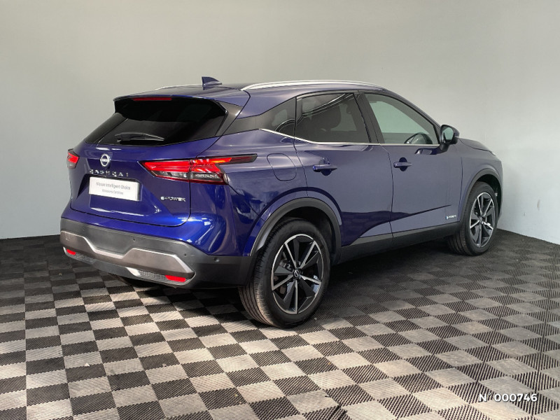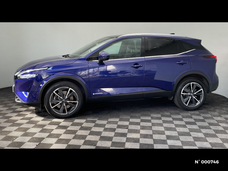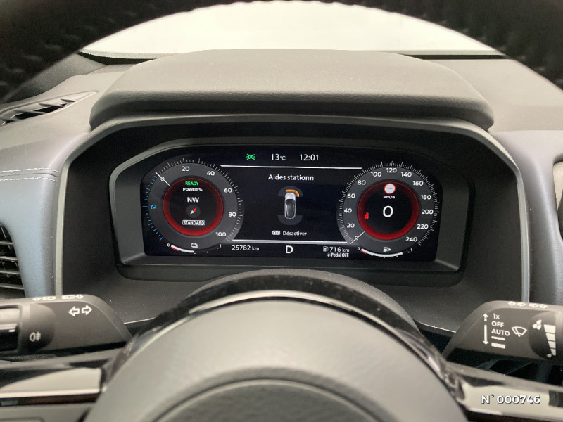 Double port USB AR (USB-A et USB-C) / Eclairage d'ambiance (contre-portes et console centrale) / Prise 12V dans le coffre / ProPILOT Park : technologie de stationnement automatique / Repose-genoux en TEP (Tissu Enduit) / Rétroviseur intérieur électrochromatique / Sélection du mode de conduite (ECO, STANDARD et SPORT) / Sellerie mixte TEP/Tissu Noir Bleuté ou Gris Clair / Siège conducteur avec réglage lombaire électrique 8 voies / Siège passager avec réglage lombaire manuel 2 voies / Système "Chassis Control" (contrôle actif de trajectoire et de l'assiette) / Système d'alerte anticollision AR intelligent avec détection des objets en mouvement / Système d'alerte prédictif anticollision frontale / Système d'ouverture et de démarrage sans clé "Intelligent key" / ABS et EBD / Accoudoir central AR avec porte-gobelets (2) / Alarme périmétrique / Antenne aileron de requin / Badges e-POWER / Buses de ventilation AR / Cache-bagages amovible / Chargeur à induction pour Smartphone 15W / Ciel de toit Noir / Clignotants AV et AR LED / Combiné d'instrumentation digital avec écran 12,3'' TFT / Commandes au volant: contrôle de l'ordinateur de bord, audio, téléphone, régulateur et limiteur de vitesse / Compartiment pour lunettes de soleil / Crochets d'arrimage (6) dans le coffre / Deuxième port USB AV (USB-A et USB-C) / Technologie e-Pedal Step / Trappe de carburant sans bouchon / Vitres électriques avec mode impulsionnel AV et AR et commande à distance / Volant et pommeau de levier de vitesses gainé cuir / Eclairage du coffre (x2) / Feu stop central LED / Feux de détresse à déclenchement automatique / Feux de route intelligents avec 12 fasceaux indépendants / Feux diurnes LED avec système Follow Me Home / Frein à main électrique avec aide au stationnement/démarrage et fonction Autohold / Freinage d'urgence anticollision AR / Freinage d'urgence intelligent avec détection piétons, cyclistes et intersections / Habillage console centrale et contre-portes en TEP / Hayon électrique avec ouverture mains libres / Insert de pare-chocs AR Gris satiné / Kit de réparation pneumatique / Liseuses AV et AR / NBAS (amplificateur de freinage d'urgence) / Nissan Connect Services / Ouverture des portières AR à 85° / Pack Navigation / Pack ProPilot / Pare-soleil côté conducteur et passager avec miroir de courtoisie éclairé / Peinture opaque monoton / Plancher de coffre modulable / Poignées de maintien AV et AR / Poignées de maintien pour passager AV et AR / Points d'ancrage pour sièges enfants ISOFIX à l'AR (x2) / Port USB AV (USB-A) / Porte-gobelets AV (x2)