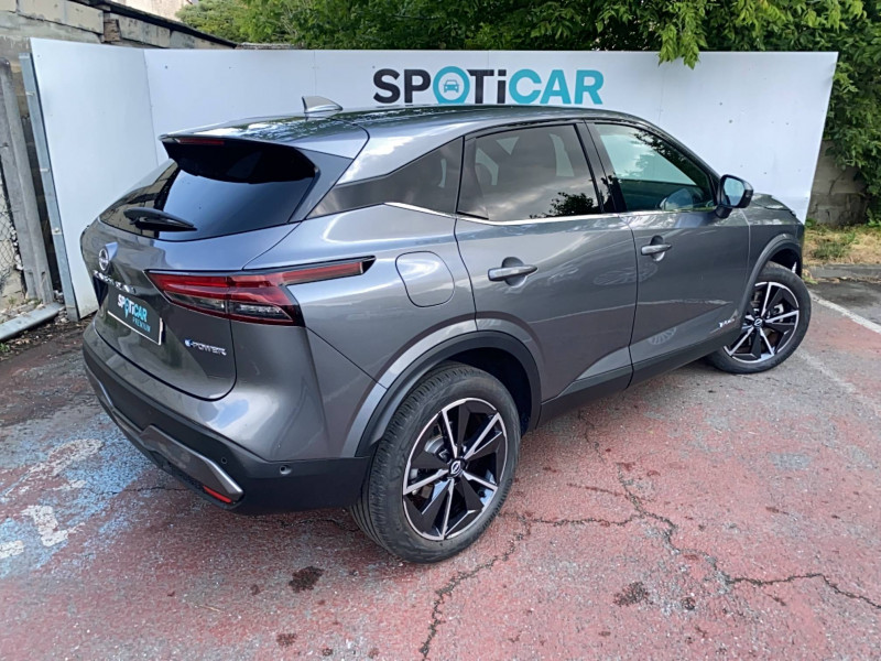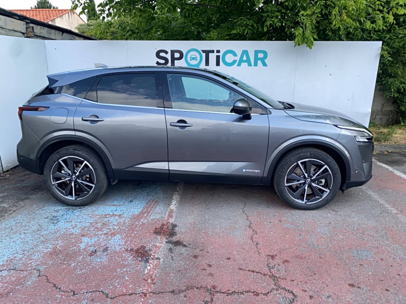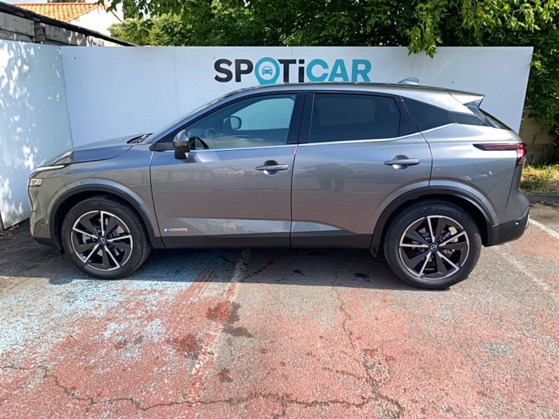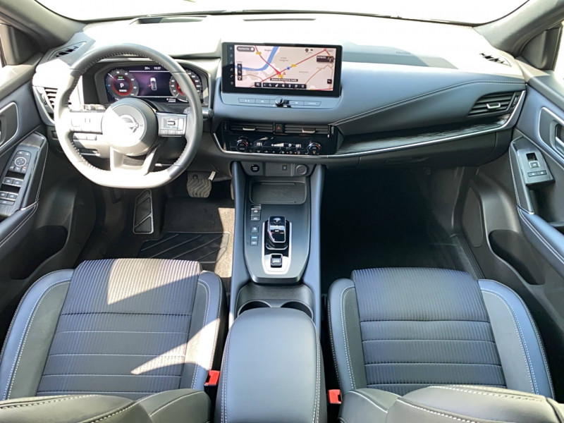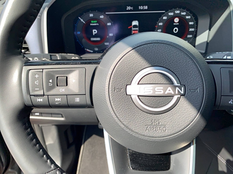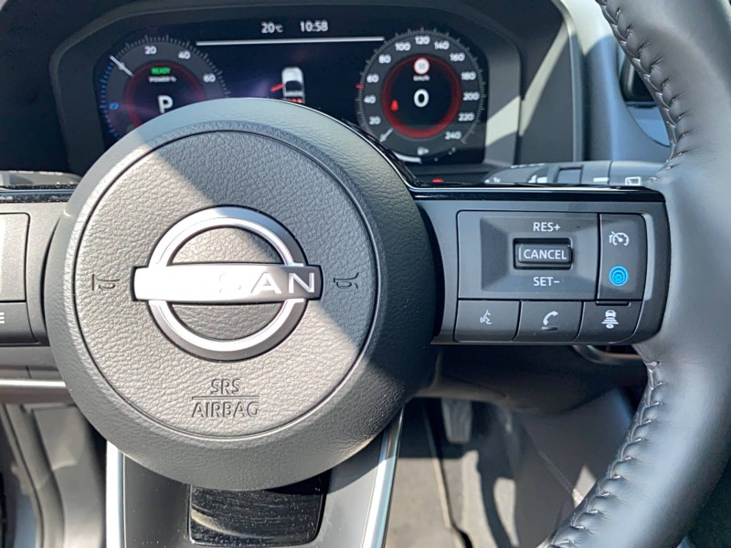 ABS et EBD / Accoudoir central AR avec porte-gobelets (2) / Alarme périmétrique / Antenne aileron de requin / Badges e-POWER / Buses de ventilation AR / Cache-bagages amovible / Chargeur à induction pour Smartphone 15W / Ciel de toit Noir / Clignotants AV et AR LED / Combiné d'instrumentation digital avec écran 12,3'' TFT / Commandes au volant: contrôle de l'ordinateur de bord, audio, téléphone, régulateur et limiteur de vitesse / Compartiment pour lunettes de soleil / Crochets d'arrimage (6) dans le coffre / Deuxième port USB AV (USB-A et USB-C) / Double port USB AR (USB-A et USB-C) / Eclairage d'ambiance (contre-portes et console centrale) / Eclairage du coffre (2x) / Feu stop central LED / Feux de détresse à déclenchement automatique / Feux de route intelligents avec 12 fasceaux indépendants / Freinage d'urgence anticollision AR / Freinage d'urgence intelligent avec détection piétons, cyclistes et intersections / Frein à main électrique avec aide au stationnement/démarrage et fonction Autohold / Habillage console centrale et contre-portes en TEP / Hayon électrique avec ouverture mains libres / Insert de pare-chocs AR Gris satiné / Kit de réparation pneumatique / Liseuses AV et AR / NBAS (amplificateur de freinage d'urgence) / Nissan Connect Services / Ouverture des portières AR à 85° / Pack Navigation / Pack ProPilot / Pare-soleil côté conducteur et passager avec miroir de courtoisie éclairé / Peinture opaque / Plancher de coffre modulable / Poignées de maintien pour passager AV et AR / Points d'ancrage pour sièges enfants ISOFIX à l'AR (x2) / Porte-gobelets AV (x2) / Port USB AV (USB-A) / Prise 12V dans le coffre / ProPILOT Park : technologie de stationnement automatique / Repose-genoux en TEP (Tissu Enduit) / Rétroviseur intérieur électrochromatique / Sélection du mode de conduite (ECO, STANDARD et SPORT) / Sellerie mixte TEP/Tissu Noir Bleuté ou Gris Clair / Siège conducteur avec réglage lombaire électrique 8 voies / Siège passager avec réglage lombaire manuel 2 voies / Système "Chassis Control" (contrôle actif de trajectoire et de l'assiette) / Système d'alerte anticollision AR intelligent avec détection des objets en mouvement / Système d'alerte prédictif anticollision frontale / Système d'ouverture et de démarrage sans clé "Intelligent key" / Technologie e-Pedal Step / Trappe de carburant sans bouchon