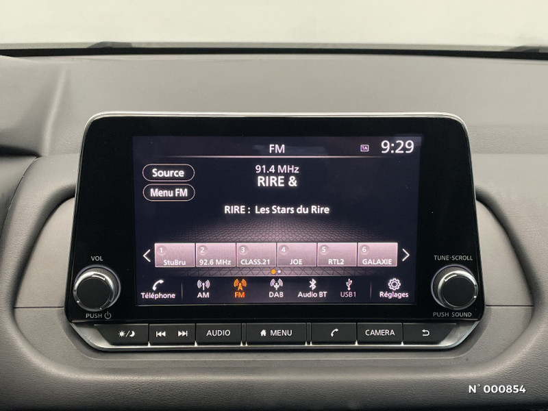 Feux de détresse à déclenchement automatique / Feux de route adaptatifs / Feux diurnes LED avec système Follow Me Home / Frein à main électrique avec aide au stationnement/démarrage et fonction Autohold / Freinage d'urgence anticollision AR / Freinage d'urgence intelligent avec détection piétons, cyclistes et intersections / Habillage console centrale et contre-portes en TEP / Kit de réparation pneumatique / Liseuses AV et AR / NBAS (amplificateur de freinage d'urgence) / Nissan Connect Services / Ouverture des portières AR à 85° / Pare-soleil côté conducteur et passager avec miroir de courtoisie éclairé / Poignées de maintien AV et AR / Poignées de maintien pour passager AV et AR / Points d'ancrage pour sièges enfants ISOFIX à l'AR (x2) / Pommeau de levier de vitesse gainé de cuir / Port USB AV (USB-A) / Porte-gobelets AV (x2) / Prise 12V dans le coffre / Système d'ouverture et de démarrage sans clé "Intelligent key" / Trappe de carburant sans bouchon / Vitres électriques avec mode impulsionnel AV et AR et commande à distance / Volant et pommeau de levier de vitesses gainé cuir / ABS et EBD / Accoudoir central AR avec porte-gobelets (2) / Alarme périmétrique / Antenne aileron de requin / Sélection du mode de conduite (ECO, STANDARD et SPORT) / Siège conducteur avec réglage lombaire électrique 2 voies / Siège conducteur avec réglage lombaire 2 voies / Système "Chassis Control" (contrôle actif de trajectoire et de l'assiette) / Système d'alerte anticollision AR intelligent avec détection des objets en mouvement / Système d'alerte prédictif anticollision frontale / Cache-bagages amovible / Chargeur à induction pour Smartphone 15W / Combiné d'instrumentation avec écran couleur TFT 7" / Commandes au volant: contrôle de l'ordinateur de bord, audio, téléphone, régulateur et limiteur de vitesse / Compartiment pour lunettes de soleil / Deuxième port USB AV (USB-A et USB-C) / Eclairage du coffre (x2) / Feu stop central LED
