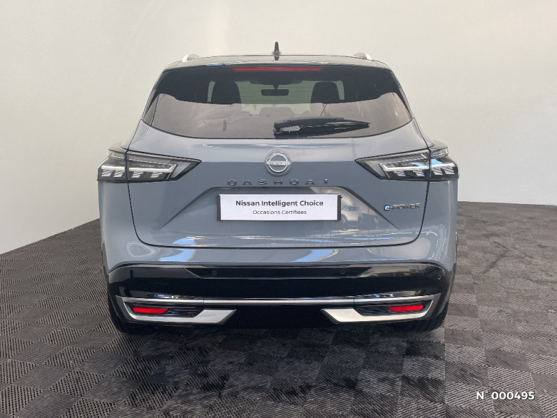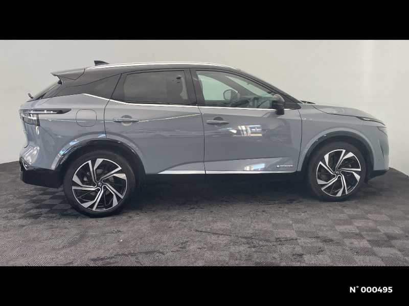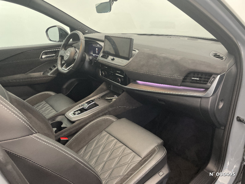 Alarme périmétrique / Alerte et prévention de sortie de voie / Antenne aileron de requin / Badges e-POWER / Baguettes satinées sur les portes / Sélection du mode de conduite (ECO, STANDARD et SPORT) / Sellerie Cuir matelassé Noir avec insert Alcantara / Siège conducteur avec fonction mémoire / Siège conducteur avec réglages électriques 8 voies / Siège passager avec réglage électrique / Siège passager avec réglage lombaire électrique 4 voies / Sièges AV avec fonction massage (3 modes) / Système audio Bose Premium avec 10 HP et un caisson de basses Acoustimass / Système "Chassis Control" (contrôle actif de trajectoire et de l'assiette) / Système d'alerte anticollision AR intelligent / Système d'alerte prédictif anticollision frontale / Système de navigation NissanConnect avec services Google intégrés Google Maps, Google Assistant, Google Play Store, Live Traffic et cartes 3D, Navigation porte-à-porte, Recherche par Points d'Intérêt, Google Street View, Vue Satellite et Météo, Mise à jour des cartes et logiciels, Prix des carburants / Système d'ouverture et de démarrage sans clé "Intelligent key" avec fonction de verrouillage/ déverrouillage à l'approche du véhicule / Technologie e-Pedal Step / Trappe de carburant sans bouchon / 6 crochets de fixation dans le coffre (4 au plancher, 2 sur les côtés) / Clignotants AV et AR à défilement / Clignotants AV et AR LED / Combiné d'instrumentation digital 12,3'' / Commandes au volant: contrôle de l'ordinateur de bord, audio, téléphone, régulateur et limiteur de vitesse / ABS (système antiblocage des freins) / Accoudoir central AR avec porte-gobelets (2) / Compartiment pour lunettes de soleil (non disponible avec toit panoramique en verre) / Contre-portes et console centrale en TEP / Contrôle de traction électronique / Boîte de vitesses automatique 1 rapports / Bouton d'accès rapide aux réglages des aides à la conduite / Buses de ventilation AR / Cache-bagages amovible / Chargeur à induction pour Smartphone 15W / Ciel de toit Noir / Double port USB AR (USB-A et USB-C) / Double port USB AV et AR (USB-C) / Eclairage d'ambiance personnalisable (11 points lumineux) / Eclairage du coffre (x2) / Feu stop central LED / Feux AR "Super-RED" / Feux de détresse à déclenchement automatique / Feux de route adaptatifs / Feux de route intelligents avec 12 fasceaux indépendants / Frein à main électrique avec aide au stationnement/démarrage et fonction Autohold / Freinage d'urgence anticollision AR / Freinage d'urgence intelligent avec détection piétons, cyclistes et intersections / Hayon électrique avec ouverture mains libres / Inserts de pare-chocs AV et AR Gris satiné / Jantes alliage 20" avec suspension AR multibras / Kit de réparation pneumatique / Liseuses LED à l'AV et à l'AR / Mémorisation des réglages via l'Intelligent Key (siège conducteur et rétroviseurs extérieurs) / NBAS (amplificateur de freinage d'urgence) / Nissan AVM 3D - Vision Intelligente à 360° : système d'aide au stationnement qui facilite les manoeuvres de stationnement en vous offrant une vision à 360° : Caméra AR avec repères de gabarit, Caméra AV, Caméras latérales situées dans les rétroviseurs extérieurs, Radars 360°, Fonction ''capot transparent'', Mémorisation stationnement régulier et intersections / NissanConnect Services - Services télématiques avec accès à distance depuis un smartphone Service de commandes à distance, Géolocalisation du véhicule, Historique de conduite et de navigation, Rapports sur l'état de santé du véhicule et alertes de dysfonctionnement, Rappel des pas d'entretien, Aide et assistance Nissan, Point d'accès Wi-Fi, Alertes intelligentes, Compatibilité Amazon Alexa / Ouverture des portières AR à 85° / Pack Hiver - Sièges AV chauffants - Volant chauffant - Pare-brise chauffant / Pare-chocs AV et AR Noir brillant / Pare-soleil côté conducteur et passager avec miroir de courtoisie éclairé / Peinture bi-ton / Plancher de coffre modulable / Poignées de maintien pour passager AV et AR / Points d'ancrage pour sièges enfants ISOFIX à l'AR (x2) / Porte-gobelets (x2) / Prise 12V à l'AV (x1) et dans le coffre (x1) / ProPILOT avec Navi-link : technologie de conduite assistée Aide au maintien dans la voie, Freinage anticipé dans les courbes via la navigation, Assistant de conduite en embouteillage, Ajustement aux limitations de vitesse (automatique ou sur commande) / ProPILOT Park : technologie de stationnement automatique / Rails de toit longitudinaux chromés / Régulateur de vitesse intelligent avec ajustement aux limitations de vitesse sur commande / Repose-genoux en Alcantara / Rétroviseur intérieur électrochromatique sans contour / Rétroviseurs extérieurs avec fonction mémoire et fonction marche AR / Affichage tête haute avec projection sur le pare-brise 10,8"