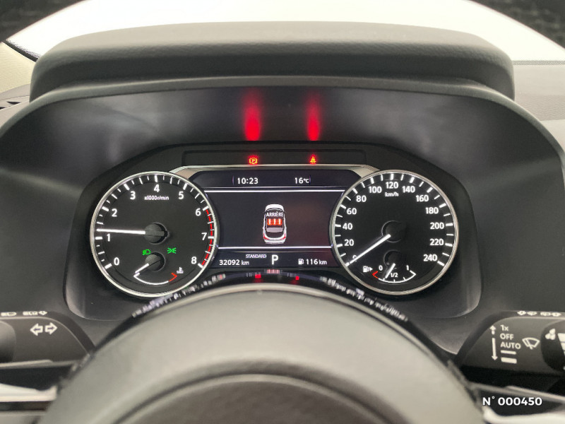 Système "Chassis Control" (contrôle actif de trajectoire et de l'assiette) / Système d'alerte anticollision AR intelligent avec détection des objets en mouvement / Système d'alerte prédictif anticollision frontale / Système d'ouverture et de démarrage sans clé "Intelligent key" / Trappe de carburant sans bouchon / Vitres électriques avec mode impulsionnel AV et AR et commande à distance / Volant et pommeau de levier de vitesses gainé cuir / ABS et EBD / Accoudoir central AR avec porte-gobelets (2) / Alarme périmétrique / Antenne aileron de requin / Cache-bagages amovible / Chargeur à induction pour Smartphone 15W / Combiné d'instrumentation avec écran couleur TFT 7" / Commandes au volant: contrôle de l'ordinateur de bord, audio, téléphone, régulateur et limiteur de vitesse / Compartiment pour lunettes de soleil / Deuxième port USB AV (USB-A et USB-C) / Eclairage du coffre (x2) / Feu stop central LED / Feux de détresse à déclenchement automatique / Feux de route adaptatifs / Feux diurnes LED avec système Follow Me Home / Frein à main électrique avec aide au stationnement/démarrage et fonction Autohold / Freinage d'urgence anticollision AR / Freinage d'urgence intelligent avec détection piétons, cyclistes et intersections / Habillage console centrale et contre-portes en TEP / Kit de réparation pneumatique / Liseuses AV et AR / NBAS (amplificateur de freinage d'urgence) / Nissan Connect Services / Ouverture des portières AR à 85° / Pare-soleil côté conducteur et passager avec miroir de courtoisie éclairé / Poignées de maintien AV et AR / Poignées de maintien pour passager AV et AR / Points d'ancrage pour sièges enfants ISOFIX à l'AR (x2) / Pommeau de levier de vitesse gainé de cuir / Port USB AV (USB-A) / Porte-gobelets AV (x2) / Prise 12V dans le coffre / Sélection du mode de conduite (ECO, STANDARD et SPORT) / Siège conducteur avec réglage lombaire électrique 2 voies / Siège conducteur avec réglage lombaire 2 voies