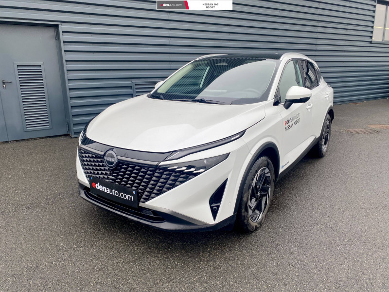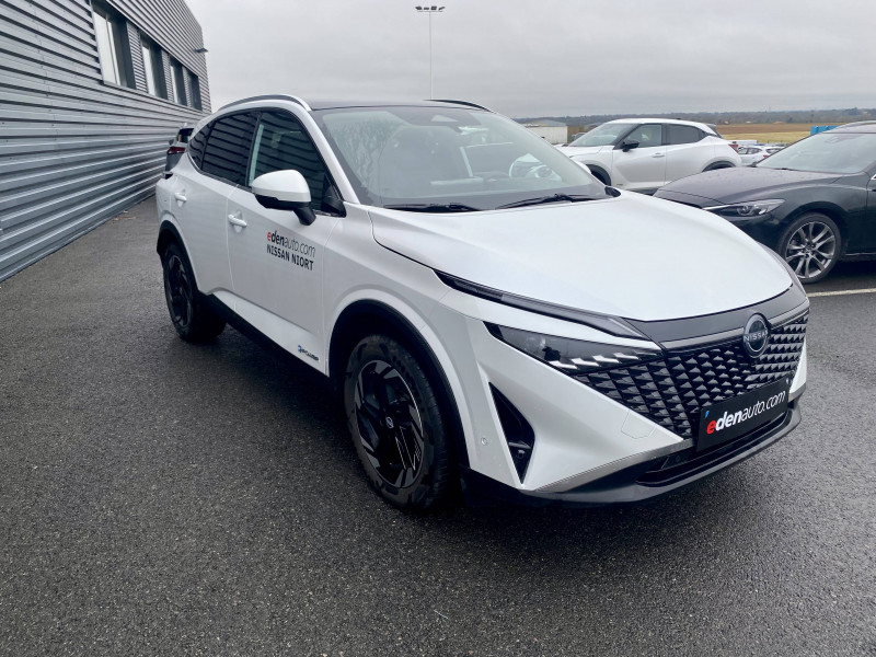 6 crochets de fixation dans le coffre (4 au plancher, 2 sur les côtés) / ABS (système antiblocage des freins) / Accoudoir central AR avec porte-gobelets (2) / Alarme périmétrique / Alerte et prévention de sortie de voie / Antenne aileron de requin / Badges e-POWER / Boîte de vitesses automatique 1 rapports / Bouton d'accès rapide aux réglages des aides à la conduite / Buses de ventilation AR / Cache-bagages amovible / Chargeur à induction pour Smartphone 15W / Ciel de toit Gris clair / Clignotants AV et AR LED / Combiné d'instrumentation digital 12,3'' / Commandes au volant: contrôle de l'ordinateur de bord, audio, téléphone, régulateur et limiteur de vitesse / Compartiment pour lunettes de soleil (non disponible avec toit panoramique en verre) / Contre-portes et console centrale en TEP / Contrôle de traction électronique / Double port USB AR (USB-A et USB-C) / Double port USB AV et AR (USB-C) / Eclairage d'ambiance personnalisable (7 points lumineux) / Eclairage du coffre (x2) / Feu stop central LED / Feux de détresse à déclenchement automatique / Feux de route adaptatifs / Freinage d'urgence anticollision AR / Freinage d'urgence intelligent avec détection piétons, cyclistes et intersections / Frein à main électrique avec aide au stationnement/démarrage et fonction Autohold / Inserts de pare-chocs AV et AR Gris satiné / Kit de réparation pneumatique / Liseuses LED à l'AV et à l'AR / NBAS (amplificateur de freinage d'urgence) / Nissan AVM 3D - Vision Intelligente à 360° : système d'aide au stationnement qui facilite les manoeuvres de stationnement en vous offrant une vision à 360° : Caméra AR avec repères de gabarit, Caméra AV, Caméras latérales situées dans les rétroviseurs extérieurs, Radars 360°, Fonction ''capot transparent'', Mémorisation stationnement régulier et intersections / NissanConnect Services - Services télématiques avec accès à distance depuis un smartphone Service de commandes à distance, Géolocalisation du véhicule, Historique de conduite et de navigation, Rapports sur l'état de santé du véhicule et alertes de dysfonctionnement, Rappel des pas d'entretien, Aide et assistance Nissan, Point d'accès Wi-Fi, Alertes intelligentes, Compatibilité Amazon Alexa / Ouverture des portières AR à 85° / Pare-chocs AV et AR Noir mat / Pare-soleil côté conducteur et passager avec miroir de courtoisie éclairé / Plancher de coffre modulable / Poignées de maintien pour passager AV et AR / Points d'ancrage pour sièges enfants ISOFIX à l'AR (x2) / Porte-gobelets (x2) / Prise 12V à l'AV (x1) et dans le coffre (x1) / ProPILOT avec Navi-link : technologie de conduite assistée Aide au maintien dans la voie, Freinage anticipé dans les courbes via la navigation, Assistant de conduite en embouteillage, Ajustement aux limitations de vitesse (automatique ou sur commande) / Rails de toit longitudinaux chromés / Régulateur de vitesse intelligent avec ajustement aux limitations de vitesse sur commande / Repose-genoux en TEP / Rétroviseur intérieur électrochromatique sans contour / Sélection du mode de conduite (ECO, STANDARD et SPORT) / Sellerie mixte TEP/Tissu (Noir) / Siège conducteur avec réglage lombaire électrique 2 voies / Système audio radio avec écran tactile 12,3" et 6 HP / Système "Chassis Control" (contrôle actif de trajectoire et de l'assiette) / Système d'alerte anticollision AR intelligent / Système d'alerte prédictif anticollision frontale / Système de navigation NissanConnect avec services Google intégrés Google Maps, Google Assistant, Google Play Store, Live Traffic et cartes 3D, Navigation porte-à-porte, Recherche par Points d'Intérêt, Google Street View, Vue Satellite et Météo, Mise à jour des cartes et logiciels, Prix des carburants / Système d'ouverture et de démarrage sans clé "Intelligent key" avec fonction de verrouillage/ déverrouillage à l'approche du véhicule / Technologie e-Pedal Step / Trappe de carburant sans bouchon