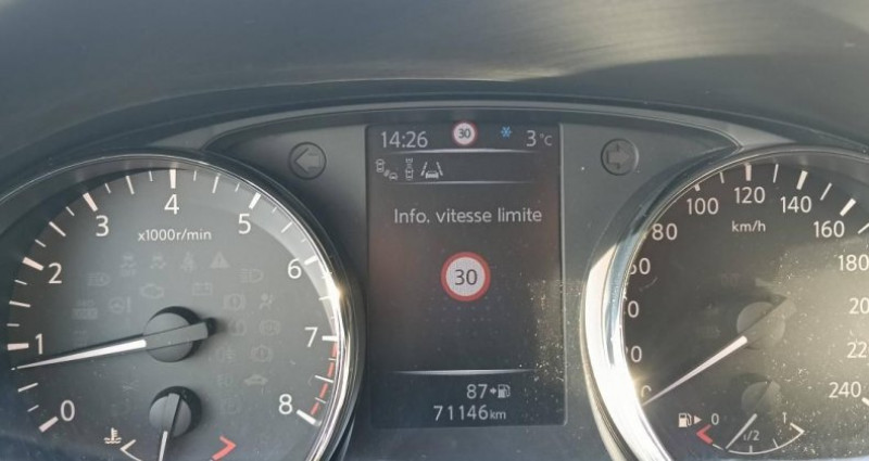 Nissan Qashqai II (J11) 1.2L DIG-T 115ch Tekna, gris f, 6 cv, 5 portes, première mise en circulation le 31/03/2015, garantie 12 mois. poids en charge : 1275 kg, contrôle technique : OK OPTIONS ET ÉQUIPEMENTS : Audio - Télécommunications : - 6 haut parleurs - Services connectés - Tmc - Bluetooth - CD - GPS - Prise audio usb - Radio - auto-radio commandé au volant - ecran tactile Conduite : - Capteur de luminosité - Indicateur de limitation de vitesse - Système d'accès sans clé - Système d'assistance au stationnement - Stop & Start - démarrage sans clé - détecteur de pluie - limiteur de vitesse - régulateur de vitesse Extérieur : - Becquet arrière - Boucliers av et ar couleur caisse - Caméra vue panoramique 360° - Ceinture de vitrage chromée - Lave phares - Phares avant led - Poignées ton carrosserie - Répétiteurs de clignotant dans rétro ext - Rétroviseurs rabattables électriquement - Système d'éclairage intelligent - Système de mesure de place disponible - Vitres arrière et lunette ar surteintées - barres de toit - caméra de recul - essuie-glace arrière - jantes : aluminium - radar arrière de détection d'obstacles - radar d'aide au stationnement - rétroviseurs dégivrants - rétroviseurs rabattables - rétroviseurs électriques Intérieur : - Banquette 60/40 - Banquette arrière 3 places - Boite à gant fermée - Eclairage d'ambiance - Lunette arrière - Miroir de courtoisie conducteur éclairé - Miroir de courtoisie passager éclairé - Ouverture des vitres séquentielle - Pare brise chauffant - Pommeau de levier vitesse en cuir - Porte gobelets avant - Siège conducteur avec réglable lombaire - Siège conducteur chauffant - Siège conducteur électrique - Siège passager avec réglage lombaire - Siège passager chauffant - Verrouillage centralisé des portes - Cache bagages - Vitres arrières électriques - accoudoir central - accoudoir central arrière - climatisation : automatique - compte tours - fermeture centralisée - lampe de coffre - ordinateur de bord - réglages du volant : profondeur - rétroviseur interieur electrochrome - sieges reglables en hauteur - siège conducteur réglable en hauteur - verrouillage à distance - vitres avant éléctriques - vitres surteintées - volant cuir Pack : - Sieges arrières rabattable - anti démarrage - lunette arrière dégivrante - nombre de rapports : 6 vitesses - siège passager réglable - volant multifonctions - volant réglable - Écran multifonction Sellerie : - Sellerie cuir - Sellerie cuir noir Sécurité : - Ceintures avant ajustables en hauteur - Contrôle optimal du roulis - Contrôle élect. de la pression des pneus - Dispositif freinage automatique - Freinage automatique d'urgence - Préparation isofix - Reconnaissance panneaux de signalisation - Système avancé de détection d'obstacles - Système de contrôle des angles morts - Système de détection de somnolence - Système de prévention des collisions - ABS - Aide au demarrage en pente - Airbags rideaux - Airbags rideaux avant - ESP - aide au freinage d'urgence - airbag conducteur - airbag coté passager - airbags latéraux - alerte de franchissement involontaire de lignes - anti-patinage - fixations ISOFIX - phares antibrouillard - radar avant de détection d'obstacles - répartiteur électronique de freinage - troisième ceinture de sécurité Autres équipements et informations : - Classe Crit'air : 1 - MP3 - Puissance kilowatt : 85 kw - USB - feux de circulation diurne - puissance réelle : 116 ch - émission CO2 : 129 g/km Référence annonce : 1071