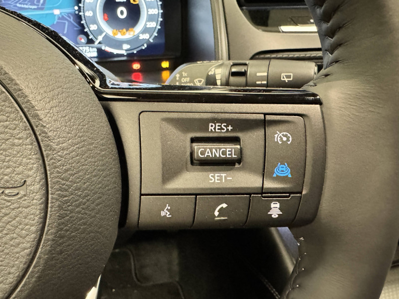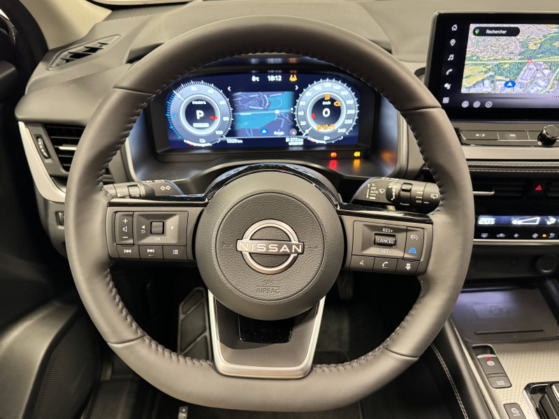 6 crochets de fixation dans le coffre (4 au plancher, 2 sur les côtés) / ABS (système antiblocage des freins) / Accoudoir central AR avec porte-gobelets (2) / Alarme périmétrique / Alerte et prévention de sortie de voie / Antenne aileron de requin Noir / Badges e-POWER / Boîte de vitesses automatique 1 rapports / Bouton d'accès rapide aux réglages des aides à la conduite / Buses de ventilation AR / Cache-bagages amovible / Chargeur à induction pour Smartphone 15W / Ciel de toit Gris clair / Clignotants AV et AR LED / Combiné d'instrumentation digital 12,3'' / Commandes au volant: contrôle de l'ordinateur de bord, audio, téléphone, régulateur et limiteur de vitesse / Compartiment pour lunettes de soleil / Contre-portes et console centrale en TEP / Contrôle de la traction (TCS) / Double port USB AR (USB-A et USB-C) / Double port USB AV et AR (USB-C) / Eclairage d'ambiance personnalisable / Eclairage du coffre (x2) / Feu stop central LED / Feux de détresse à déclenchement automatique / Feux de route adaptatifs / Freinage d'urgence anticollision AR / Freinage d'urgence intelligent avec détection piétons, cyclistes et intersections / Frein à main électrique avec aide au stationnement/démarrage et fonction Autohold / Garantie anticorrosion - perforation 12 ans, kilométrage illimité / Garantie Nissan Privilège Jusqu'à 8 ans de Garantie (moteur, boîte, pont) + Jusqu'à 8 ans d'Assistance 24h/24, 7j/7. Jusqu'à 8 ans ou 160 000 km, conditionnéà entretien annuel dans le réseau Nissan / Garantie peinture 3 ans, kilométrage illimité / Garantie sur tous les composants spécifiques Hybrid, e-POWER 5 ans (limitée à 100 000 km) Liste non exhaustive des composants inclus : batterie lithium-ion, moteur électrique, onduleur, générateur, système de refroidissement de la batterie, etc... / Garantie véhicule neuf 3 ans (limitée à 100 000 km) / Inserts de pare-chocs AV et AR Gris satiné / Kit de réparation pneumatique / Liseuses LED à l'AV et à l'AR / NBAS (amplificateur de freinage d'urgence) / Nissan AVM 3D - Vision Intelligente à 360° : système d'aide au stationnement qui facilite les manoeuvres de stationnement en vous offrant une vision à 360° : Caméra AR avec repères de gabarit, Caméra AV, Caméras latérales situées dans les rétroviseurs extérieurs, Radars 360°, Fonction ''capot transparent'', Mémorisation stationnement régulier et intersections / NissanConnect Services - Services télématiques avec accès à distance depuis un smartphone - Géolocalisation du véhicule - Historique de navigation - Point d'accès WiFi / NissanConnect Services - Services télématiques avec accès à distance depuis un smartphone Services de commandes à distance - Historique de conduite - Mise à jour à distance - Rapports sur l'état de santé du véhicule et alertes de dysfonctionnement - Rappels des pas d'entretien - Aide et assistance Nissan - Alertes intelligentes / Ouverture des portières AR à 85° / Pare-chocs AV et AR Noir mat / Pare-soleil côté conducteur et passager avec miroir de courtoisie éclairé / Planche de bord en TEP / Plancher de coffre modulable / Poignées de maintien pour passager AV et AR / Points d'ancrage pour sièges enfants ISOFIX à l'AR (x2) / Porte-gobelets (x2) / Prise 12V à l'AV (x1) et dans le coffre (x1) / ProPILOT avec Navi-link : technologie de conduite assistée Aide au maintien dans la voie, Freinage anticipé dans les courbes via la navigation, Assistant de conduite en embouteillage, Ajustement aux limitations de vitesse (automatique ou sur commande) / ProPILOT Park : technologie de stationnement automatique / Rails de toit longitudinaux chromés / Régulateur de vitesse intelligent avec ajustement aux limitations de vitesse sur commande / Repose-genoux en TEP / Rétroviseur intérieur électrochromatique sans contour / Sélection du mode de conduite (ECO, STANDARD et SPORT) / Sellerie mixte TEP/Tissu (Noir) / Siège conducteur avec réglage lombaire électrique 2 voies / Système audio radio avec écran tactile 12,3" et 6 HP / Système "Chassis Control" (contrôle actif de trajectoire et de l'assiette) / Système d'alerte anticollision AR intelligent / Système d'alerte prédictif anticollision frontale / Système de navigation NissanConnect avec services Google intégrés Google Maps, Google Assistant, Google Play Store, Live Traffic et cartes 3D, Navigation porte-à-porte, Recherche par Points d'Intérêt, Google Street View, Vue Satellite et Météo, Mise à jour des cartes et logiciels, Prix des carburants / Système d'ouverture et de démarrage sans clé "Intelligent key" avec fonction de verrouillage/ déverrouillage à l'approche du véhicule / Technologie e-Pedal Step / Trappe de carburant sans bouchon