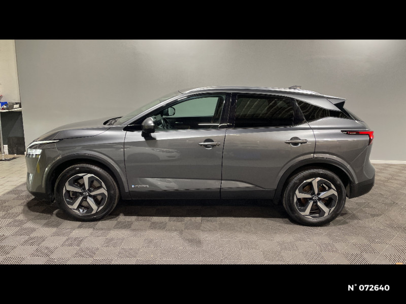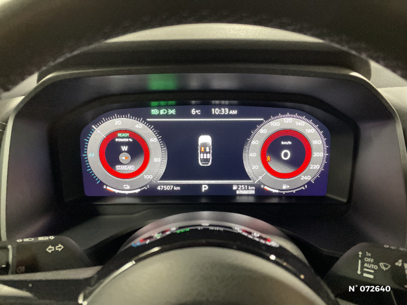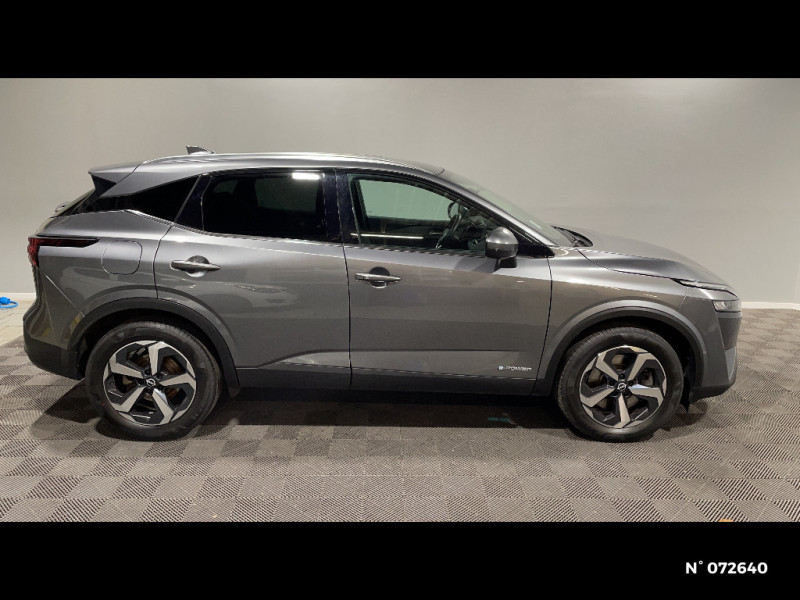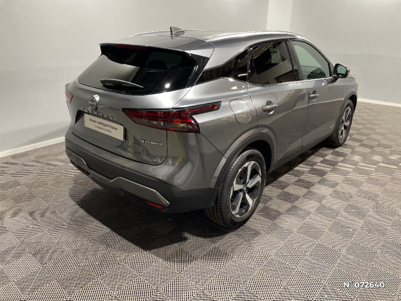 Buses de ventilation AR / Cache-bagages amovible / Chargeur à induction pour Smartphone 15W / Combiné d'instrumentation digital avec écran 12,3'' TFT / Commandes au volant: contrôle de l'ordinateur de bord, audio, téléphone, régulateur et limiteur de vitesse / Compartiment pour lunettes de soleil / Crochets d'arrimage (6) dans le coffre / Deuxième port USB AV (USB-A et USB-C) / Double port USB AR (USB-A et USB-C) / Eclairage d'ambiance (console centrale) / Eclairage d'ambiance linéaire / Eclairage du coffre (x2) / Feu stop central LED / ABS et EBD / Accoudoir central AR avec porte-gobelets (2) / Alarme périmétrique / Antenne aileron de requin / Badges e-POWER / Système "Chassis Control" (contrôle actif de trajectoire et de l'assiette) / Système d'alerte anticollision AR intelligent avec détection des objets en mouvement / Système d'alerte prédictif anticollision frontale / Système d'ouverture et de démarrage sans clé "Intelligent key" / Technologie e-Pedal Step / Trappe de carburant sans bouchon / Vitres électriques avec mode impulsionnel AV et AR et commande à distance / Volant et pommeau de levier de vitesses gainé cuir / Feux de route adaptatifs / Feux diurnes LED avec système Follow Me Home / Frein à main électrique avec aide au stationnement/démarrage et fonction Autohold / Freinage d'urgence anticollision AR / Freinage d'urgence intelligent avec détection piétons, cyclistes et intersections / Habillage console centrale et contre-portes en TEP / Insert de pare-chocs AR Gris satiné / Kit de réparation pneumatique / Liseuses AV et AR / NBAS (amplificateur de freinage d'urgence) / Nissan Connect Services / Ouverture des portières AR à 85° / Pack Navigation / Pare-soleil côté conducteur et passager avec miroir de courtoisie éclairé / Peinture opaque monoton / Plancher de coffre modulable / Poignées de maintien AV et AR / Poignées de maintien pour passager AV et AR / Points d'ancrage pour sièges enfants ISOFIX à l'AR (x2) / Port USB AV (USB-A) / Porte-gobelets AV (x2) / Prise 12V dans le coffre / Repose-genoux en TEP (Tissu Enduit) / Rétroviseur intérieur électrochromatique / Sélection du mode de conduite (ECO, STANDARD et SPORT) / Sellerie Tissu Noir et Gris / Siège conducteur avec réglage lombaire électrique 2 voies / Siège conducteur avec réglage lombaire 2 voies / Feux de détresse à déclenchement automatique