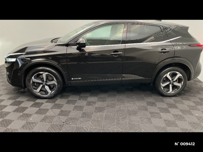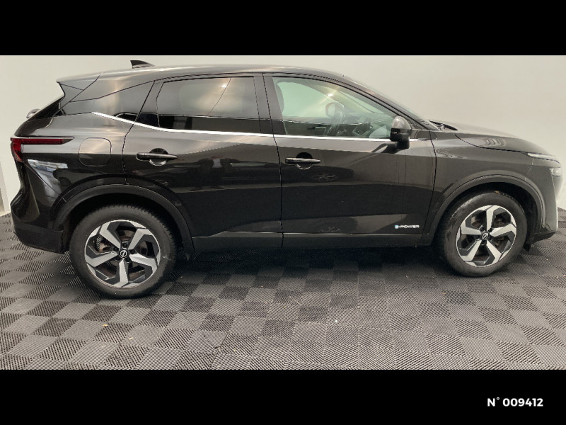 Antenne aileron de requin / Badges e-POWER / Buses de ventilation AR / Chargeur à induction pour Smartphone 15W / Combiné d'instrumentation digital avec écran 12,3'' TFT / Commandes au volant: contrôle de l'ordinateur de bord, audio, téléphone, régulateur et limiteur de vitesse / Compartiment pour lunettes de soleil / Crochets d'arrimage (6) dans le coffre / Deuxième port USB AV (USB-A et USB-C) / Double port USB AR (USB-A et USB-C) / Eclairage d'ambiance (console centrale) / Eclairage d'ambiance linéaire / Eclairage du coffre (x2) / Feu stop central LED / Feux de détresse à déclenchement automatique / Feux de route adaptatifs / Feux diurnes LED avec système Follow Me Home / Frein à main électrique avec aide au stationnement/démarrage et fonction Autohold / Freinage d'urgence anticollision AR / Freinage d'urgence intelligent avec détection piétons, cyclistes et intersections / Habillage console centrale et contre-portes en TEP / Insert de pare-chocs AR Gris satiné / Kit de réparation pneumatique / Liseuses AV et AR / NBAS (amplificateur de freinage d'urgence) / Nissan Connect Services / Ouverture des portières AR à 85° / Pack Navigation / Pare-soleil côté conducteur et passager avec miroir de courtoisie éclairé / Peinture opaque monoton / Plancher de coffre modulable / Poignées de maintien AV et AR / Poignées de maintien pour passager AV et AR / Points d'ancrage pour sièges enfants ISOFIX à l'AR (x2) / Port USB AV (USB-A) / Porte-gobelets AV (x2) / Prise 12V dans le coffre / Repose-genoux en TEP (Tissu Enduit) / Rétroviseur intérieur électrochromatique / Sélection du mode de conduite (ECO, STANDARD et SPORT) / Sellerie Tissu Noir et Gris / Siège conducteur avec réglage lombaire électrique 2 voies / Cache-bagages amovible / Siège conducteur avec réglage lombaire 2 voies / Système "Chassis Control" (contrôle actif de trajectoire et de l'assiette) / Système d'alerte anticollision AR intelligent avec détection des objets en mouvement / Système d'alerte prédictif anticollision frontale / Système d'ouverture et de démarrage sans clé "Intelligent key" / Technologie e-Pedal Step / Trappe de carburant sans bouchon / Vitres électriques avec mode impulsionnel AV et AR et commande à distance / Volant et pommeau de levier de vitesses gainé cuir / ABS et EBD / Accoudoir central AR avec porte-gobelets (2) / Alarme périmétrique