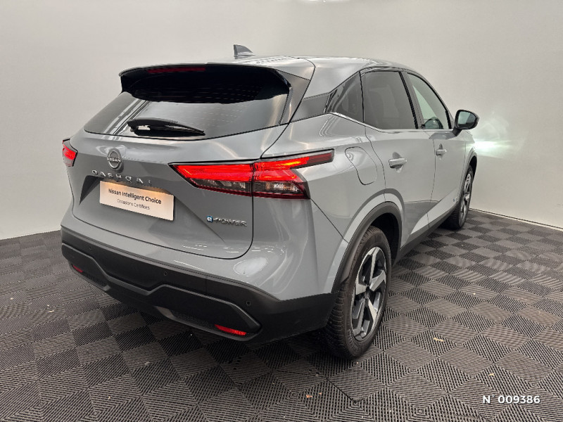Système d'ouverture et de démarrage sans clé "Intelligent key" / Technologie e-Pedal Step / Trappe de carburant sans bouchon / Vitres électriques avec mode impulsionnel AV et AR et commande à distance / Volant et pommeau de levier de vitesses gainé cuir / Port USB AV (USB-A) / Porte-gobelets AV (x2) / Sélection du mode de conduite (ECO, STANDARD et SPORT) / Siège conducteur avec réglage lombaire électrique 2 voies / Siège conducteur avec réglage lombaire 2 voies / Système "Chassis Control" (contrôle actif de trajectoire et de l'assiette) / Alarme périmétrique / Antenne aileron de requin / Liseuses AV et AR / NBAS (amplificateur de freinage d'urgence) / Nissan Connect Services / Ouverture des portières AR à 85° / Pare-soleil côté conducteur et passager avec miroir de courtoisie éclairé / Poignées de maintien AV et AR / Poignées de maintien pour passager AV et AR / Points d'ancrage pour sièges enfants ISOFIX à l'AR (x2) / Prise 12V dans le coffre / ABS et EBD / Accoudoir central AR avec porte-gobelets (2) / Système d'alerte anticollision AR intelligent avec détection des objets en mouvement / Système d'alerte prédictif anticollision frontale / Badges e-POWER / Cache-bagages amovible / Chargeur à induction pour Smartphone 15W / Combiné d'instrumentation avec écran couleur TFT 7" / Commandes au volant: contrôle de l'ordinateur de bord, audio, téléphone, régulateur et limiteur de vitesse / Compartiment pour lunettes de soleil / Deuxième port USB AV (USB-A et USB-C) / Eclairage du coffre (x2) / Feu stop central LED / Feux de détresse à déclenchement automatique / Feux de route adaptatifs / Feux diurnes LED avec système Follow Me Home / Frein à main électrique avec aide au stationnement/démarrage et fonction Autohold / Freinage d'urgence anticollision AR / Freinage d'urgence intelligent avec détection piétons, cyclistes et intersections / Habillage console centrale et contre-portes en TEP