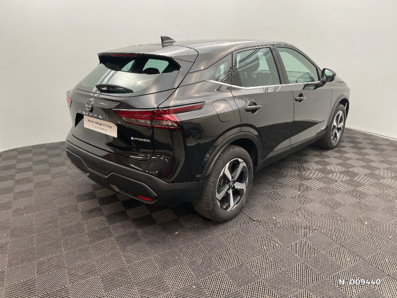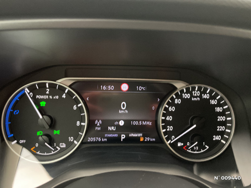 Système "Chassis Control" (contrôle actif de trajectoire et de l'assiette) / Cache-bagages amovible / Chargeur à induction pour Smartphone 15W / Accoudoir central AR avec porte-gobelets (2) / Alarme périmétrique / Antenne aileron de requin / Badges e-POWER / ABS et EBD / Combiné d'instrumentation avec écran couleur TFT 7" / Feu stop central LED / Système d'alerte anticollision AR intelligent avec détection des objets en mouvement / Système d'alerte prédictif anticollision frontale / Système d'ouverture et de démarrage sans clé "Intelligent key" / Technologie e-Pedal Step / Trappe de carburant sans bouchon / Vitres électriques avec mode impulsionnel AV et AR et commande à distance / Volant et pommeau de levier de vitesses gainé cuir / Commandes au volant: contrôle de l'ordinateur de bord, audio, téléphone, régulateur et limiteur de vitesse / Compartiment pour lunettes de soleil / Deuxième port USB AV (USB-A et USB-C) / Eclairage du coffre (x2) / Feux de détresse à déclenchement automatique / Feux de route adaptatifs / Feux diurnes LED avec système Follow Me Home / Frein à main électrique avec aide au stationnement/démarrage et fonction Autohold / Freinage d'urgence anticollision AR / Freinage d'urgence intelligent avec détection piétons, cyclistes et intersections / Habillage console centrale et contre-portes en TEP / Liseuses AV et AR / NBAS (amplificateur de freinage d'urgence) / Nissan Connect Services / Ouverture des portières AR à 85° / Pare-soleil côté conducteur et passager avec miroir de courtoisie éclairé / Poignées de maintien AV et AR / Poignées de maintien pour passager AV et AR / Points d'ancrage pour sièges enfants ISOFIX à l'AR (x2) / Port USB AV (USB-A) / Porte-gobelets AV (x2) / Prise 12V dans le coffre / Sélection du mode de conduite (ECO, STANDARD et SPORT) / Siège conducteur avec réglage lombaire électrique 2 voies / Siège conducteur avec réglage lombaire 2 voies
