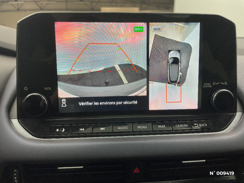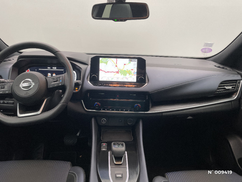 Alarme périmétrique / Antenne aileron de requin / Kit de réparation pneumatique / Liseuses AV et AR / NBAS (amplificateur de freinage d'urgence) / Nissan AVM - Vision Intelligente à 360° / Nissan Connect Services / Pack Navigation / Pack ProPilot / Pare-soleil côté conducteur et passager avec miroir de courtoisie éclairé / Peinture opaque monoton / Plancher de coffre modulable / Poignées de maintien AV et AR / Points d'ancrage pour sièges enfants ISOFIX à l'AR (x2) / Port USB AV (USB-A) / Porte-gobelets (x2) / Prise 12V dans le coffre / Cache-bagages amovible / ABS et EBD / Repose-genoux en TEP (Tissu Enduit) / Rétroviseur intérieur électrochromatique / Sélection du mode de conduite (ECO, STANDARD et SPORT) / Sellerie mixte TEP/Tissu Noir Bleuté ou Gris Clair / Siège conducteur avec réglage lombaire électrique 8 voies / Siège passager avec réglage lombaire électrique 2 voies / Système "Chassis Control" (contrôle actif de trajectoire et de l'assiette) / Système d'alerte anticollision AR intelligent avec détection des objets en mouvement / Système d'alerte prédictif anticollision frontale / Système de navigation NissanConnect avec écran tactile 9" / Système d'ouverture et de démarrage sans clé "Intelligent key" / Trappe de carburant sans bouchon / Vitres électriques avec mode impulsionnel AV et AR et commande à distance / Volant et pommeau de levier de vitesses gainé cuir / Habillage console centrale et contre-portes en TEP / Hayon électrique avec ouverture mains libres / Insert de pare-chocs AR couleur Argent / Chargeur à induction pour Smartphone 15W / Ciel de toit Noir / Combiné d'instrumentation digital avec écran 12,3'' TFT / Commandes au volant: contrôle de l'ordinateur de bord, audio, téléphone, régulateur et limiteur de vitesse / Compartiment pour lunettes de soleil / Crochets d'arrimage (6) dans le coffre / Crochets de cintres à l'AR / Deuxième port USB AV (USB-A et USB-C) / Double port USB AR (USB-A et USB-C) / Eclairage d'ambiance (contre-portes et console centrale) / Eclairage du coffre (x2) / Feu stop central LED / Feux de détresse à déclenchement automatique / Feux de route intelligents avec 12 fasceaux indépendants / Feux diurnes LED avec système Follow Me Home / Frein à main électrique avec aide au stationnement/démarrage et fonction Autohold / Freinage d'urgence anticollision AR / Freinage d'urgence intelligent avec détection piétons, cyclistes et intersections