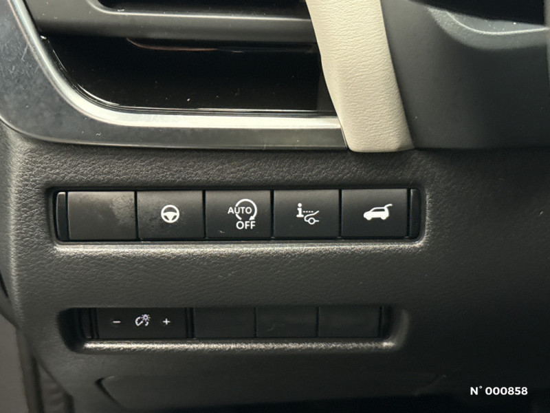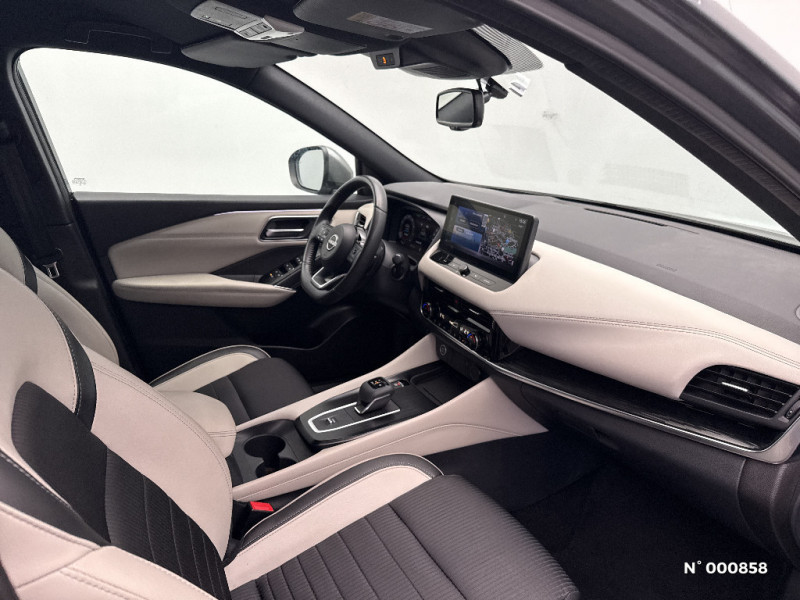 Vitres électriques avec mode impulsionnel AV et AR et commande à distance / Volant et pommeau de levier de vitesses gainé cuir / Accoudoir central AR avec porte-gobelets (2) / Alarme périmétrique / Antenne aileron de requin / Buses de ventilation AR / Cache-bagages amovible / Chargeur à induction pour Smartphone 15W / Ciel de toit Noir / Clignotants AV et AR LED / Combiné d'instrumentation digital avec écran 12,3'' TFT / Commandes au volant: contrôle de l'ordinateur de bord, audio, téléphone, régulateur et limiteur de vitesse / Compartiment pour lunettes de soleil / Crochets d'arrimage (6) dans le coffre / Deuxième port USB AV (USB-A et USB-C) / ABS et EBD / Double port USB AR (USB-A et USB-C) / Eclairage d'ambiance (contre-portes et console centrale) / Eclairage du coffre (x2) / Feu stop central LED / Feux de détresse à déclenchement automatique / Feux de route intelligents avec 12 fasceaux indépendants / Feux diurnes LED avec système Follow Me Home / Frein à main électrique avec aide au stationnement/démarrage et fonction Autohold / Freinage d'urgence anticollision AR / Freinage d'urgence intelligent avec détection piétons, cyclistes et intersections / Habillage console centrale et contre-portes en TEP / Hayon électrique avec ouverture mains libres / Insert de pare-chocs AR couleur Argent / Insert de pare-chocs AR Gris satiné / Kit de réparation pneumatique / Liseuses AV et AR / NBAS (amplificateur de freinage d'urgence) / Nissan Connect Services / Ouverture des portières AR à 85° / Pack Navigation / Pack ProPilot / Pare-soleil côté conducteur et passager avec miroir de courtoisie éclairé / Peinture opaque monoton / Plancher de coffre modulable / Poignées de maintien AV et AR / Poignées de maintien pour passager AV et AR / Points d'ancrage pour sièges enfants ISOFIX à l'AR (x2) / Pommeau de levier de vitesse gainé de cuir / Port USB AV (USB-A) / Porte-gobelets AV (x2) / Prise 12V dans le coffre / ProPILOT avec Navi-link : technologie de conduite assistée / Repose-genoux en TEP (Tissu Enduit) / Rétroviseur intérieur électrochromatique / Sélection du mode de conduite (ECO, STANDARD et SPORT) / Sellerie mixte TEP/Tissu Noir Bleuté ou Gris Clair / Siège conducteur avec réglage lombaire électrique 8 voies / Siège passager avec réglage lombaire manuel 2 voies / Système "Chassis Control" (contrôle actif de trajectoire et de l'assiette) / Système d'alerte anticollision AR intelligent avec détection des objets en mouvement / Système d'alerte prédictif anticollision frontale / Système d'ouverture et de démarrage sans clé "Intelligent key" / Trappe de carburant sans bouchon