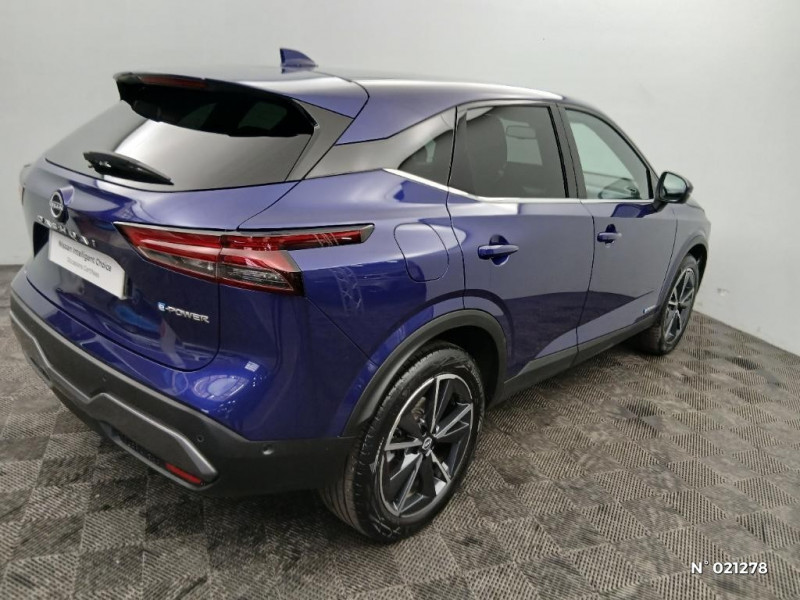 Antenne aileron de requin / Freinage d'urgence intelligent avec détection piétons, cyclistes et intersections / Badges e-POWER / Buses de ventilation AR / Cache-bagages amovible / Chargeur à induction pour Smartphone 15W / Ciel de toit Noir / Clignotants AV et AR LED / Combiné d'instrumentation digital avec écran 12,3'' TFT / Commandes au volant: contrôle de l'ordinateur de bord, audio, téléphone, régulateur et limiteur de vitesse / ABS et EBD / Compartiment pour lunettes de soleil / Crochets d'arrimage (6) dans le coffre / Deuxième port USB AV (USB-A et USB-C) / Habillage console centrale et contre-portes en TEP / Points d'ancrage pour sièges enfants ISOFIX à l'AR (x2) / Port USB AV (USB-A) / Porte-gobelets AV (x2) / Prise 12V dans le coffre / ProPILOT Park : technologie de stationnement automatique / Repose-genoux en TEP (Tissu Enduit) / Rétroviseur intérieur électrochromatique / Sélection du mode de conduite (ECO, STANDARD et SPORT) / Sellerie mixte TEP/Tissu Noir Bleuté ou Gris Clair / Siège conducteur avec réglage lombaire électrique 8 voies / Siège passager avec réglage lombaire manuel 2 voies / Système "Chassis Control" (contrôle actif de trajectoire et de l'assiette) / Système d'alerte anticollision AR intelligent avec détection des objets en mouvement / Système d'alerte prédictif anticollision frontale / Système d'ouverture et de démarrage sans clé "Intelligent key" / Technologie e-Pedal Step / Trappe de carburant sans bouchon / Vitres électriques avec mode impulsionnel AV et AR et commande à distance / Volant et pommeau de levier de vitesses gainé cuir / Hayon électrique avec ouverture mains libres / Insert de pare-chocs AR Gris satiné / Kit de réparation pneumatique / Liseuses AV et AR / NBAS (amplificateur de freinage d'urgence) / Nissan Connect Services / Ouverture des portières AR à 85° / Pack Navigation / Pack ProPilot / Pare-soleil côté conducteur et passager avec miroir de courtoisie éclairé / Peinture opaque monoton / Plancher de coffre modulable / Poignées de maintien AV et AR / Poignées de maintien pour passager AV et AR / Double port USB AR (USB-A et USB-C) / Eclairage d'ambiance (contre-portes et console centrale) / Eclairage du coffre (x2) / Feu stop central LED / Feux de détresse à déclenchement automatique / Feux de route intelligents avec 12 fasceaux indépendants / Feux diurnes LED avec système Follow Me Home / Frein à main électrique avec aide au stationnement/démarrage et fonction Autohold / Freinage d'urgence anticollision AR / Accoudoir central AR avec porte-gobelets (2) / Alarme périmétrique