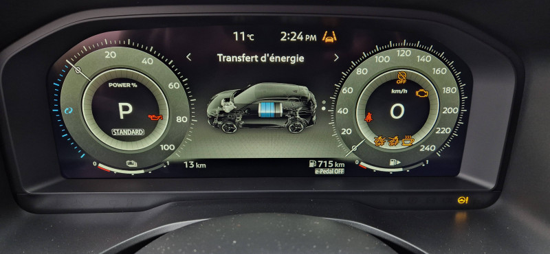 6 crochets de fixation dans le coffre (4 au plancher, 2 sur les côtés) / ABS (système antiblocage des freins) / Accoudoir central AR avec porte-gobelets (2) / Alarme périmétrique / Alerte et prévention de sortie de voie / Antenne aileron de requin Noir / Badges e-POWER / Boîte de vitesses automatique 1 rapports / Bouton d'accès rapide aux réglages des aides à la conduite / Buses de ventilation AR / Cache-bagages amovible / Chargeur à induction pour Smartphone 15W / Ciel de toit Noir / Clignotants AV et AR à défilement / Clignotants AV et AR LED / Combiné d'instrumentation digital 12,3'' / Commandes au volant: contrôle de l'ordinateur de bord, audio, téléphone, régulateur et limiteur de vitesse / Compartiment pour lunettes de soleil / Contre-portes et console centrale en TEP / Contrôle de la traction (TCS) / Double port USB AR (USB-A et USB-C) / Double port USB AV et AR (USB-C) / Eclairage d'ambiance personnalisable / Eclairage du coffre (x2) / Feu stop central LED / Feux AR "Super-RED" / Feux de détresse à déclenchement automatique / Feux de route adaptatifs / Feux de route intelligents matrix LED avec 12 fasceaux indépendants / Freinage d'urgence anticollision AR / Freinage d'urgence intelligent avec détection piétons, cyclistes et intersections / Frein à main électrique avec aide au stationnement/démarrage et fonction Autohold / Garantie anticorrosion - perforation 12 ans, kilométrage illimité / Garantie Nissan Privilège Jusqu'à 8 ans de Garantie (moteur, boîte, pont) + Jusqu'à 8 ans d'Assistance 24h/24, 7j/7. Jusqu'à 8 ans ou 160 000 km, conditionnéà entretien annuel dans le réseau Nissan / Garantie peinture 3 ans, kilométrage illimité / Garantie sur tous les composants spécifiques Hybrid, e-POWER 5 ans (limitée à 100 000 km) Liste non exhaustive des composants inclus : batterie lithium-ion, moteur électrique, onduleur, générateur, système de refroidissement de la batterie, etc... / Garantie véhicule neuf 3 ans (limitée à 100 000 km) / Inserts de pare-chocs AV et AR Gris satiné / Jantes alliage 19" Aéro 235/50 R19 / Kit de réparation pneumatique / Liseuses LED à l'AV et à l'AR / Mémorisation des réglages via l'Intelligent Key (siège conducteur et rétroviseurs extérieurs) / NBAS (amplificateur de freinage d'urgence) / Nissan AVM 3D - Vision Intelligente à 360° : système d'aide au stationnement qui facilite les manoeuvres de stationnement en vous offrant une vision à 360° : Caméra AR avec repères de gabarit, Caméra AV, Caméras latérales situées dans les rétroviseurs extérieurs, Radars 360°, Fonction ''capot transparent'', Mémorisation stationnement régulier et intersections / NissanConnect Services - Services télématiques avec accès à distance depuis un smartphone - Géolocalisation du véhicule - Historique de navigation - Point d'accès WiFi / NissanConnect Services - Services télématiques avec accès à distance depuis un smartphone Services de commandes à distance - Historique de conduite - Mise à jour à distance - Rapports sur l'état de santé du véhicule et alertes de dysfonctionnement - Rappels des pas d'entretien - Aide et assistance Nissan - Alertes intelligentes / Ouverture des portières AR à 85° / Pack Confort Plus - Siège conducteur électrique et à mémoire - Rétroviseurs extérieurs à mémoire - Affichage tête haute 10,8" - Coffre électrique / Pare-chocs AV et AR Noir mat / Pare-soleil côté conducteur et passager avec miroir de courtoisie éclairé / Planche de bord en TEP / Plancher de coffre modulable / Poignées de maintien pour passager AV et AR / Points d'ancrage pour sièges enfants ISOFIX à l'AR (x2) / Porte-gobelets (x2) / Prise 12V à l'AV (x1) et dans le coffre (x1) / ProPILOT avec Navi-link : technologie de conduite assistée Aide au maintien dans la voie, Freinage anticipé dans les courbes via la navigation, Assistant de conduite en embouteillage, Ajustement aux limitations de vitesse (automatique ou sur commande) / ProPILOT Park : technologie de stationnement automatique / Rails de toit longitudinaux chromés / Régulateur de vitesse intelligent avec ajustement aux limitations de vitesse sur commande / Repose-genoux en TEP / Rétroviseur intérieur électrochromatique sans contour / Sélection du mode de conduite (ECO, STANDARD et SPORT) / Siège conducteur avec réglage lombaire électrique 2 voies / Siège conducteur avec réglages électriques 8 voies / Signature lumineuse AV à 2 étages / Système audio radio avec écran tactile 12,3" et 6 HP / Système "Chassis Control" (contrôle actif de trajectoire et de l'assiette) / Système d'alerte anticollision AR intelligent / Système d'alerte prédictif anticollision frontale / Système de navigation NissanConnect avec services Google intégrés Google Maps, Google Assistant, Google Play Store, Live Traffic et cartes 3D, Navigation porte-à-porte, Recherche par Points d'Intérêt, Google Street View, Vue Satellite et Météo, Mise à jour des cartes et logiciels, Prix des carburants / Système d'ouverture et de démarrage sans clé "Intelligent key" avec fonction de verrouillage/ déverrouillage à l'approche du véhicule / Technologie e-Pedal Step / Trappe de carburant sans bouchon