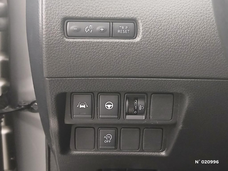 Vitres latérales AR et vitre de hayon surteintées / Volant et levier de vitesse gainés cuir / 6 HP / Nissan Connect : Système de navigation multimédia avec écran tactile couleur 7" / Ordinateur de bord avec écran TFT couleur HD 5" / Pack Navi / Pack Securité / Pare-soleil côtés conducteur et passager avec miroir de courtoisie éclairé / Peinture opaque / Plancher de coffre modulable - 16 combinaisons / Poignée interieure d'ouverture porte chromée / Poignées de porte couleur carrosserie / Points d'ancrage de siège enfants ISOFIX à l'AR / Porte-gobelets AR / Porte-gobelets AV / Prise auxiliaire jack 3.5" dans accoudoir central AV / Radio digitale-Réception (DAB) / Rétroviseurs extérieurs avec indicateurs de changement de direction à LED / Rétroviseurs extérieurs couleur carrosserie / Sièges AV avec réglage lombaire / Sièges AV "monoform style" / Sièges AV sport "monoform style" / Système audio radio avec ecran tactile 7" avec interface personnalisable, Apple CarPlay, Android Auto, commandes vocales / Système audio Radio, CD/MP3, connexion USB / Système "Châssis Control" / Système d'aide au stationnement : Caméra AR avec repères de gabarit, Caméra AV, Caméras latérales si situées dans les rétroviseurs extérieurs / Allumage intelligent des phares / Antenne aileron de requin / Ciel de toit gris clair / Commandes au volant (audio, Bluetooth, régulateur et limiteur de vitesse, contrôle de l'ordinateur de bord) / Contour des vitres latérales chromé / ABS Système antiblocage des freins / Direction assistée électrique ajustable (mode Sport ou Normal) / Eclairage d'ambiance intérieur / Fermeture et ouverture centralisées des portes et vitres à distance / Feux AR avec signature LED et effet 3D / Fonction Autohold (aide au stationnement/démarrage) / Frein à main électrique / Inserts couleur argent pare-chocs AR / Inserts couleur argent pare-chocs AV / Inserts de porte et planche de bord en argent mat 3D / Kit de réparation pneumatique