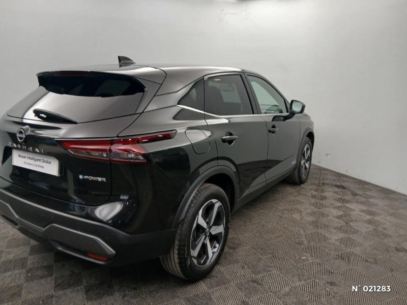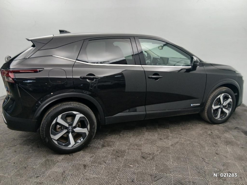 Liseuses AV et AR / NBAS (amplificateur de freinage d'urgence) / Nissan Connect Services / Ouverture des portières AR à 85° / Pack Navigation / Prise 12V dans le coffre / Repose-genoux en TEP (Tissu Enduit) / Rétroviseur intérieur électrochromatique / Sélection du mode de conduite (ECO, STANDARD et SPORT) / Sellerie Tissu Noir et Gris / Combiné d'instrumentation digital avec écran 12,3'' TFT / Commandes au volant: contrôle de l'ordinateur de bord, audio, téléphone, régulateur et limiteur de vitesse / Compartiment pour lunettes de soleil / Crochets d'arrimage (6) dans le coffre / ABS et EBD / Accoudoir central AR avec porte-gobelets (2) / Alarme périmétrique / Antenne aileron de requin / Badges e-POWER / Buses de ventilation AR / Cache-bagages amovible / Volant et pommeau de levier de vitesses gainé cuir / Système "Chassis Control" (contrôle actif de trajectoire et de l'assiette) / Système d'alerte anticollision AR intelligent avec détection des objets en mouvement / Système d'alerte prédictif anticollision frontale / Système d'ouverture et de démarrage sans clé "Intelligent key" / Technologie e-Pedal Step / Trappe de carburant sans bouchon / Siège conducteur avec réglage lombaire électrique 2 voies / Siège conducteur avec réglage lombaire 2 voies / Vitres électriques avec mode impulsionnel AV et AR et commande à distance / Deuxième port USB AV (USB-A et USB-C) / Double port USB AR (USB-A et USB-C) / Eclairage d'ambiance (console centrale) / Eclairage d'ambiance linéaire / Eclairage du coffre (x2) / Feu stop central LED / Feux de détresse à déclenchement automatique / Feux de route adaptatifs / Feux diurnes LED avec système Follow Me Home / Frein à main électrique avec aide au stationnement/démarrage et fonction Autohold / Chargeur à induction pour Smartphone 15W / Freinage d'urgence anticollision AR / Freinage d'urgence intelligent avec détection piétons, cyclistes et intersections / Habillage console centrale et contre-portes en TEP / Insert de pare-chocs AR Gris satiné / Kit de réparation pneumatique / Pare-soleil côté conducteur et passager avec miroir de courtoisie éclairé / Peinture opaque monoton / Plancher de coffre modulable / Poignées de maintien AV et AR / Poignées de maintien pour passager AV et AR / Points d'ancrage pour sièges enfants ISOFIX à l'AR (x2) / Port USB AV (USB-A) / Porte-gobelets AV (x2)