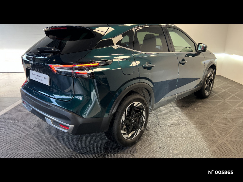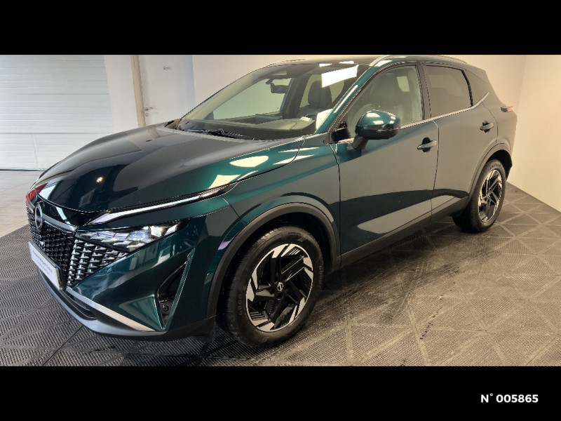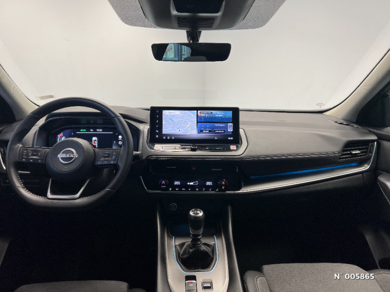 Prise 12V dans le coffre / Repose-genoux en TEP (Tissu Enduit) / Rétroviseur intérieur électrochromatique / Insert de pare-chocs AR Gris satiné / Kit de réparation pneumatique / Liseuses AV et AR / NBAS (amplificateur de freinage d'urgence) / Nissan Connect Services / Ouverture des portières AR à 85° / Pack Navigation / Pare-soleil côté conducteur et passager avec miroir de courtoisie éclairé / Peinture opaque monoton / Plancher de coffre modulable / Poignées de maintien AV et AR / Poignées de maintien pour passager AV et AR / Points d'ancrage pour sièges enfants ISOFIX à l'AR (x2) / Pommeau de levier de vitesse gainé de cuir / Port USB AV (USB-A) / Porte-gobelets AV (x2) / ABS et EBD / Accoudoir central AR avec porte-gobelets (2) / Alarme périmétrique / Antenne aileron de requin / Buses de ventilation AR / Cache-bagages amovible / Chargeur à induction pour Smartphone 15W / Combiné d'instrumentation digital avec écran 12,3'' TFT / Commandes au volant: contrôle de l'ordinateur de bord, audio, téléphone, régulateur et limiteur de vitesse / Compartiment pour lunettes de soleil / Crochets d'arrimage (6) dans le coffre / Système d'ouverture et de démarrage sans clé "Intelligent key" / Trappe de carburant sans bouchon / Vitres électriques avec mode impulsionnel AV et AR et commande à distance / Volant et pommeau de levier de vitesses gainé cuir / Deuxième port USB AV (USB-A et USB-C) / Double port USB AR (USB-A et USB-C) / Eclairage d'ambiance (console centrale) / Eclairage d'ambiance linéaire / Eclairage du coffre (x2) / Feu stop central LED / Feux de détresse à déclenchement automatique / Feux de route adaptatifs / Feux diurnes LED avec système Follow Me Home / Frein à main électrique avec aide au stationnement/démarrage et fonction Autohold / Freinage d'urgence anticollision AR / Freinage d'urgence intelligent avec détection piétons, cyclistes et intersections / Habillage console centrale et contre-portes en TEP / Insert de pare-chocs AR couleur Argent / Sélection du mode de conduite (ECO, STANDARD et SPORT) / Sellerie Tissu Noir et Gris / Siège conducteur avec réglage lombaire électrique 2 voies / Siège conducteur avec réglage lombaire 2 voies / Système "Chassis Control" (contrôle actif de trajectoire et de l'assiette) / Système d'alerte anticollision AR intelligent avec détection des objets en mouvement / Système d'alerte prédictif anticollision frontale