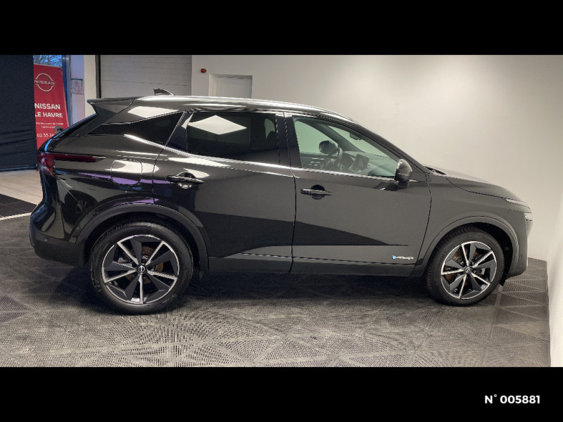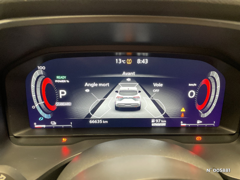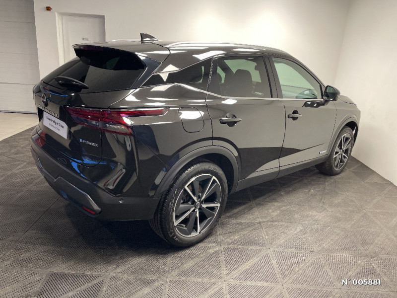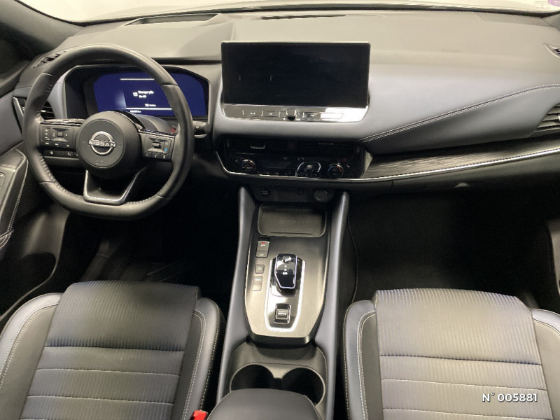 Pare-soleil côté conducteur et passager avec miroir de courtoisie éclairé / Peinture opaque monoton / Plancher de coffre modulable / Poignées de maintien AV et AR / Poignées de maintien pour passager AV et AR / Points d'ancrage pour sièges enfants ISOFIX à l'AR (x2) / Port USB AV (USB-A) / Porte-gobelets AV (x2) / Prise 12V dans le coffre / ProPILOT Park : technologie de stationnement automatique / Repose-genoux en TEP (Tissu Enduit) / Rétroviseur intérieur électrochromatique / Sélection du mode de conduite (ECO, STANDARD et SPORT) / Sellerie mixte TEP/Tissu Noir Bleuté ou Gris Clair / Siège conducteur avec réglage lombaire électrique 8 voies / Siège passager avec réglage lombaire manuel 2 voies / Commandes au volant: contrôle de l'ordinateur de bord, audio, téléphone, régulateur et limiteur de vitesse / Compartiment pour lunettes de soleil / Crochets d'arrimage (6) dans le coffre / Deuxième port USB AV (USB-A et USB-C) / Double port USB AR (USB-A et USB-C) / Eclairage d'ambiance (contre-portes et console centrale) / Eclairage du coffre (x2) / Feu stop central LED / Feux de détresse à déclenchement automatique / Combiné d'instrumentation digital avec écran 12,3'' TFT / Feux de route intelligents avec 12 fasceaux indépendants / Feux diurnes LED avec système Follow Me Home / Frein à main électrique avec aide au stationnement/démarrage et fonction Autohold / Freinage d'urgence anticollision AR / Antenne aileron de requin / ABS et EBD / Badges e-POWER / Buses de ventilation AR / Cache-bagages amovible / Chargeur à induction pour Smartphone 15W / Ciel de toit Noir / Clignotants AV et AR LED / Accoudoir central AR avec porte-gobelets (2) / Alarme périmétrique / Vitres électriques avec mode impulsionnel AV et AR et commande à distance / Volant et pommeau de levier de vitesses gainé cuir / Technologie e-Pedal Step / Trappe de carburant sans bouchon / Système "Chassis Control" (contrôle actif de trajectoire et de l'assiette) / Système d'alerte anticollision AR intelligent avec détection des objets en mouvement / Système d'alerte prédictif anticollision frontale / Système d'ouverture et de démarrage sans clé "Intelligent key" / Freinage d'urgence intelligent avec détection piétons, cyclistes et intersections / Habillage console centrale et contre-portes en TEP / Hayon électrique avec ouverture mains libres / Insert de pare-chocs AR Gris satiné / Kit de réparation pneumatique / Liseuses AV et AR / NBAS (amplificateur de freinage d'urgence) / Nissan Connect Services / Ouverture des portières AR à 85° / Pack Navigation / Pack ProPilot